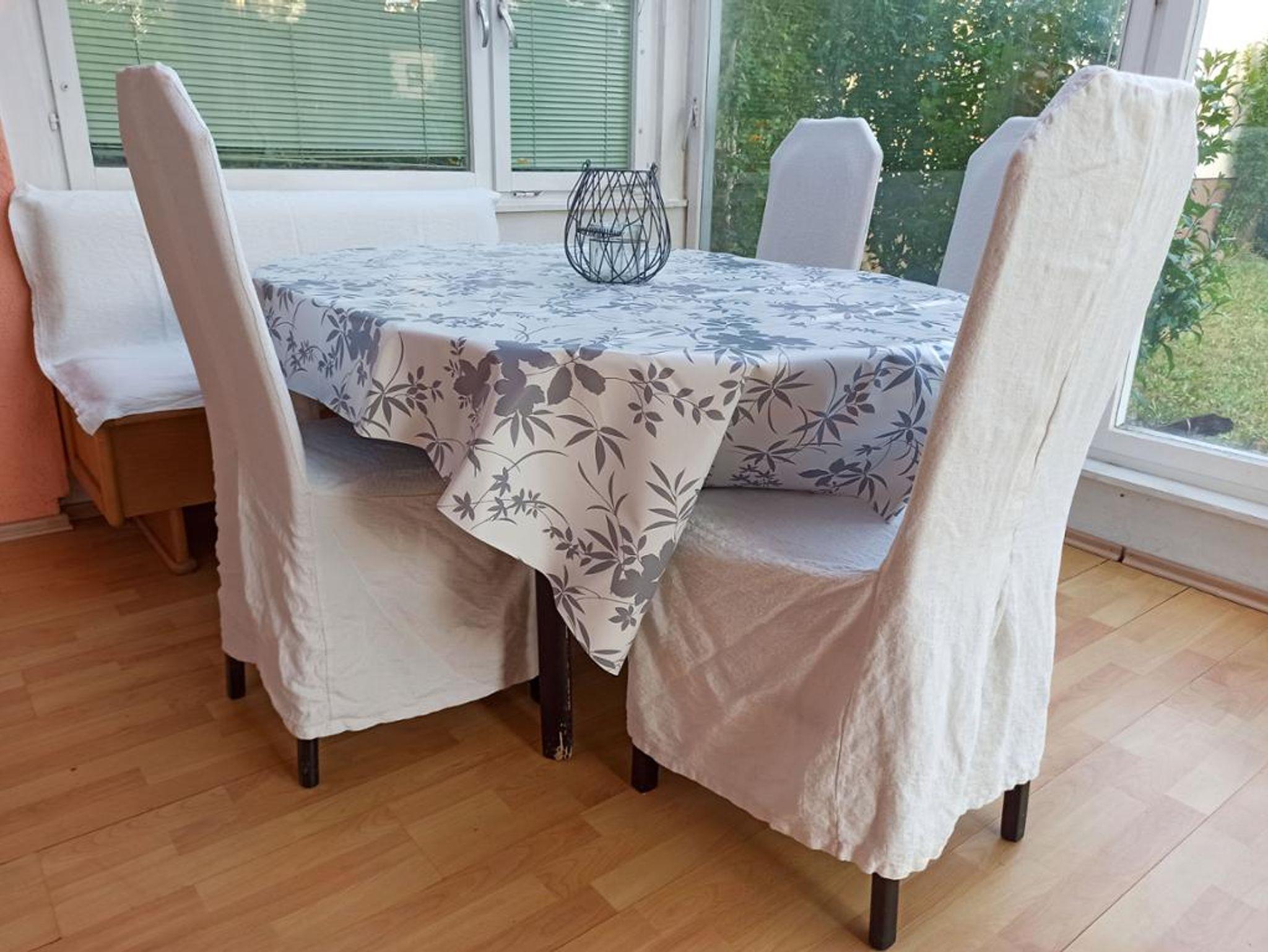 Im Wintergarten findet man einen Essbereich, der Platz für bis zu 6 Personen bietet.
