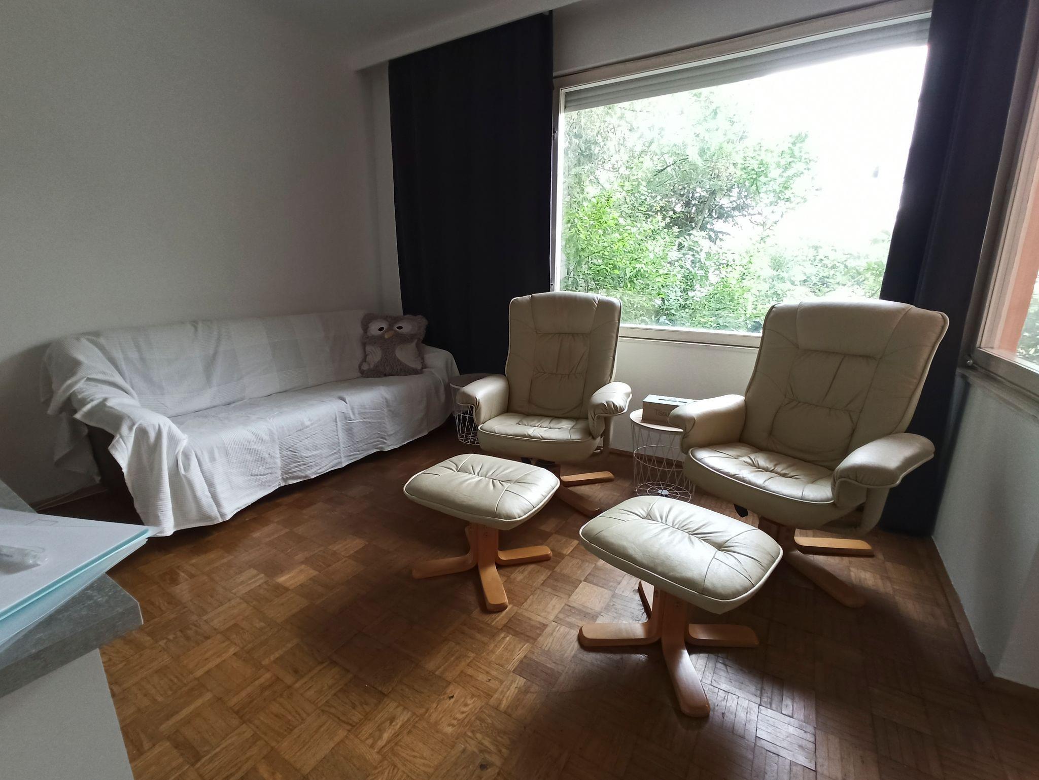 Im Wohnzimmer befindet sich eine ausziehbare Couch und bequeme Sesseln. Der Fernseher verfügt über Satelliten TV.