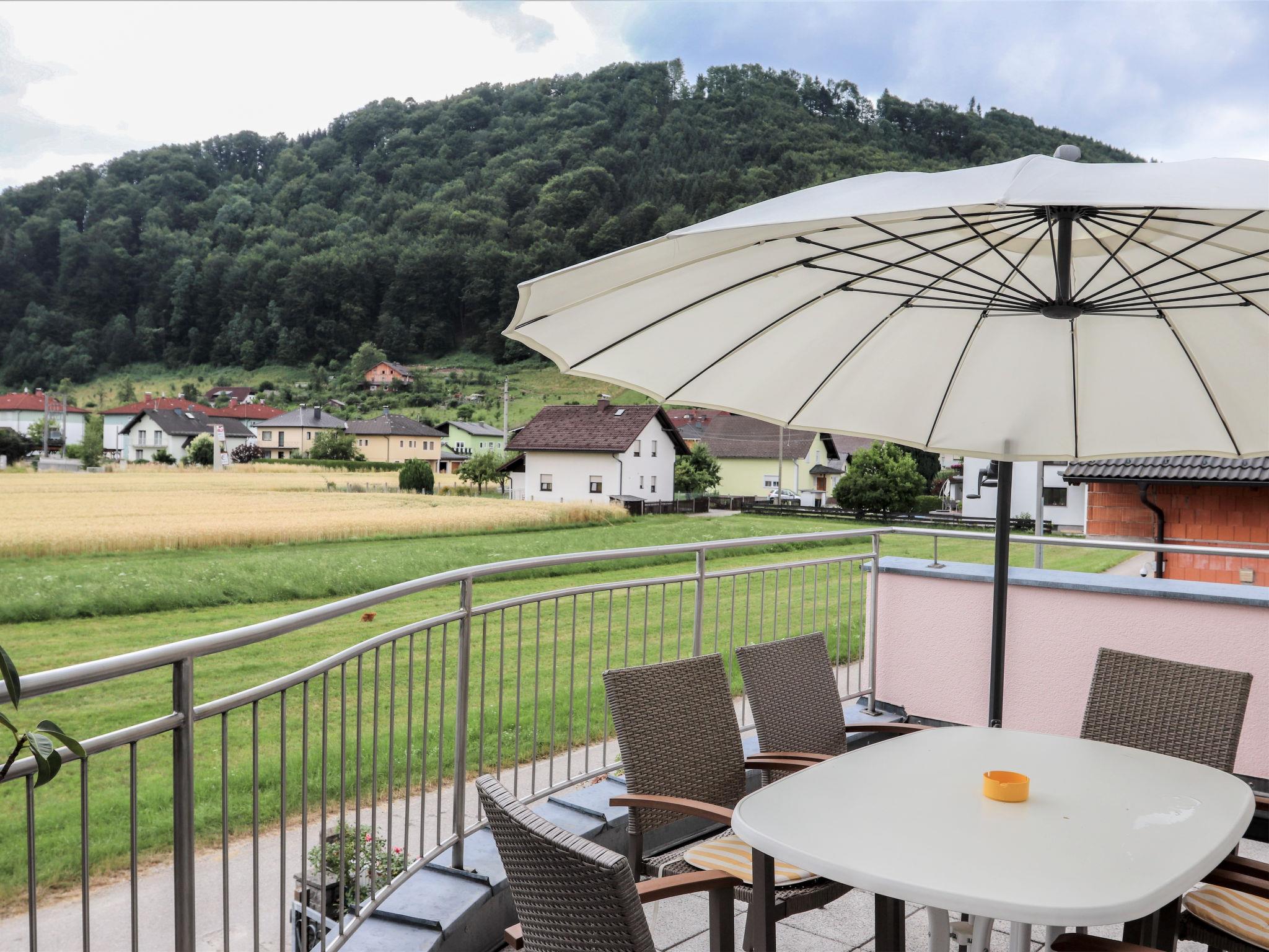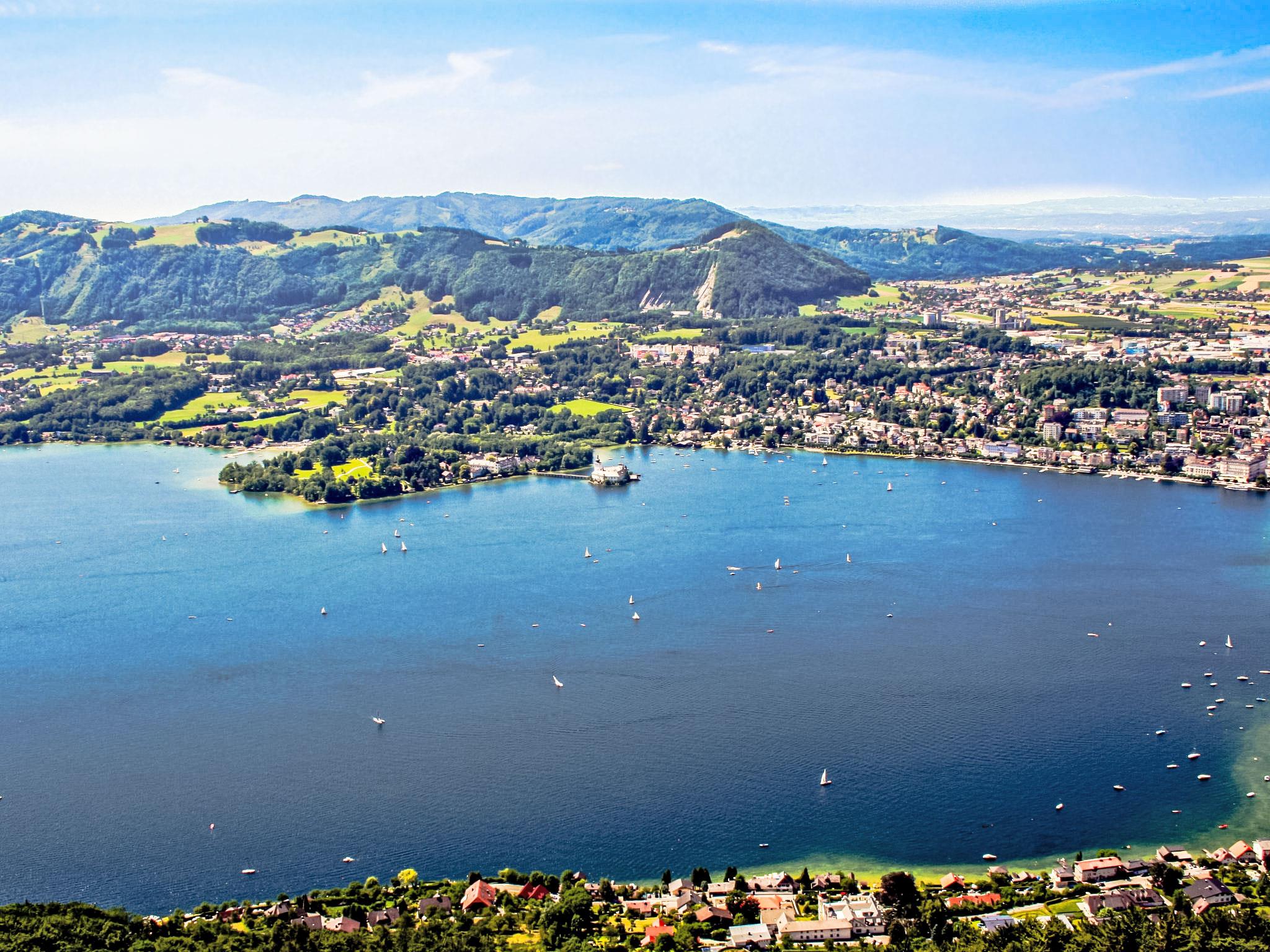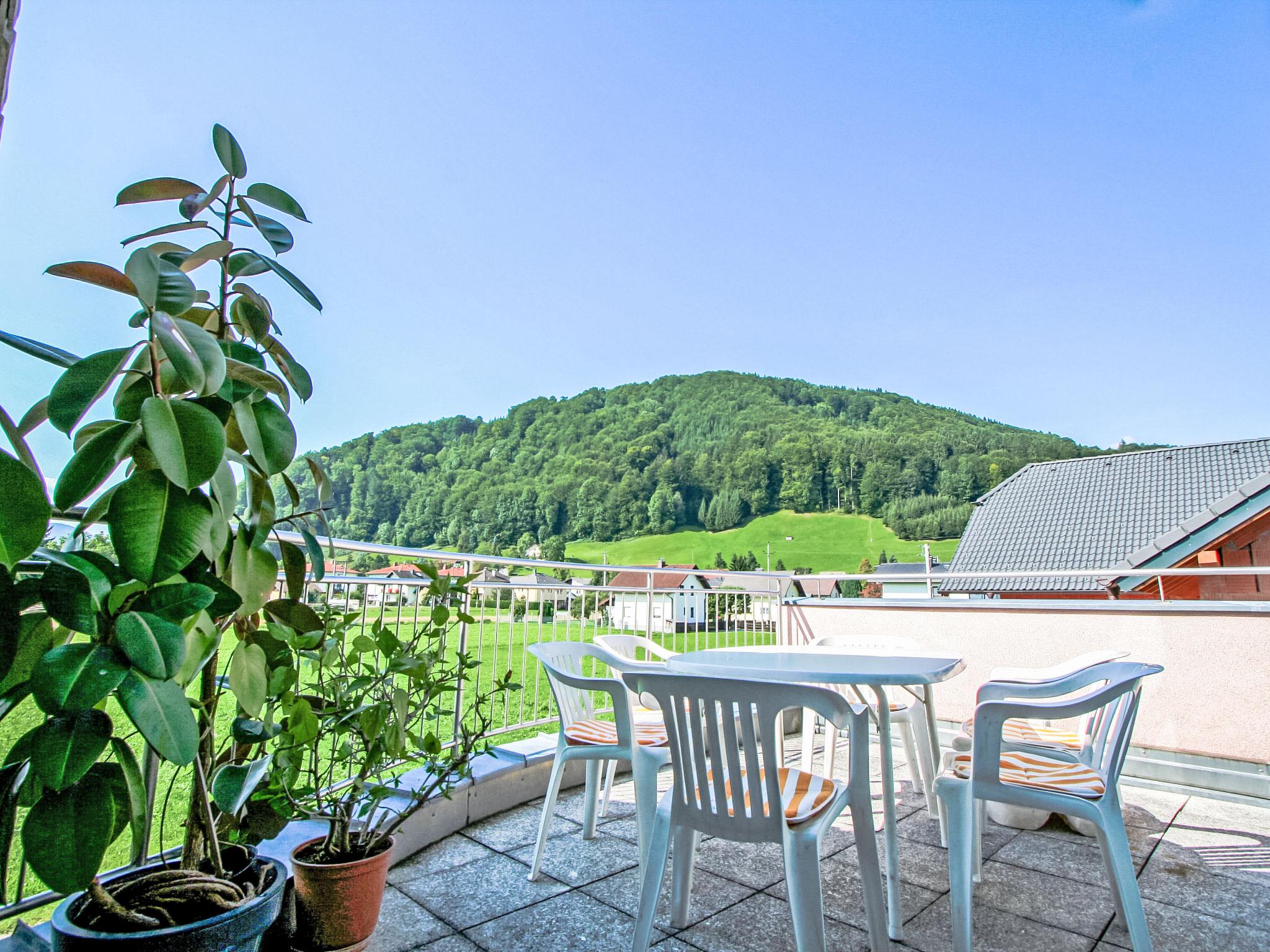 4-room apartment 120 m2 on 1st floor. Comfortable and tasteful furnishings: open large living room with panoramic window with 1 double sofabed and cable TV (flat screen), radio and DVD. Exit to the terrace. 1 double bedroom. 1 room with 2 beds. 1 room with 1 x 2 bunk beds. Open kitchen (4 hot plates, oven, dishwasher) with dining table. Sep. WC, bath/shower/WC, double hand-basin. Large terrace. Terrace furniture, box-room. Beautiful view of the countryside. Facilities: washing machine. Internet (WiFi, free). New from 2018: For bookings of 3 nights or more, you will receive the Salzkammergut Card FREE OF CHARGE! (Changing availability). 40714