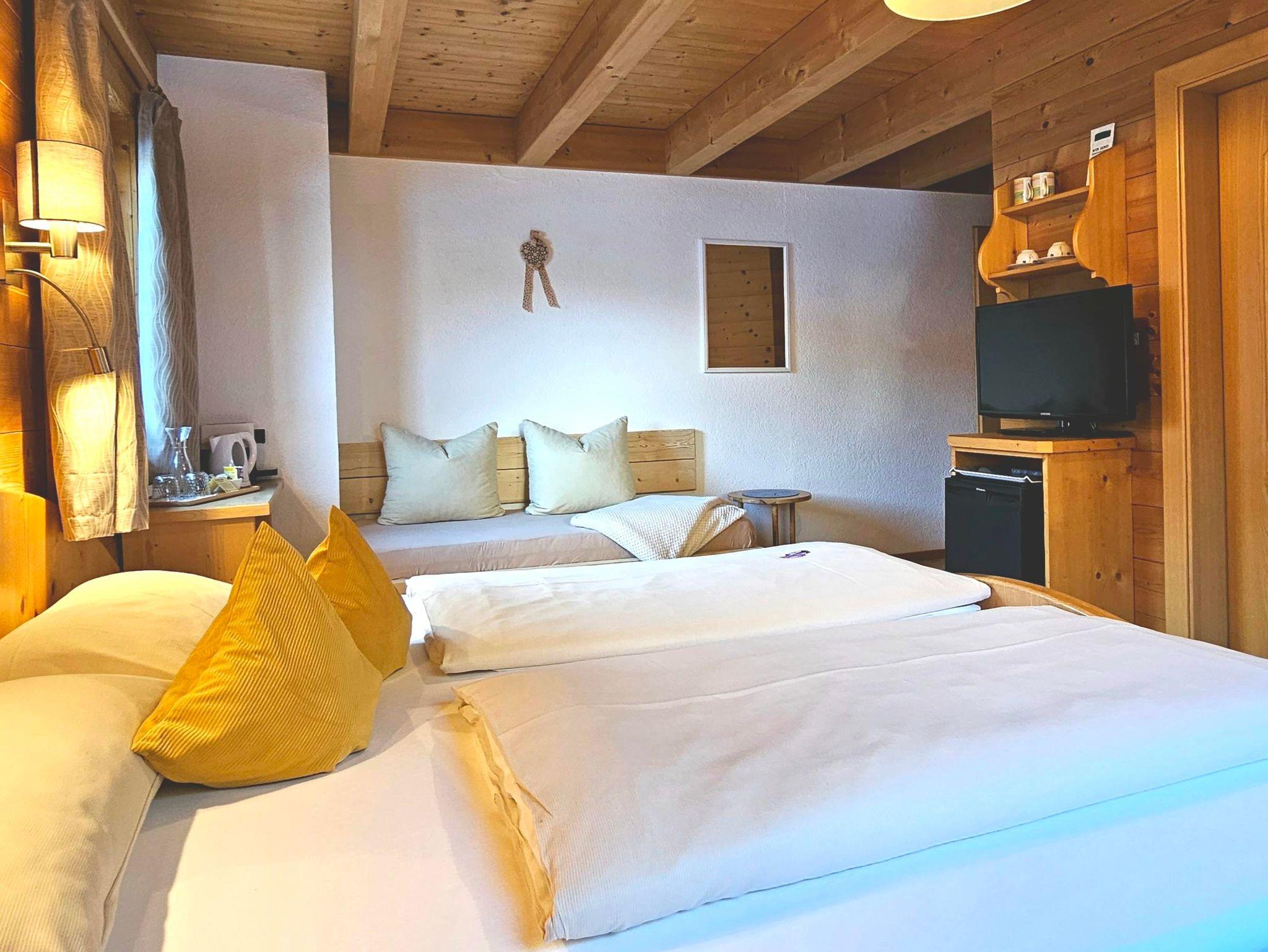 Wer es traditionell ländlich liebt, bucht im Stubenhaus: Authentische Doppelzimmer oder Apartments für 2-5 Personen mit neu renovierten Bädern, sehr bequemen Betten und dem Duft von Fichtenholz.