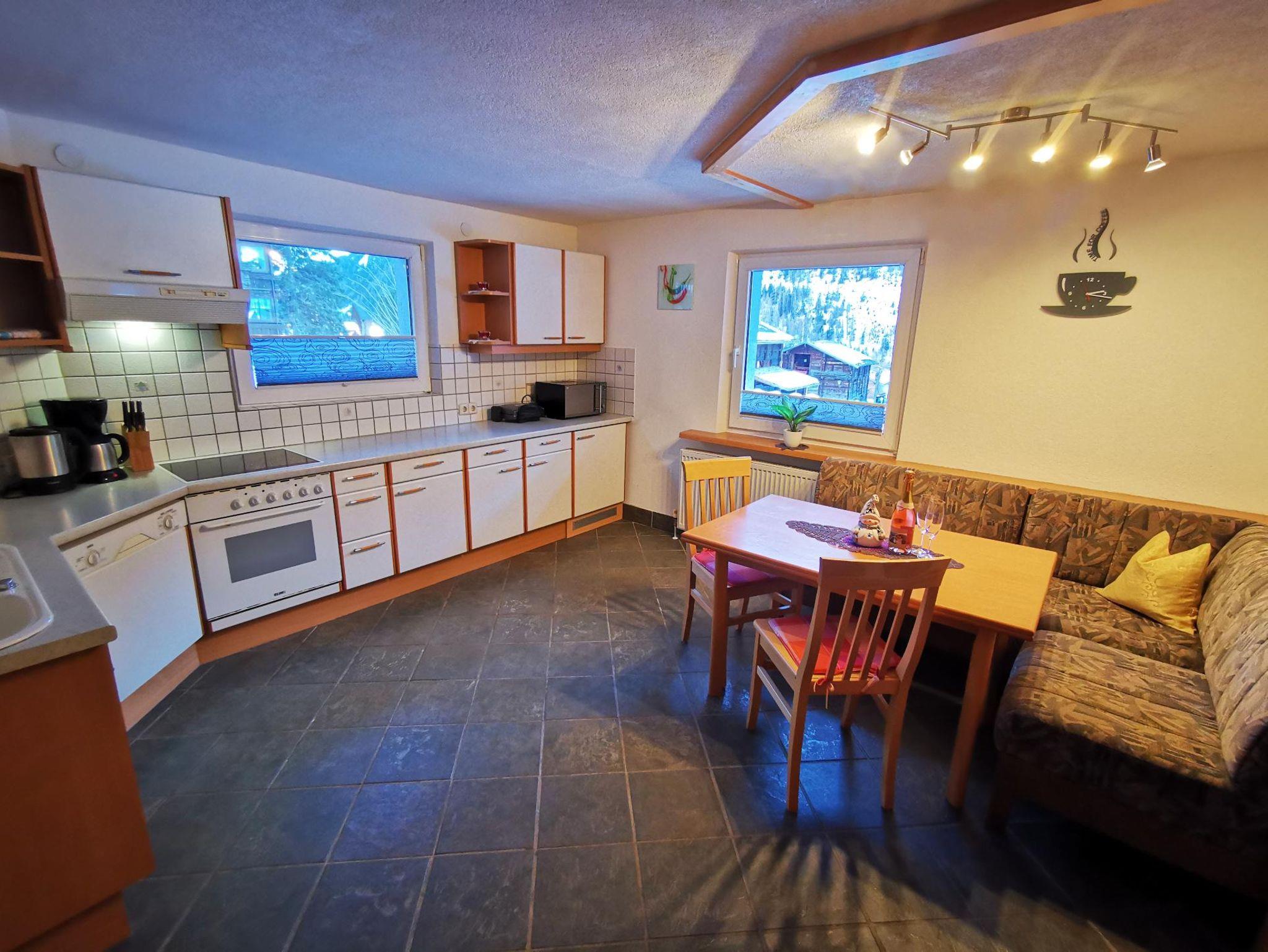 Nach einem aktiven Tag in den Bergen lädt die komfortabel ausgestattete Wohnung mit zwei Schlafzimmern und einer modernen Wohnküche zum Entspannen ein. Mit Geschirrspüler, Mikrowelle, Kühlschrank mit Gefrierfach, Wasserkocher, Kaffeemaschine und 4-Platten-Herd mit Backrohr ist alles vorhanden, was Sie für einen sorglosen Aufenthalt benötigen. Hand- und Badetücher sowie Bettwäsche stehen selbstverständlich bereit.