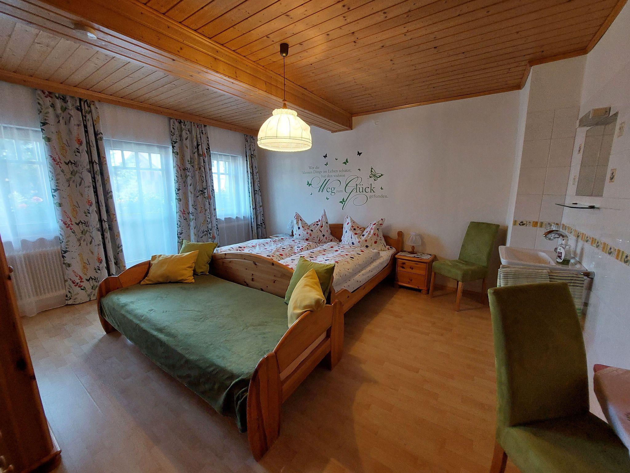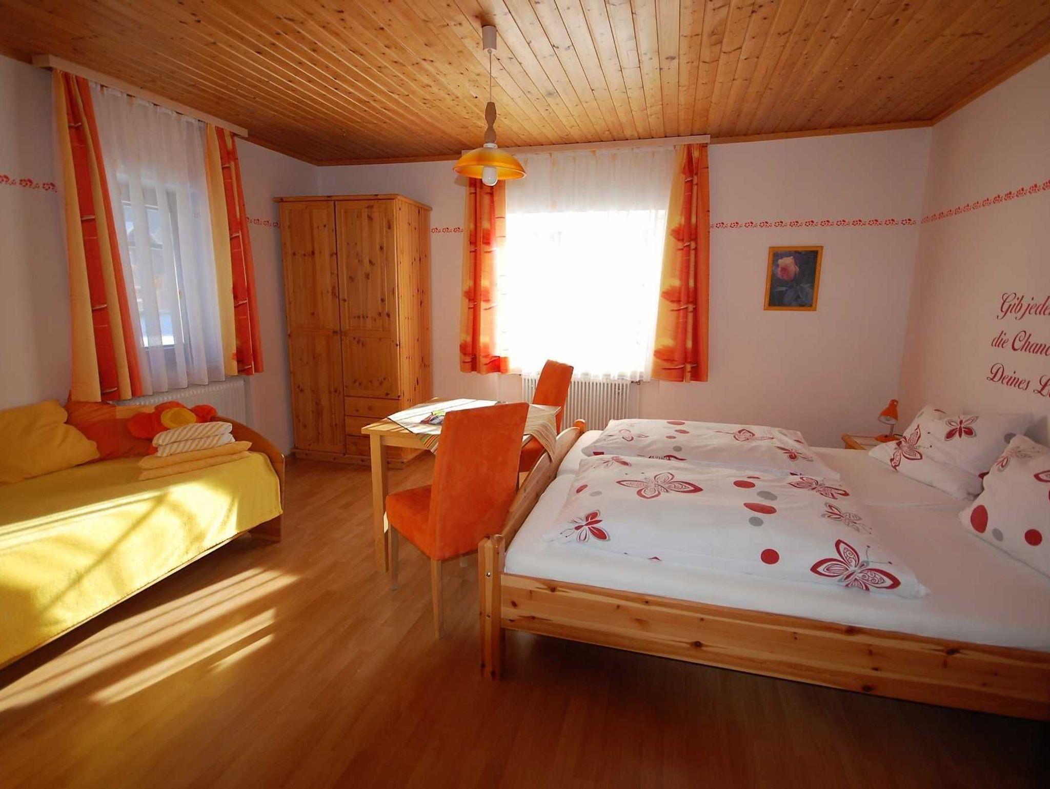 Wenn Sie gerne kochen, wird dies in unseren komplett ausgestatteten Wohnküchen zum Kinderspiel. Von Elektroherd über Mikrowelle bis zur Kaffeemaschine ist alles vorhanden, um ein leckeres Frühstück, Mittag- oder Abendessen zu servieren. Im Parterre befindet sich die erste große Wohnküche, welche ideal für viele Personen ist: zwei große Sitzgruppen (Platz für mehrals 10 Personen)Vorteil der Küche - Ihre Kinder können gleich in den Garten hinaus - gemütlich zusammensitzen, mit Ihrer Familie oder Ihren Freunden - in der großen Wohnküche ist genug Platz. Und träumen werden Sie in 5 glücklichen großen Schlafzimmern, drei davon mit Balkon mit herrlichem Blick in unserem großen Garten.o Glückszimmer im 1. Stock (Doppelbett und Zusatzbett) Glückszimmer im 1. Stock (Doppelbett und Zusatzbett) mit Verbindungstür zum 1. Glückszimmero Löwenzahnzimmer im 2. Stock (Doppelbett, Balkon) Dorfblickzimmer im 2. Stock (Dopppelbett, Zusatzbett, Waschbecken und Balkon) Sonnenblumenzimmer im 2. Stock (Doppelbett, Waschbecken und Balkon)