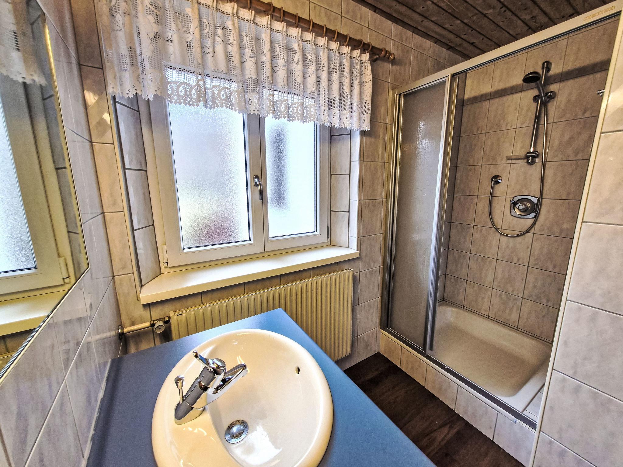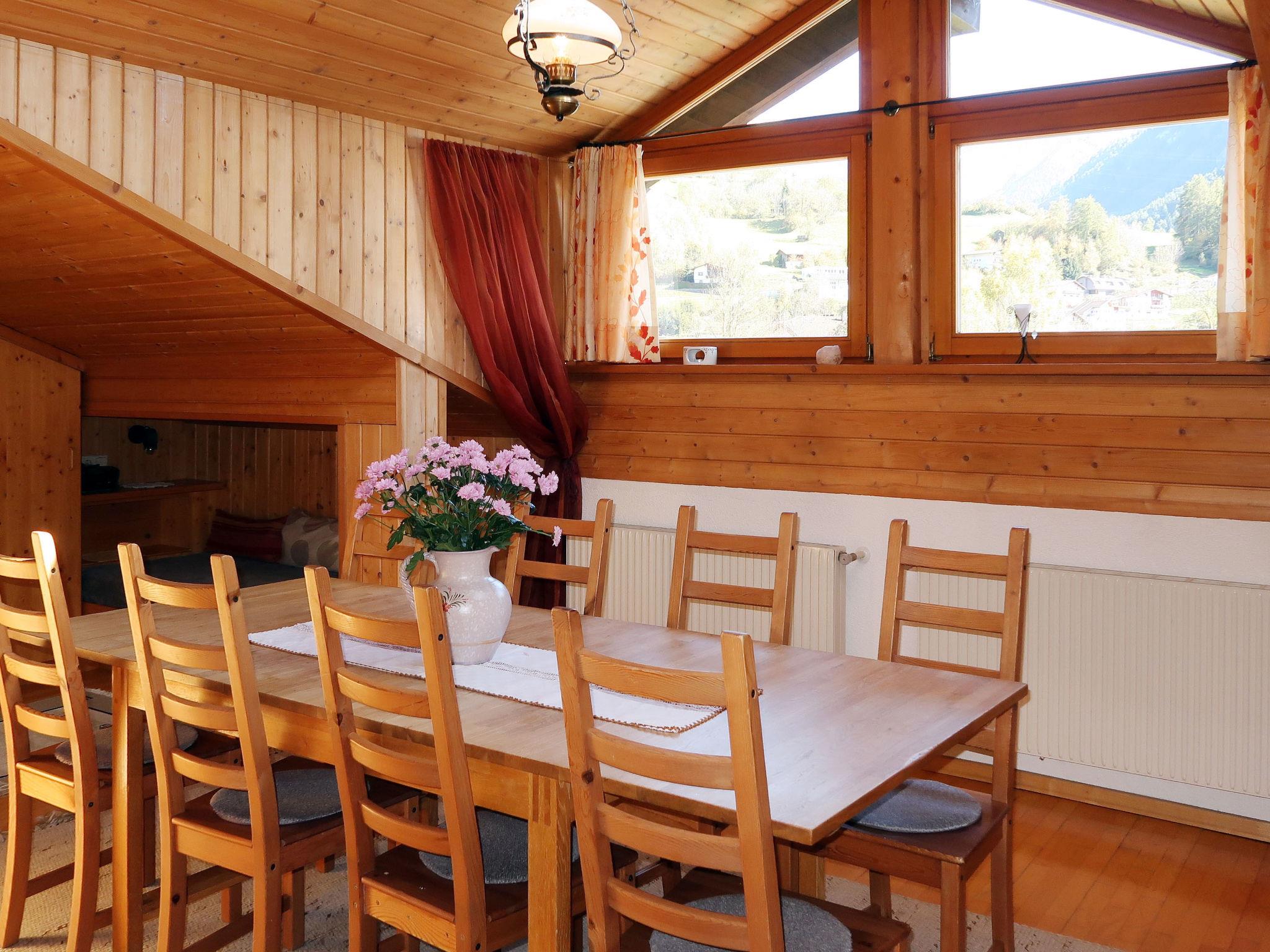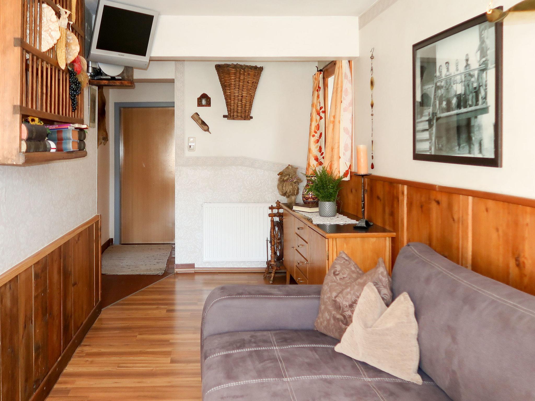 "Leo", 5-room apartment 115 m2 on 2nd floor, south-east facing position. Cosy and wooden furniture furnishings: small living room with satellite TV. 2 double bedrooms, each room with hand-basin. 1 room with 1 bed, 1 double bed and hand-basin. With sloping ceilings kitchen-/living room (4 hot plates, oven, dishwasher, toaster, kettle, microwave, electric coffee machine) with 1 bed, dining table, satellite TV, radio and CD-player. Exit to the balcony. 2 showers/WC, sep. WC, double hand-basin. Heating. Parquet floors. Balcony. Balcony furniture, barbecue. View of the mountains. Facilities: children's high chair, baby cot. Internet (WiFi, free). Please note: private entrance, smoke alarm.