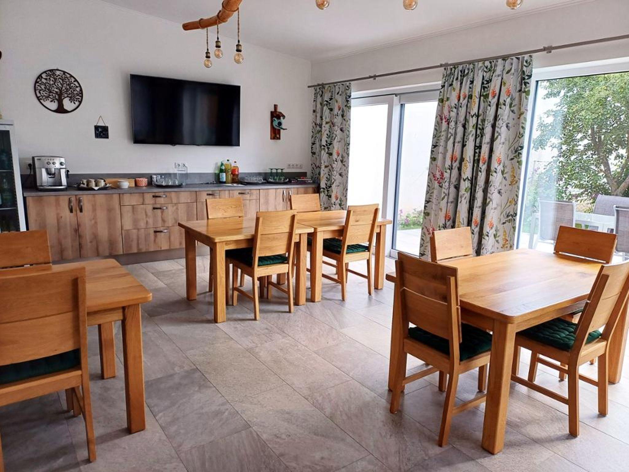 Frühstücksraum (= Aufenthaltsraum) mit Terrasse Garten mit Spielplatz kostenloses WLAN kostenlose überdachte Parkplätze