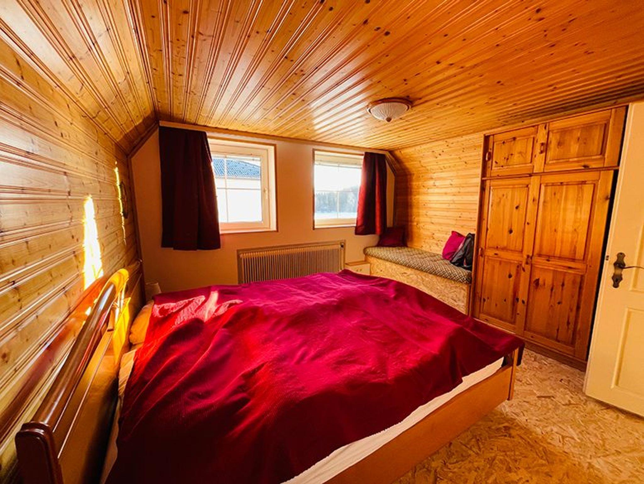 Die 2 Fenster im Schlafzimmer mit Doppelbett lassen sie auf einen Obstgarten und manchmal auch auf eine Schafherde blicken. In der großen voll ausgestatteten Küche befindet sich eine praktische Essecke mit Blick auf den Garten und eine Pferdeweide.