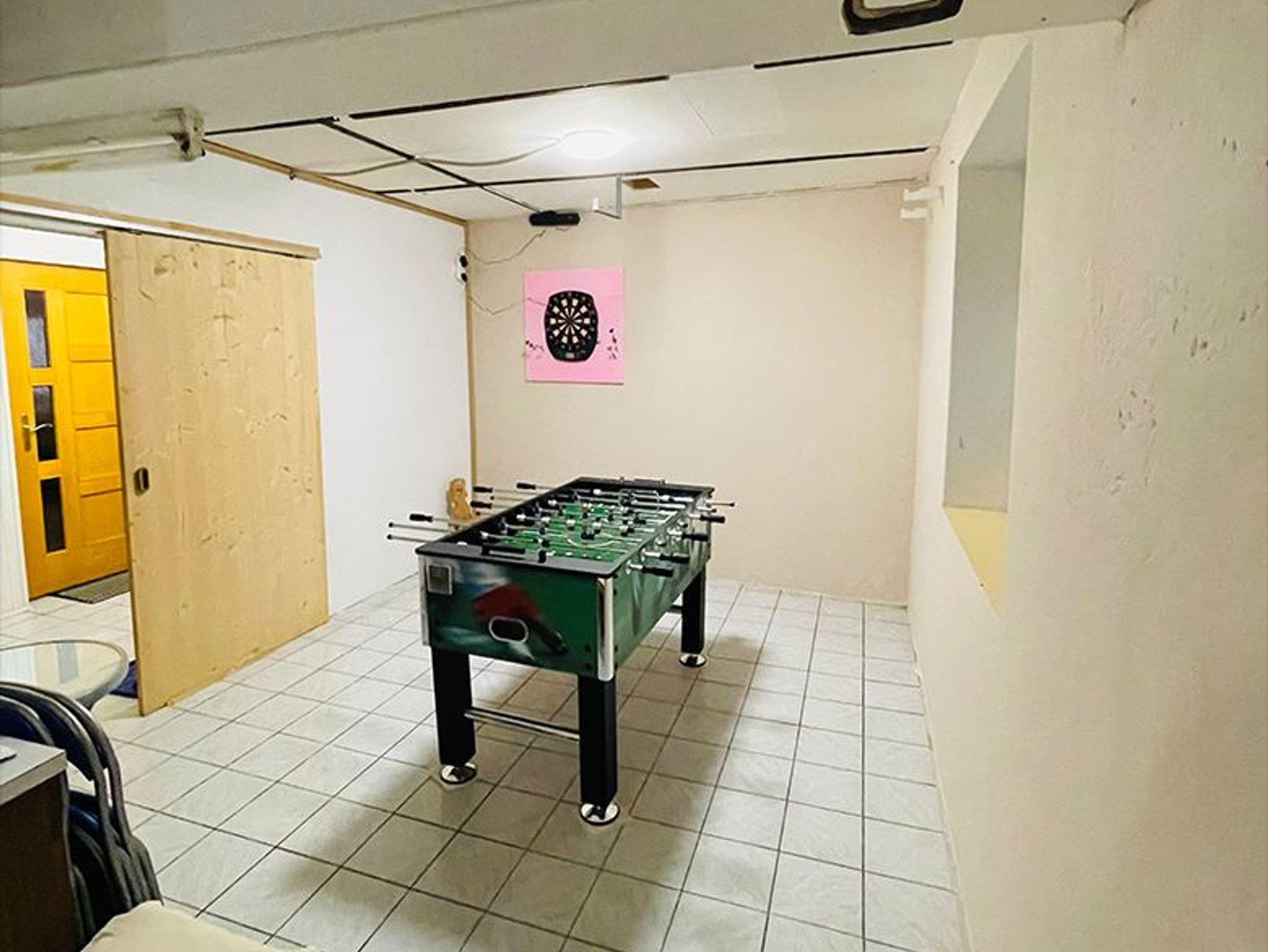Im kühlen Erdgeschoss steht ihnen ein Spielezimmer mit Tischfußball, Dart und Wii zur Verfügung, ebenso können sie dort die zweite große Garderobe und den Schuhtrockner nutzen.