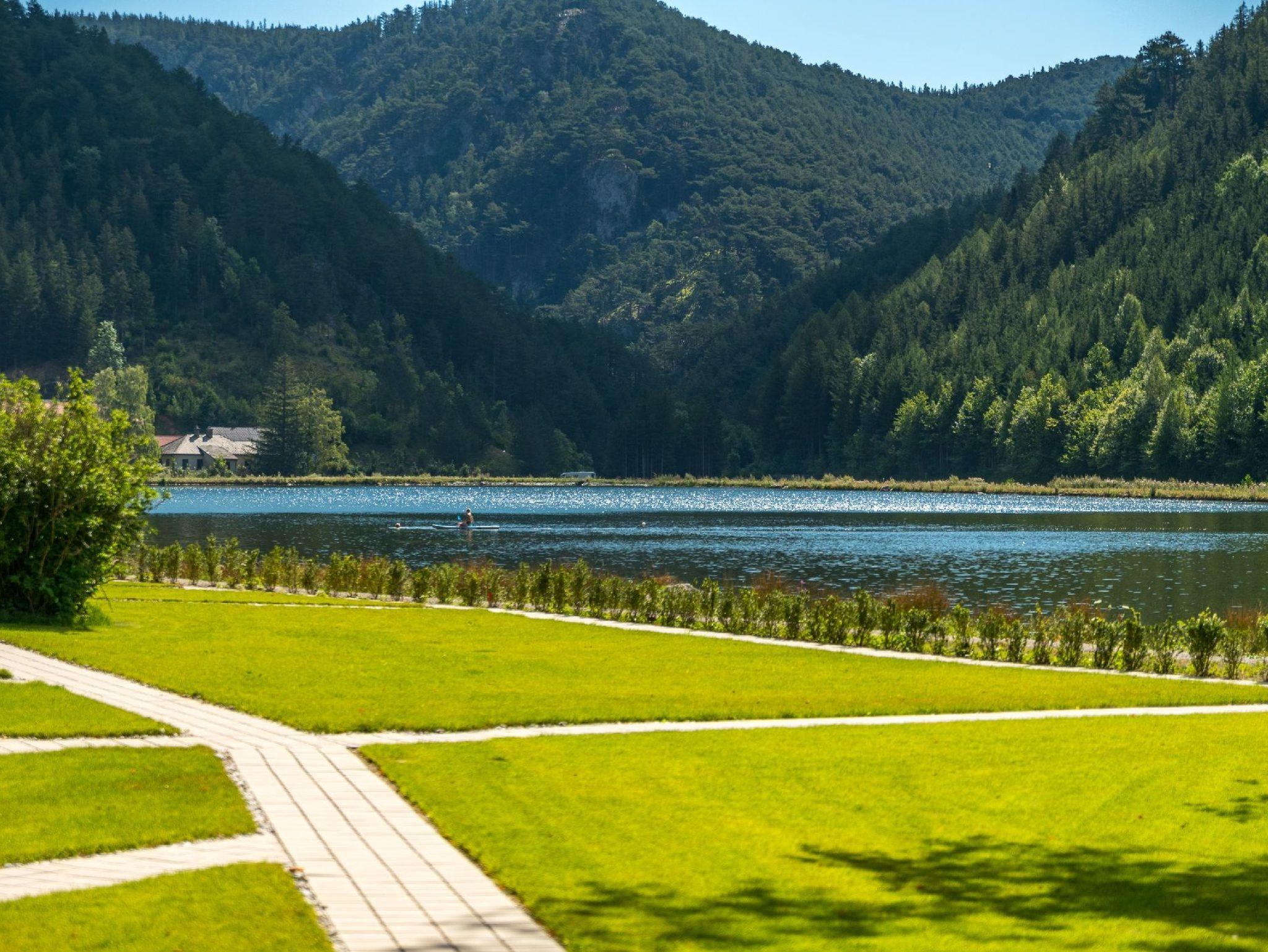 Direkt am einzigen See am Fuße des Schneebergs in bezaubernder Gebirgskulisse finden Sie unsere einzigartigen Chalets im Stil der traditionellen Holzbauweise der Schneeberger Waldbauern, welche sich zum Teil noch in Fertigstellung befinden, wobei aber bereits die ersten absolut neuen Chalets zu attraktiven Kennenlernangeboten von Neugierigen gebucht werden können. Für die Errichtung werden überwiegend Baustoffe wie Gebirgslerchenholz, Weißkiefer, Fichte und auch Kalkstein aus der Region verwendet und fügen sich somit ideal in die Naturlandschaft ein. Kombiniert mit stilvollem Wohnkomfort und optimaler (auch digitaler) Infrastruktur bieten die Chalets den idealen Rückzugsort. Ob einfach entspannen und durchatmen, den bezaubernden Ausblick genießen, Schwimmen, Klettern, Fischen, Reiten, Wandern, Radfahren, Tourenski oder Schneeschuhwandern, natürliche Lebensmittel aus dem unmittelbaren Gewässern, Weiden und Wäldern genießen - hier befinden Sie sich mitten in der Natur und Ihre Gedanken werden neue Wege gehen. MEIN CHALET am Schneeberg versteht sich als Ihr Rückzugsort und Ausgangspunkt in der Natur, 365 Tage jederzeit bereit, nur eine Autostunde südlich von Wien.