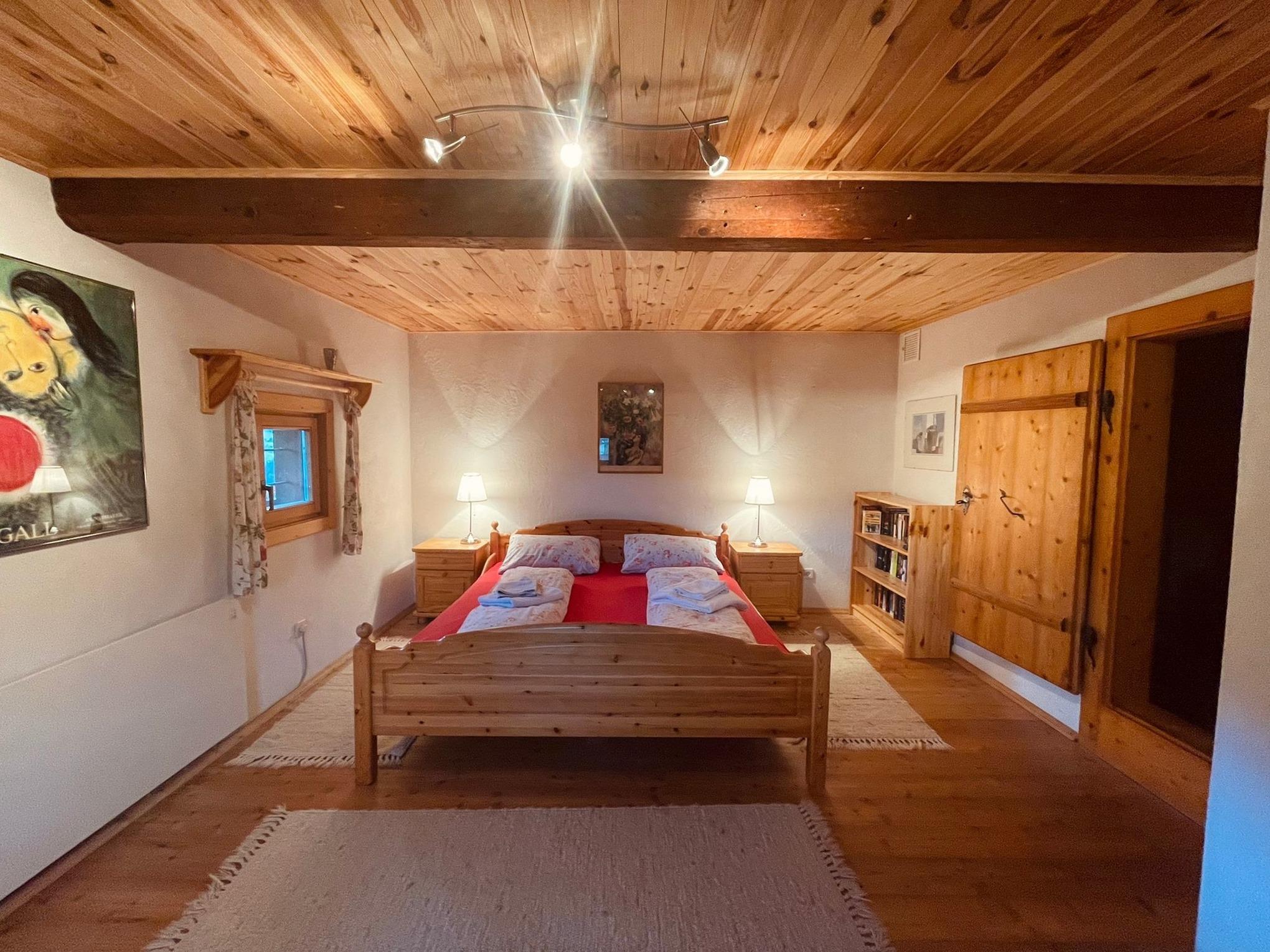 Zusätzlich gibt es im Wohnzimmer hinter dem Kamin ein großes Bett, welches sowohl von Erwachsenen aber vor allem auch gerne von Kindern und Jugendlichen bevorzugt wird.
