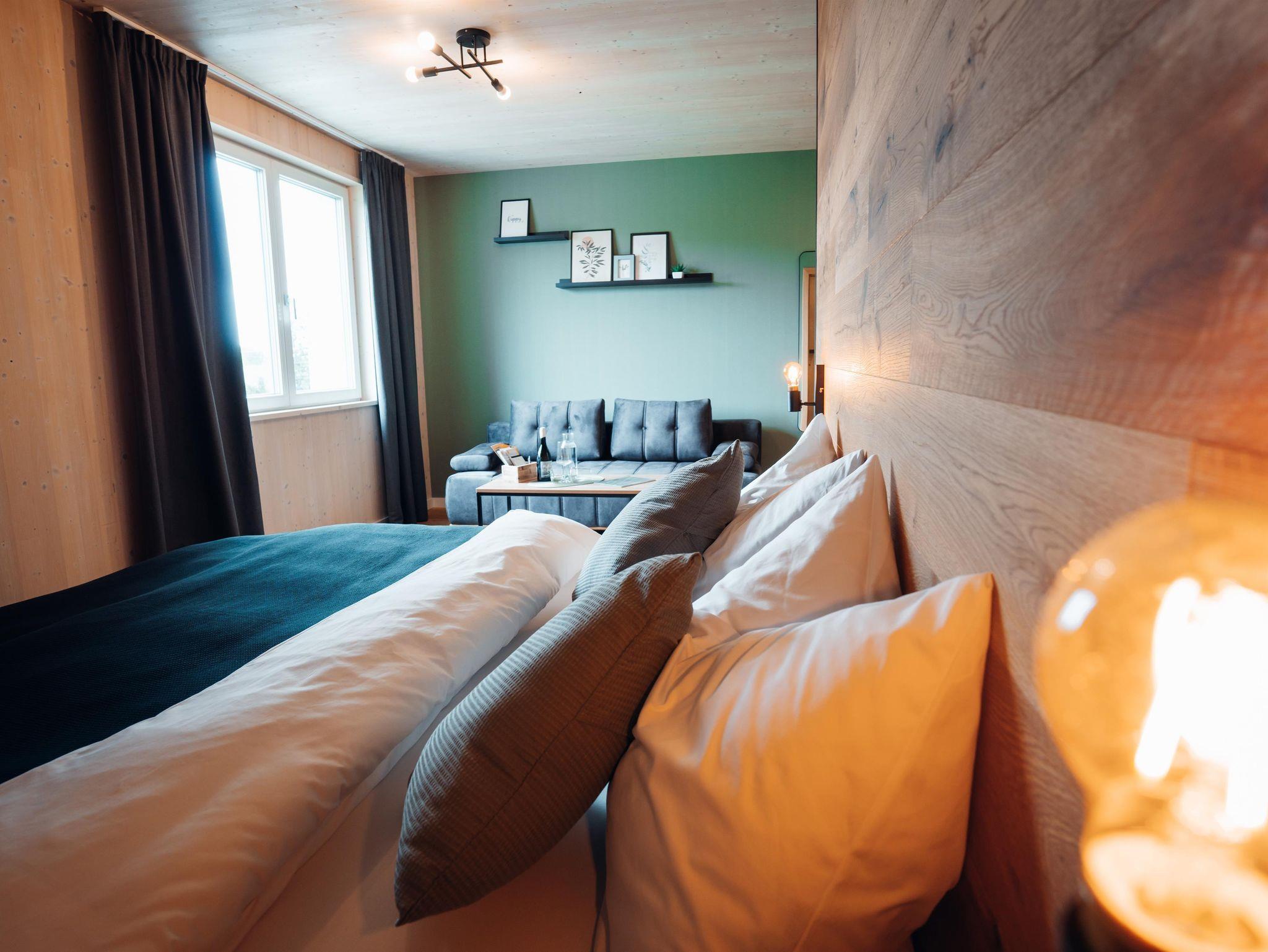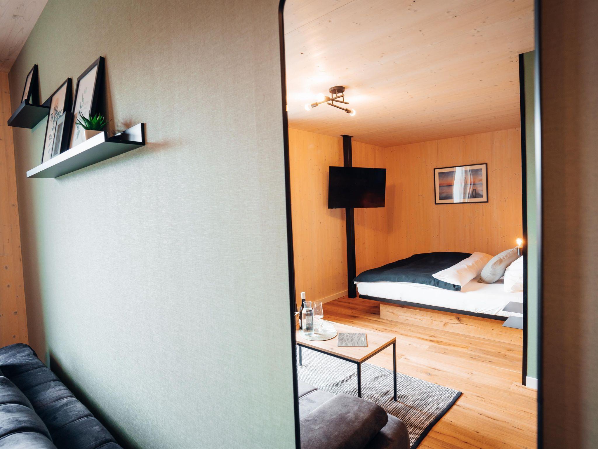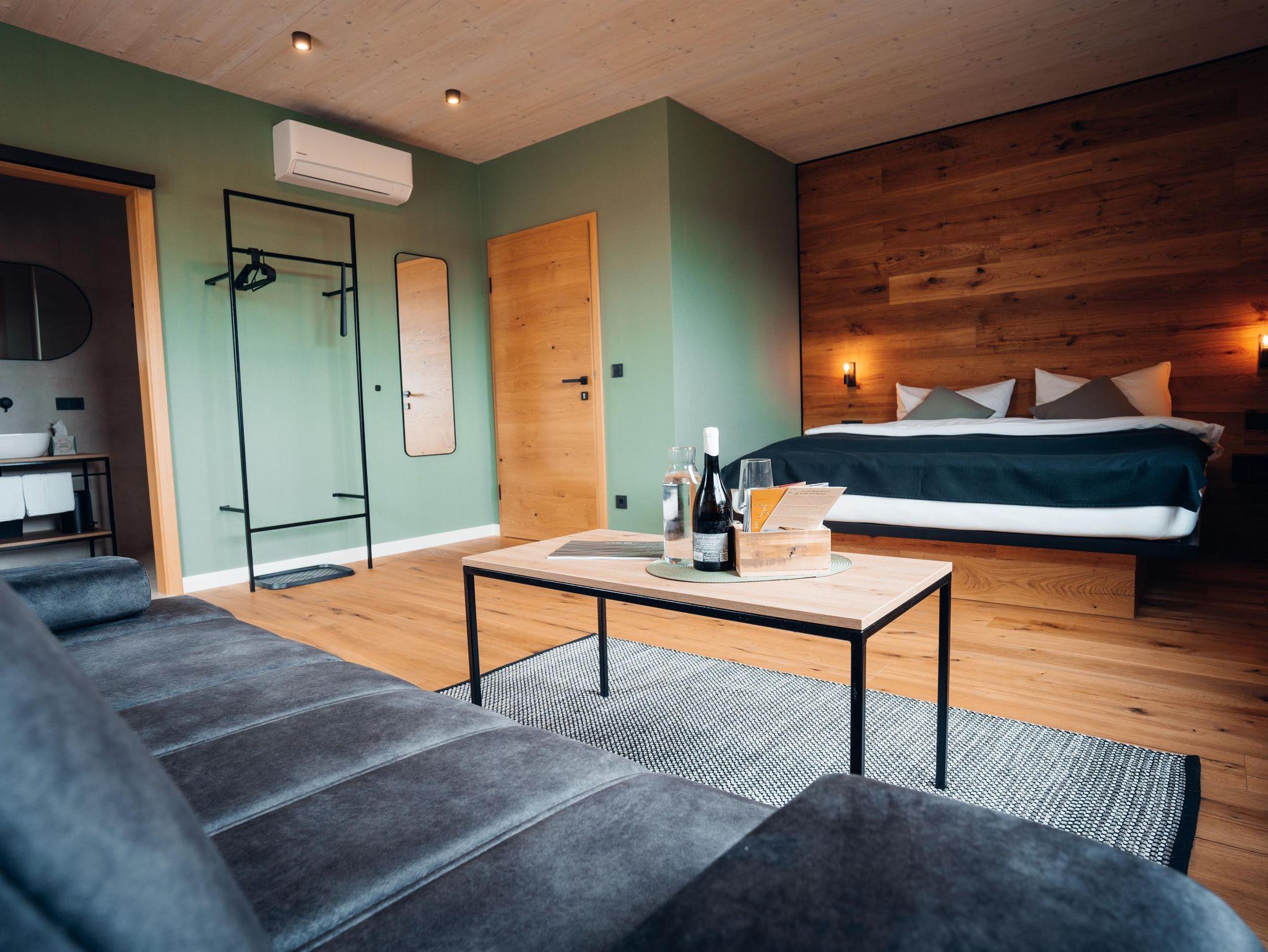 Das klimatisierte Doppelzimmer ist liebevoll eingerichtet. Es verfügt über ein erstklassiges Doppelbett, ein hochwertiges Sofa, ein modernes Bad mit Dusche und WC, Smart TV mit Kabelanschluss und natürlich gratis WLAN.