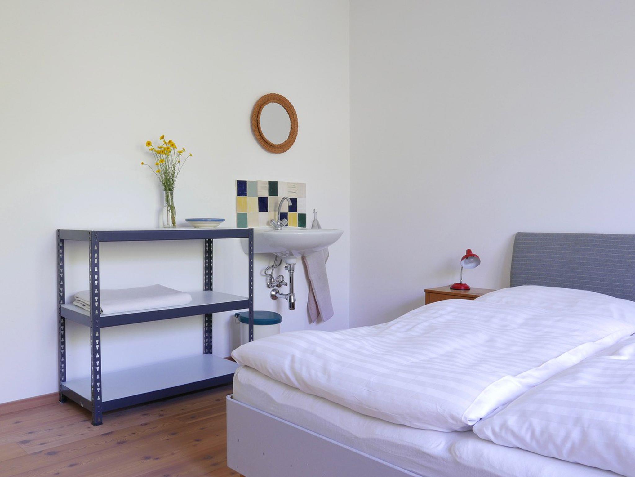 Willkommen im “Zimmer Mitte” – es ist ca. 20 m² groß, liegt im 1. Stock und ist mit einem gemütlichen Doppelbett (180X200 cm), einem Tisch und einem bequemen Fauteuil ausgestattet. Ein eigenes Waschbecken steht dir im Zimmer zu Verfügung. Das Bad mit Dusche und WC befindet sich im Erdgeschoss und wird mit dem “Zimmer Unten” mitbenutzt.