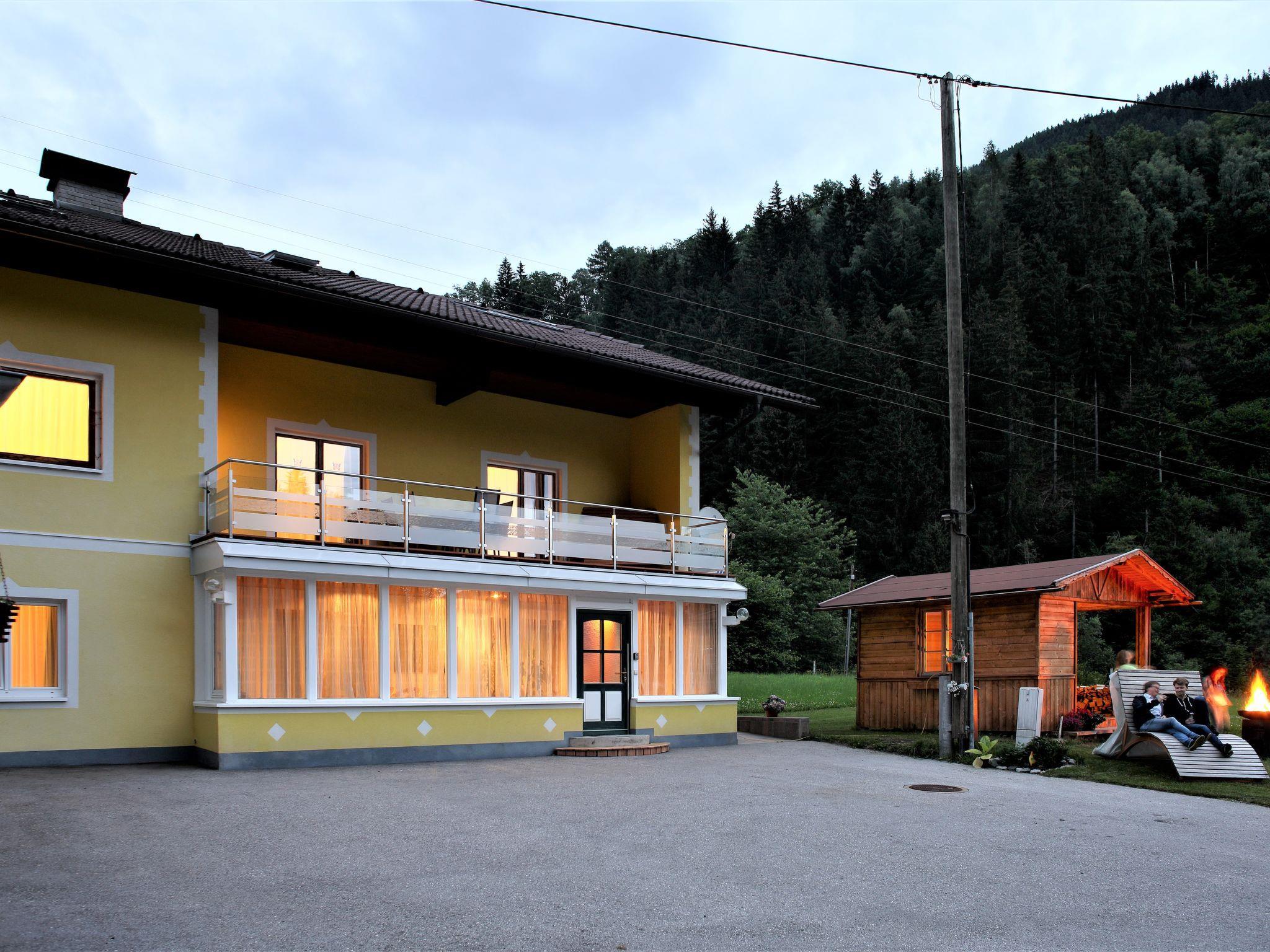 Kaning 5 km from Radenthein: Cosy apartment house "Schwarzwald", 3 storeys, renovated in 2014, surrounded by trees and meadows. In the district of Kaning Bach, in a quiet, sunny position, 11 km from the lake, 10 m from the stream. For shared use: natural state property 1'000 m2. Fireplace, barbecue house. In the house: central heating system. Motor access to the house. Parking at the house. E-charging station. Shop 6 km, grocery 7 km, supermarket 7 km, shopping centre 27 km, restaurant 5 km, bakery 5 km, café 5 km, bus stop 100 m, lake Millstätter See 11 km. Mountain railway 11 km, skisport facilities 11 km. Well-known ski regions can easily be reached: Bad Kleinkirchheim 11 km. Well-known lakes can easily be reached: Millstätter See 11 km. Hiking paths: ab Haus. Please note: car recommended, no lift.