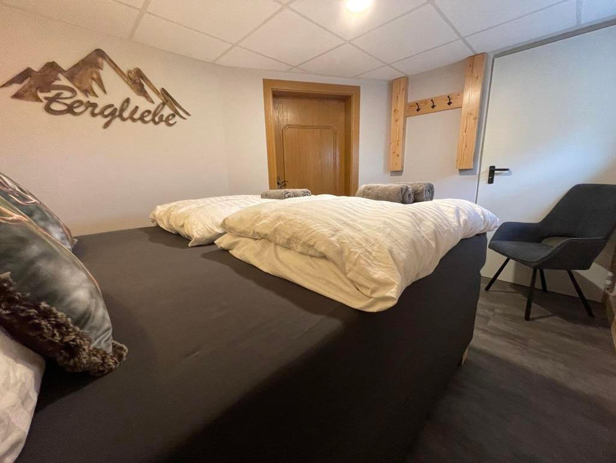 Schlafzimmer; im Schlafzimmer finden Sie ein Queen Size Boxspringbett (1,60 Meter breit). Im Wohnzimmer gibt es ein Schlafsofa (1,40 Meter breit) für 2 zusätzliche Schlafplätze. Bettwäsche ist inklusive.