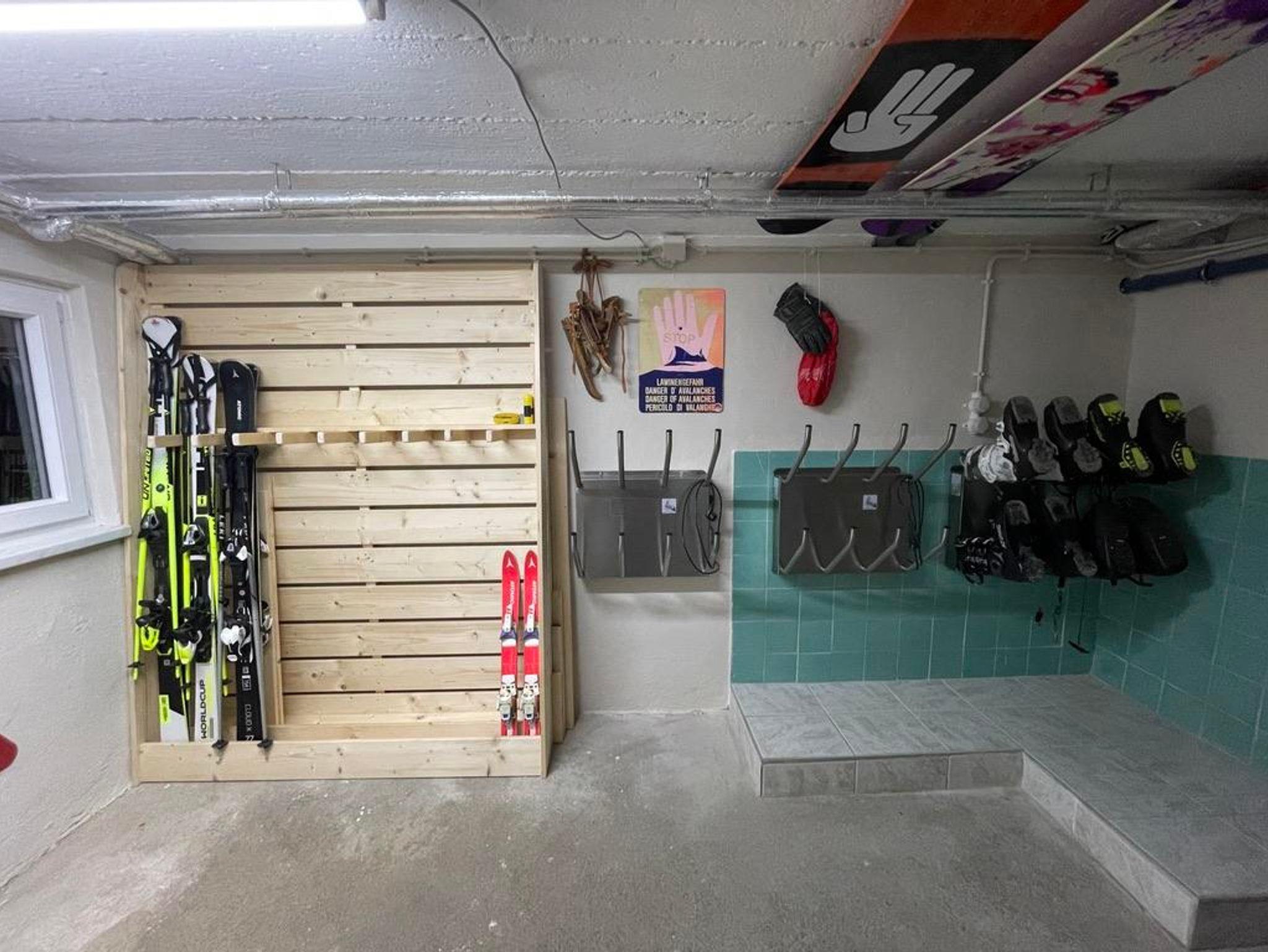 Bergung; geschlossener Ski- und Fahrradschuppen vor Ort.