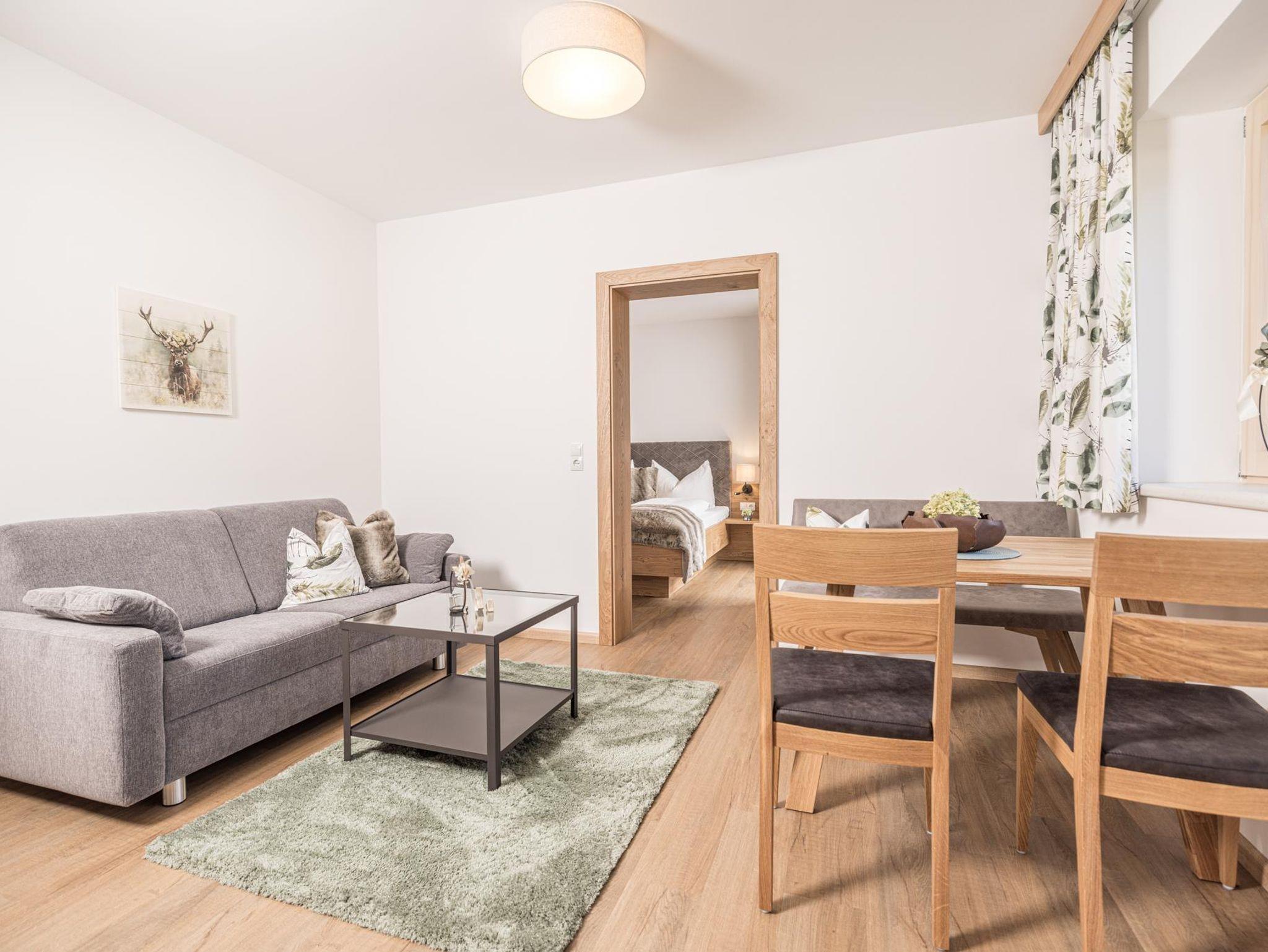 Das Appartement verfügt über ein Schlafzimmer mit einem großzügigen Doppelbett und einem Wohn - Essbereich. Die Küche ist voll ausgestattet mit einer Nespresso Maschine, Wasserkocher, Kühlschrank mit Gefrierfach, Backofen, 4- Platten Cerankochfeld, Geschirrspüler, Kochuntensilien und Geschirrtücher. TV Geräte finden Sie im Wohn - Essbereich wie auch im Schlafzimmer vor. Ebenfalls bietet das Appartement eine gemütliche Essecke sowie ein Sofa an.