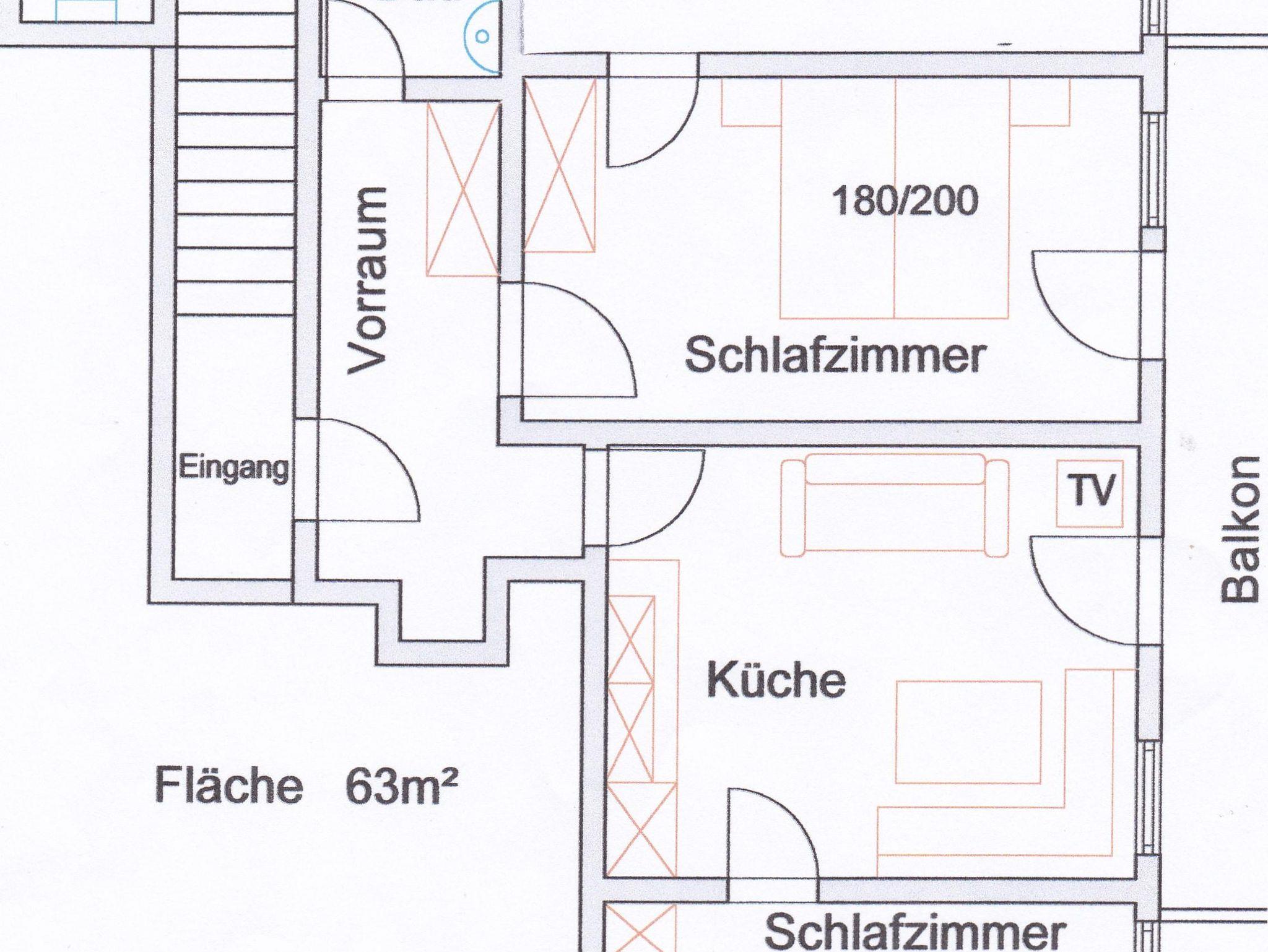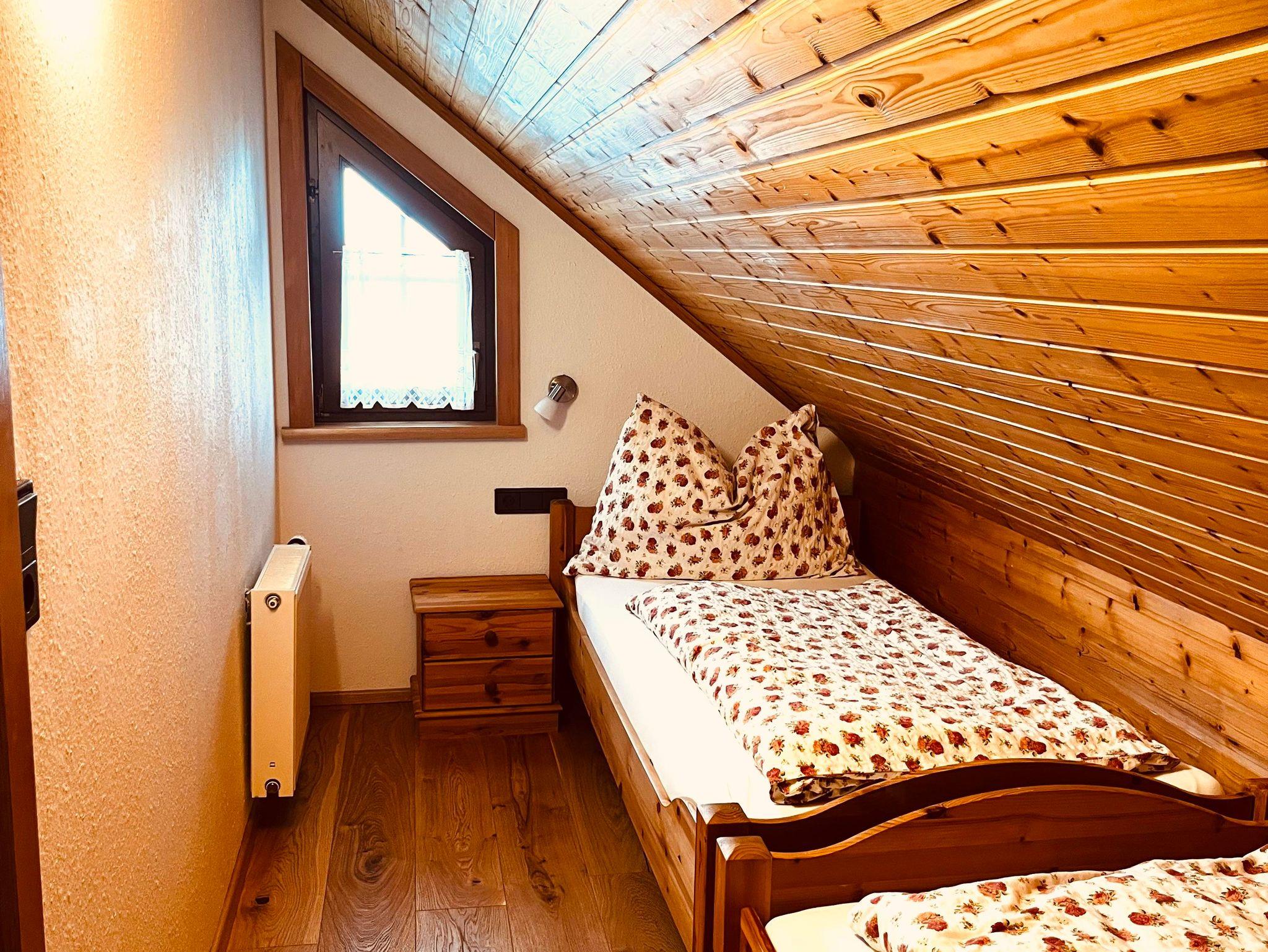 Gemütliche Ferienwohnung für 2-4 Personen,63m2,Wohnküche, Schlafzimmer, ein Zimmer mit Dachschräge, Dusche, WC, Sat-TV, Ostbalkon.