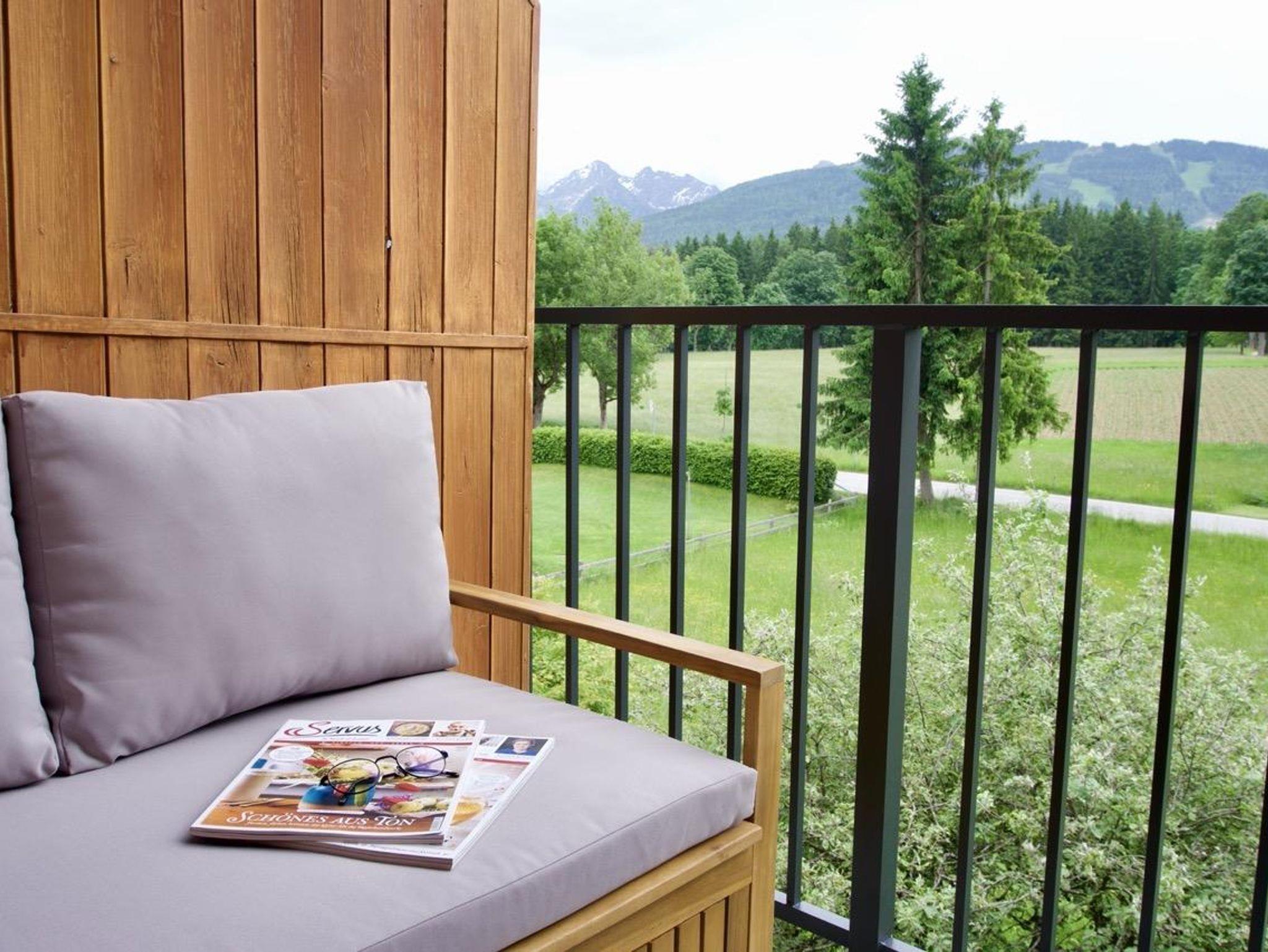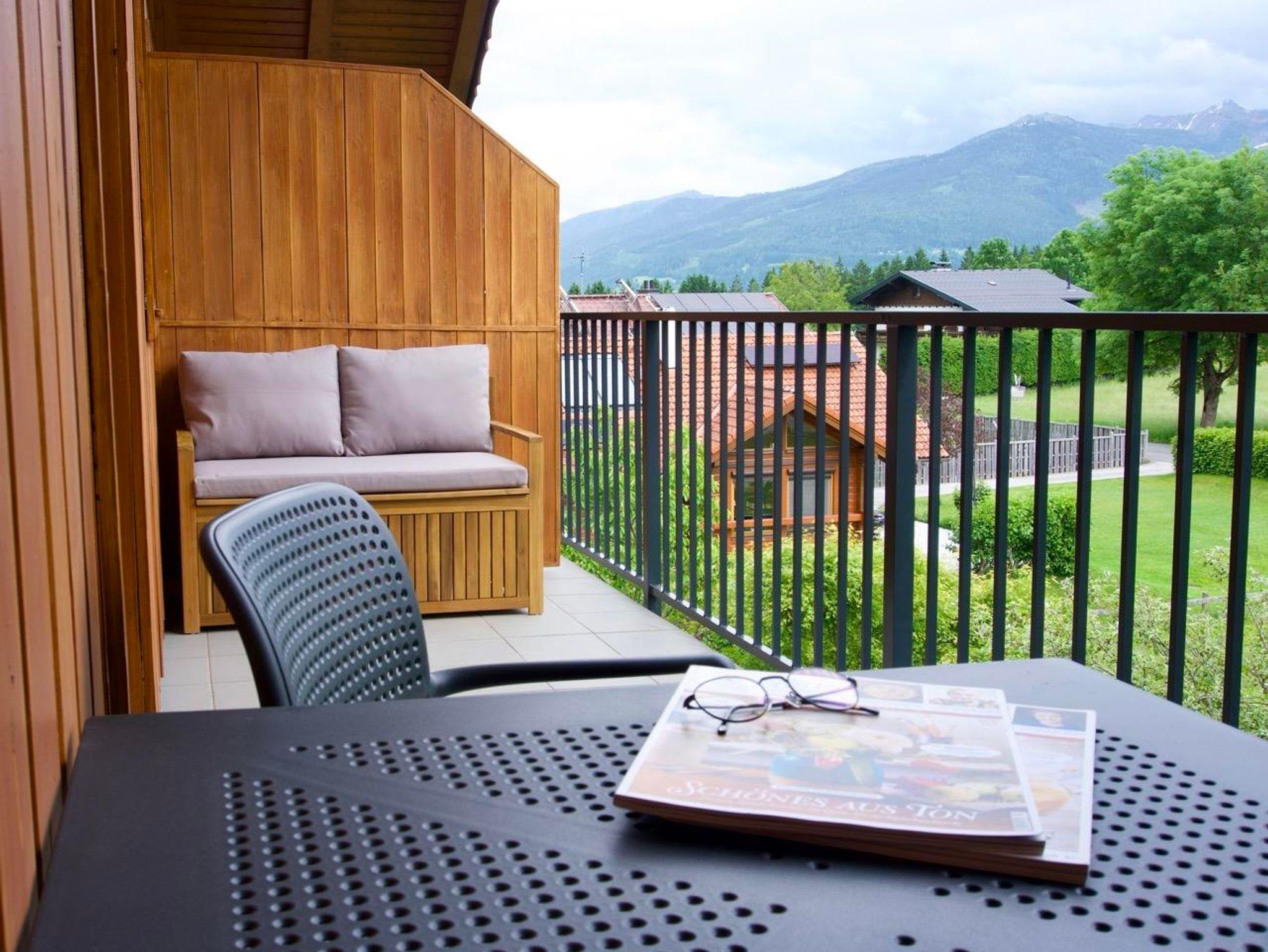 Vom Balkon, der ebenfalls zur Grundausstattung aller Appartements gehört, können Sie eine herrliche Aussicht auf die umliegenden Schi- und Wanderberge genießen.