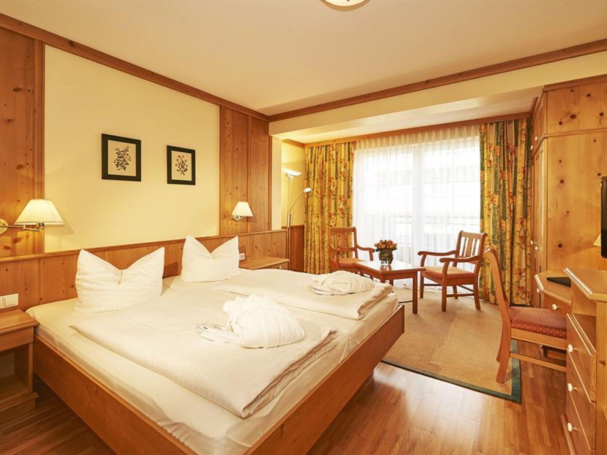 Doppelzimmer mit Balkon, Dusche und WC getrennt,Sat-TV, Telefon, Safe, Föhn, Bademantel. Zimmer mit Teppich oder Holzboden.