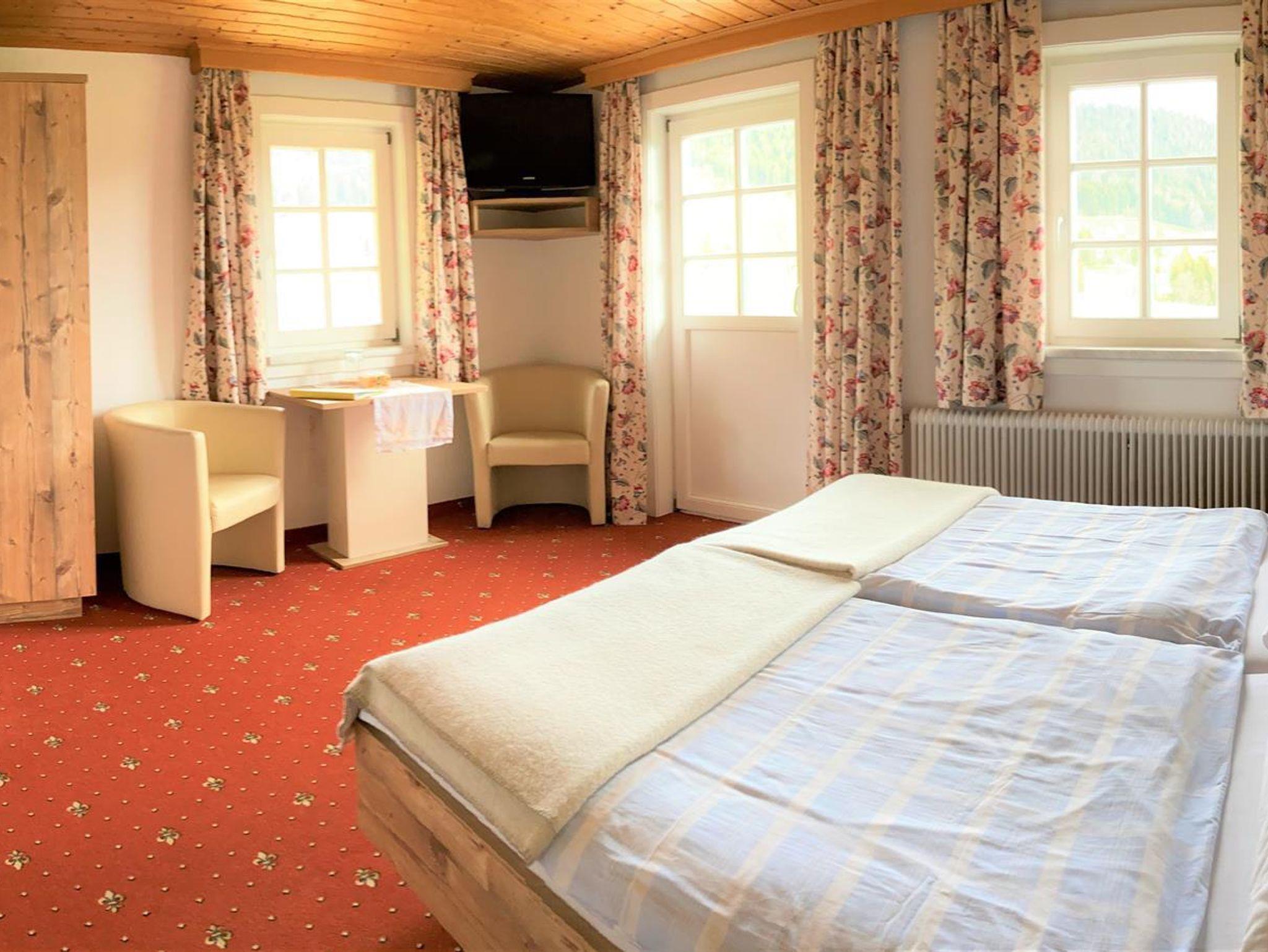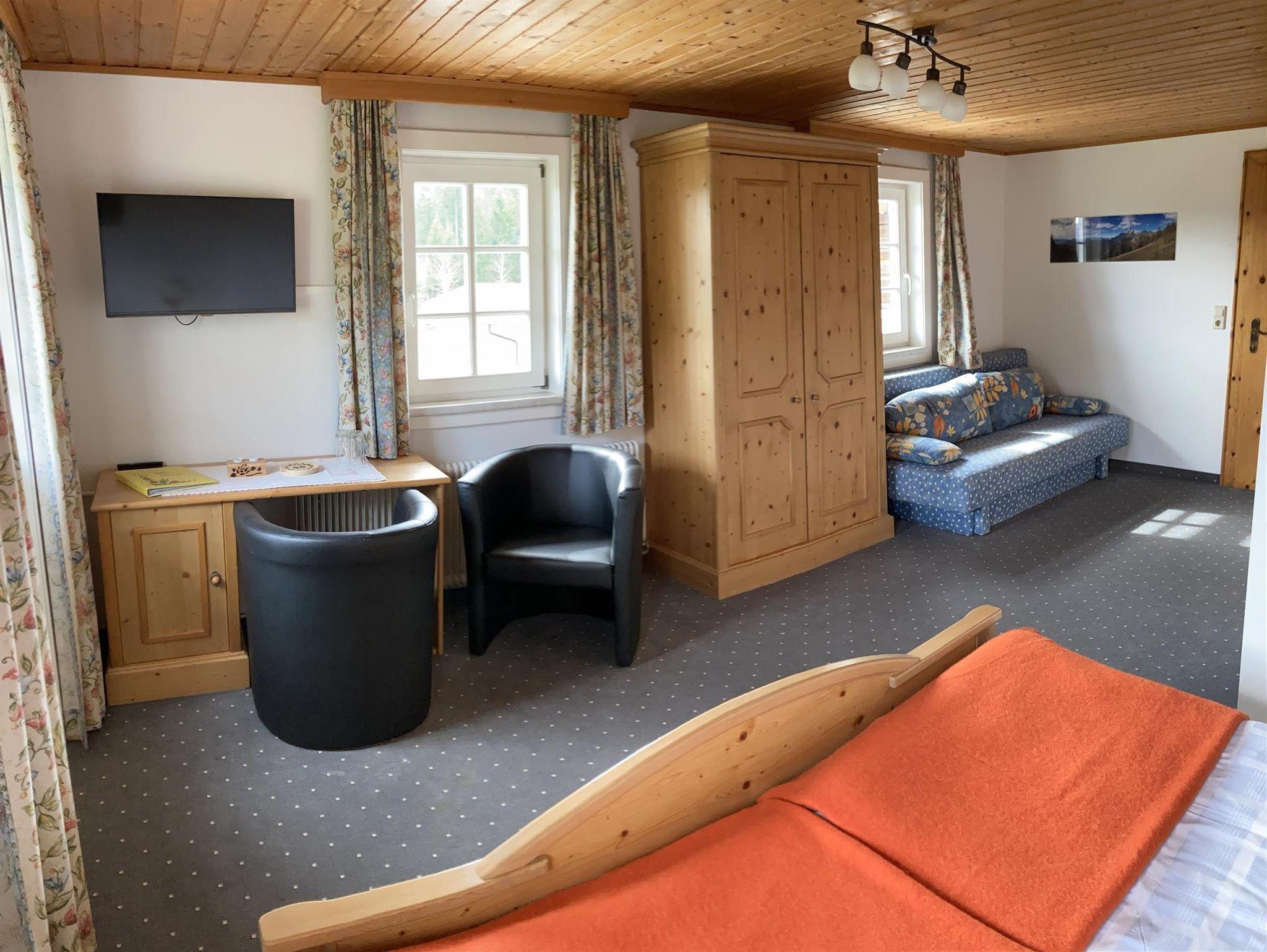 Gemütlich, rustikal eingerichtetes Zimmer mit Dusche, WC, Sat-TV und Balkon.