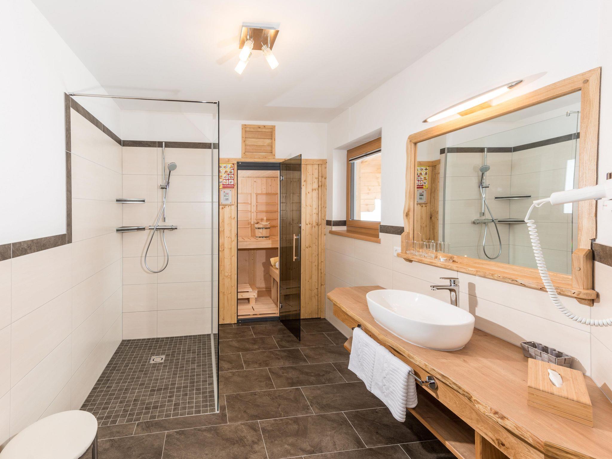 …im alpenländischen Appartement Heiterkeit. Moderne und doch warme Wohnatmosphäre durch handgefertigte Möbel aus Eichenholz. Am Abend zusammen bei einem Glas Wein den abenteuerlichen Tag ausklingen lassen. Regenerieren in der eigenen Infrarotkabine und anschließende Abkühlung auf der Terrasse mit Bergblick. Während der Sonnenuntergang letzte rote Schatten auf den Dachstein malt. Rückzugsort und Wohlfühlort zugleich.