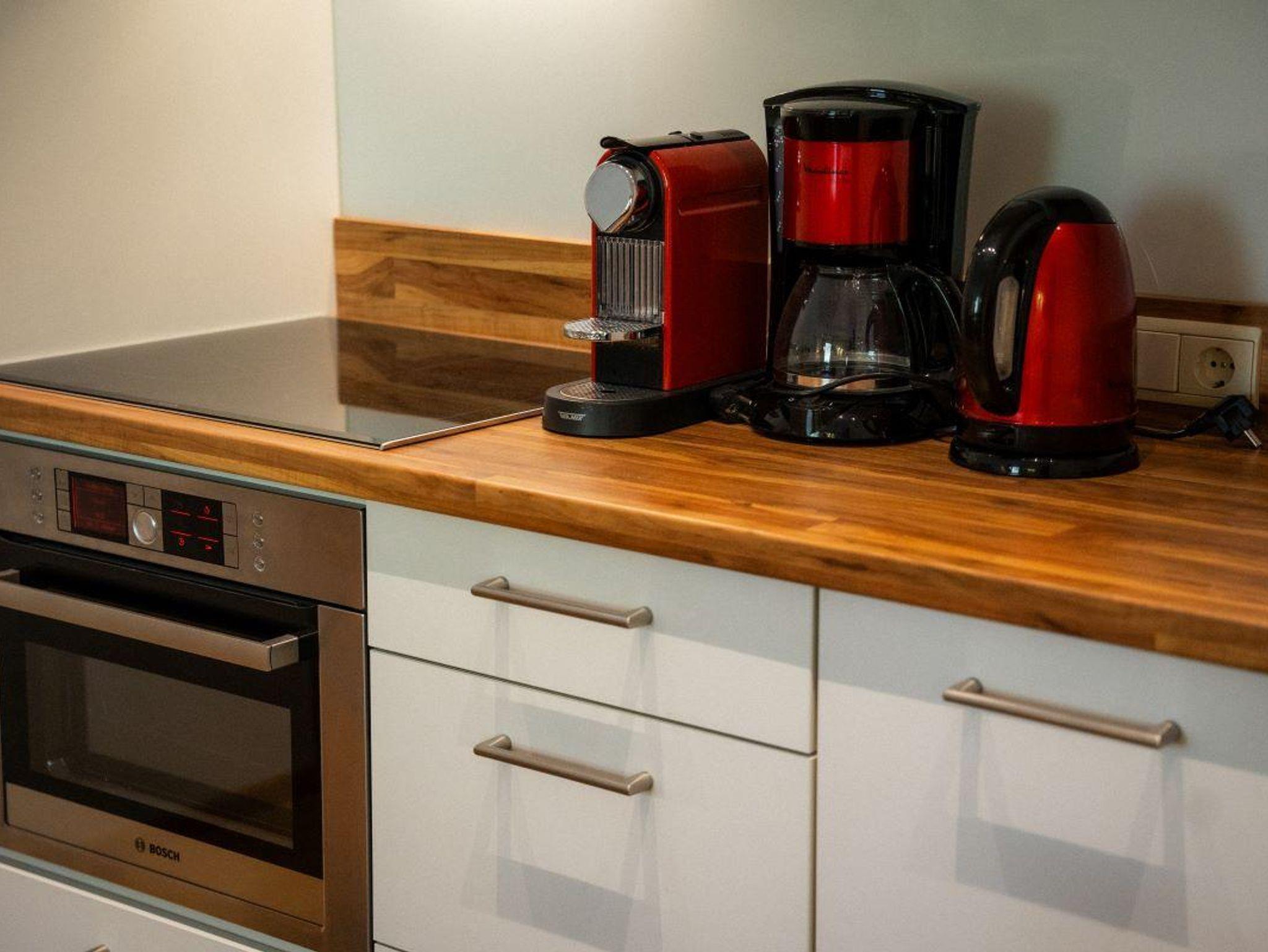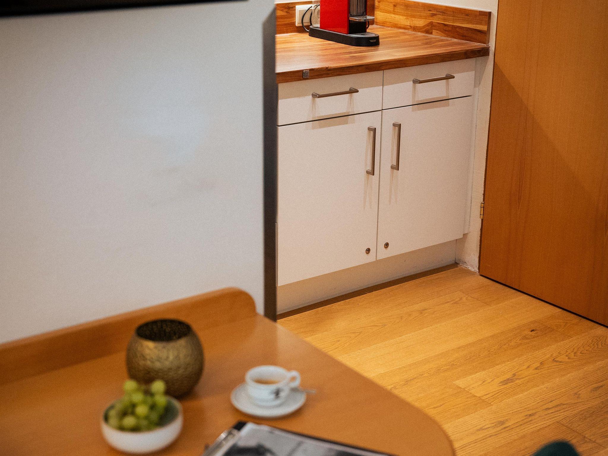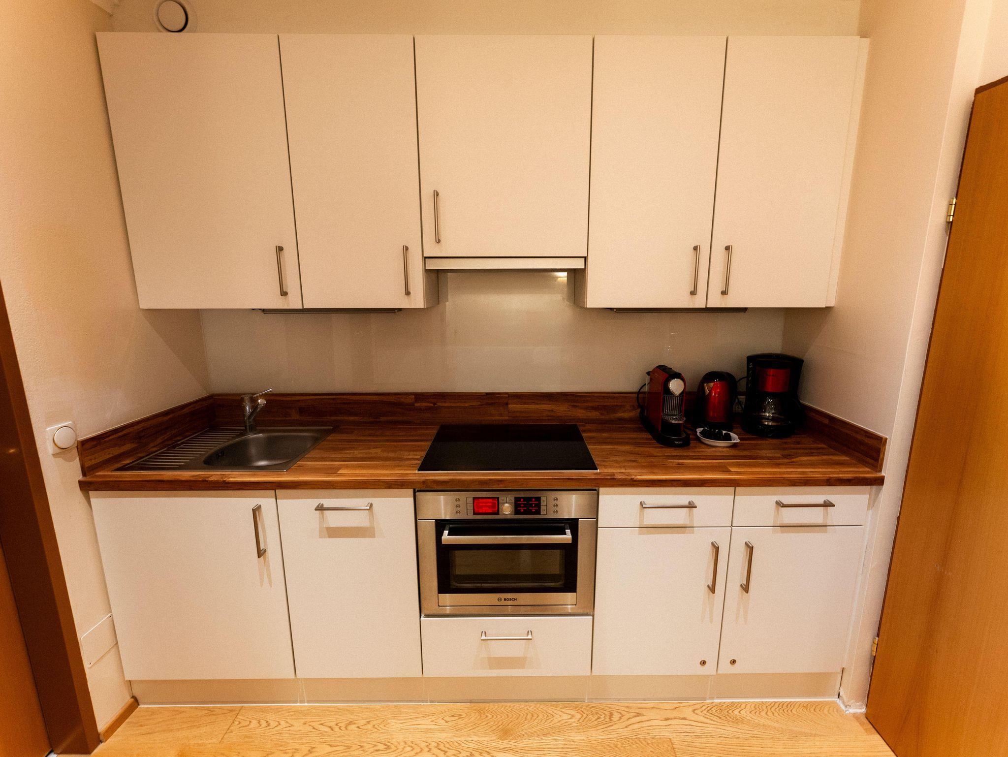 Allergenfreie Studios, mit Holzböden und großzügig vollausgestatteter Küche (Induktionskochfeld, Mikrowelle und Backofen, Filterkaffee- und Espressomaschine, Wasserkocher, Kühl-Gefrierschrank, Geschirrspüler)