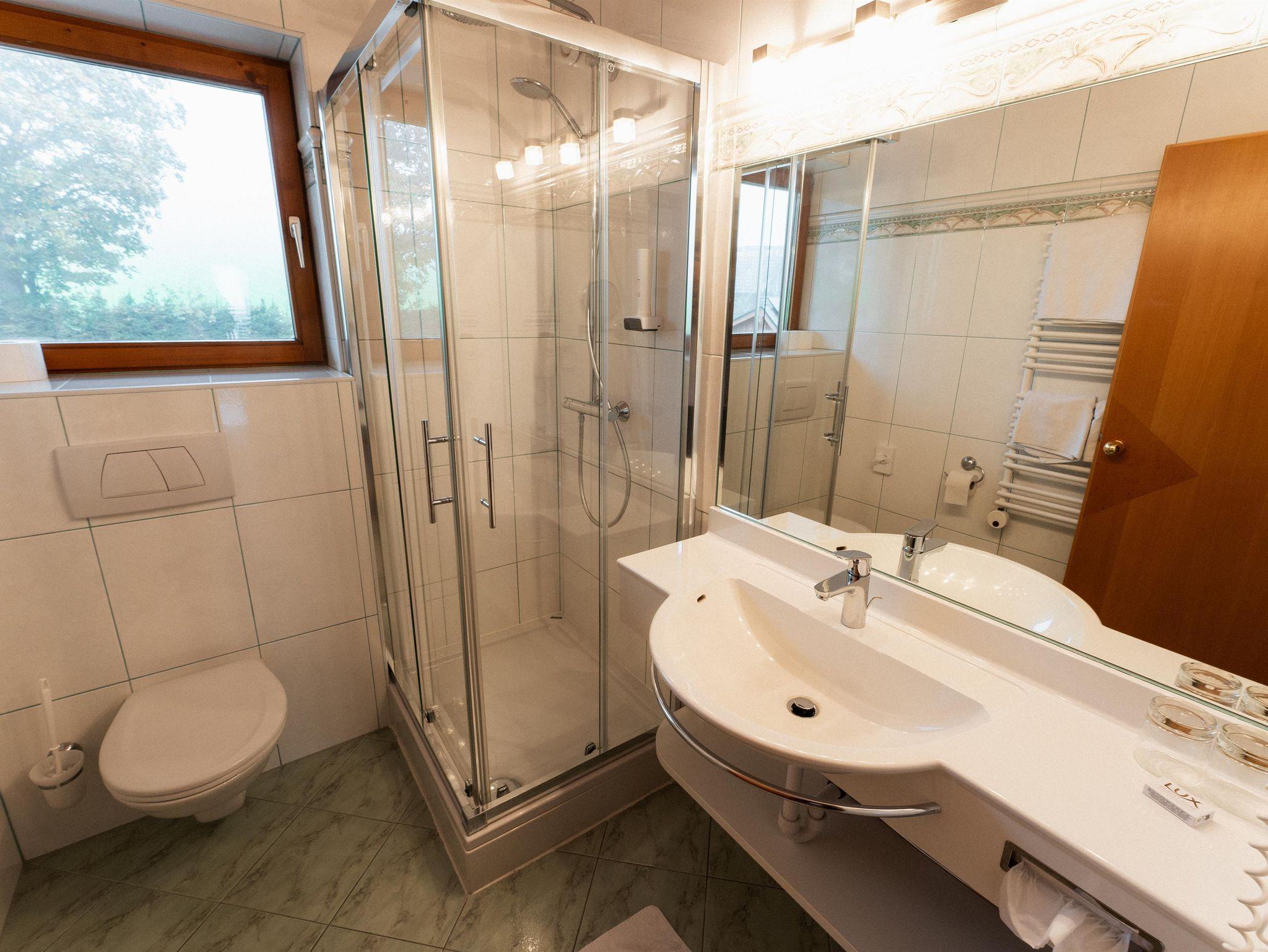 Aparthotel Pfeffermühle, Studio, Dusche, WC, Balkon