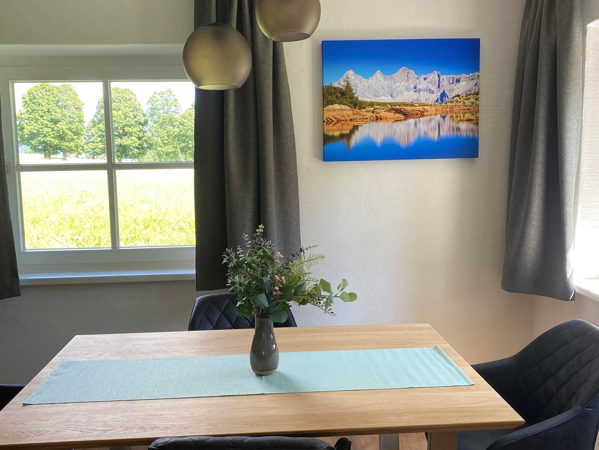 Das Appartement DACHSTEIN wurde im August 2023 komplett neueröffnet und liegt im Erdgeschoß vom Haus Wieseneck. Das Haus Wieseneck besticht durch seine Einzellage inmitten von saftigen Bergwiesen mit herrlichem Blick auf die Berge.