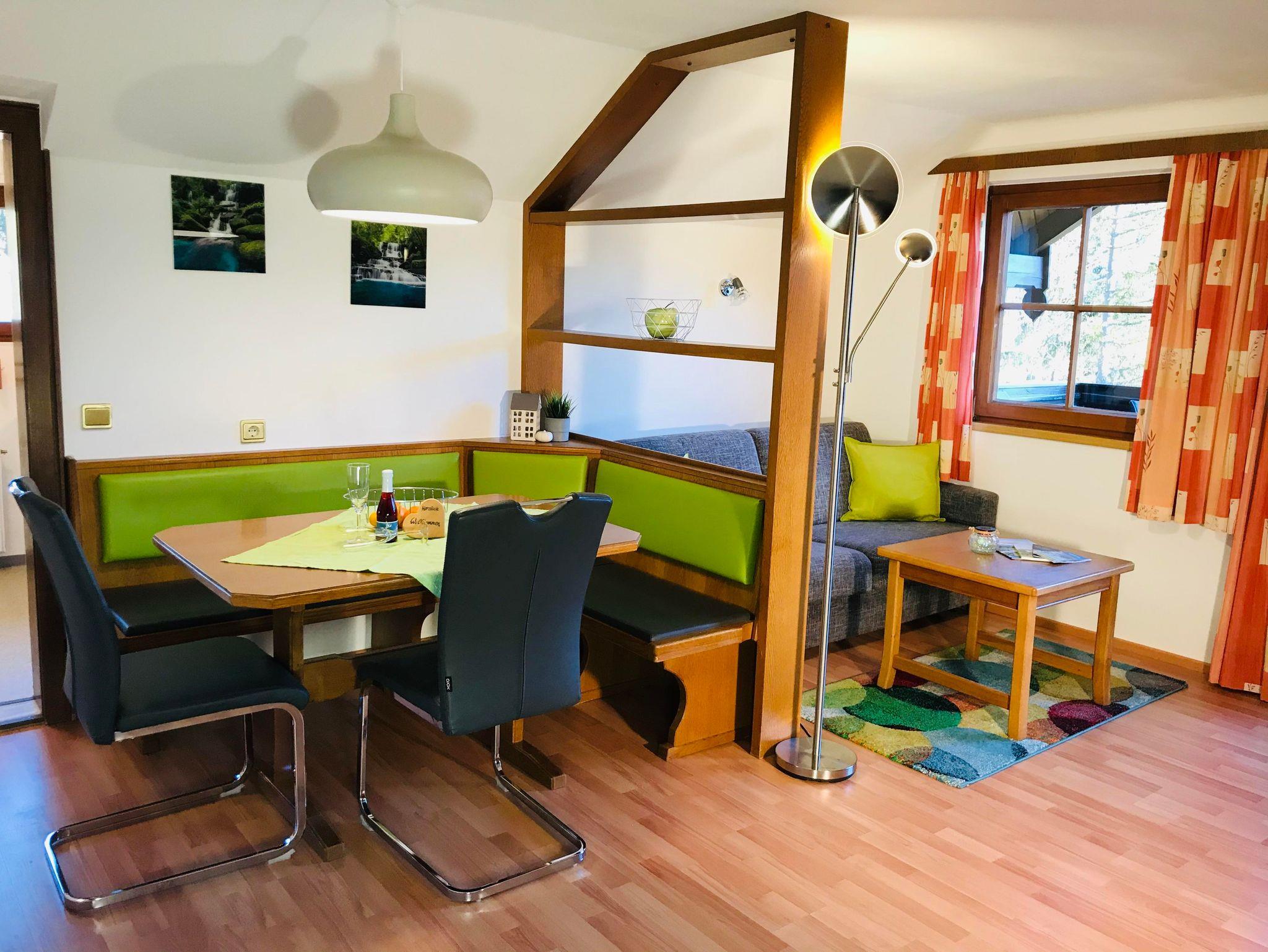Unser Haus befindet sich im Ortsteil Obere Leiten, umringt von beeindruckenden Berggipfel inmitten der idyllischen und ruhigen Naturlandschaft am Hochplateau. Wir bieten Ihnen zwei gemütliche und sonnige Ferienwohnungen für 2 bis 6 Personen.