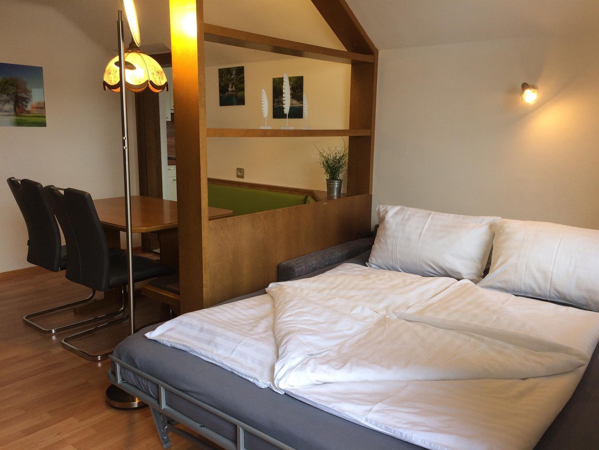 Ferienwohnung für 2-6 Personen, 2 Schlafzimmer jeweils mit Dusche/WC, 1 Wohnschlafraum mit Sat-TV, Radio, gemütliche Essecke, großer nord-, und südseitiger Balkon.