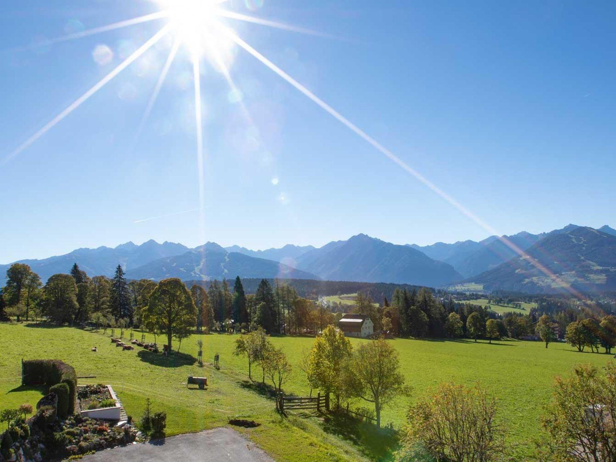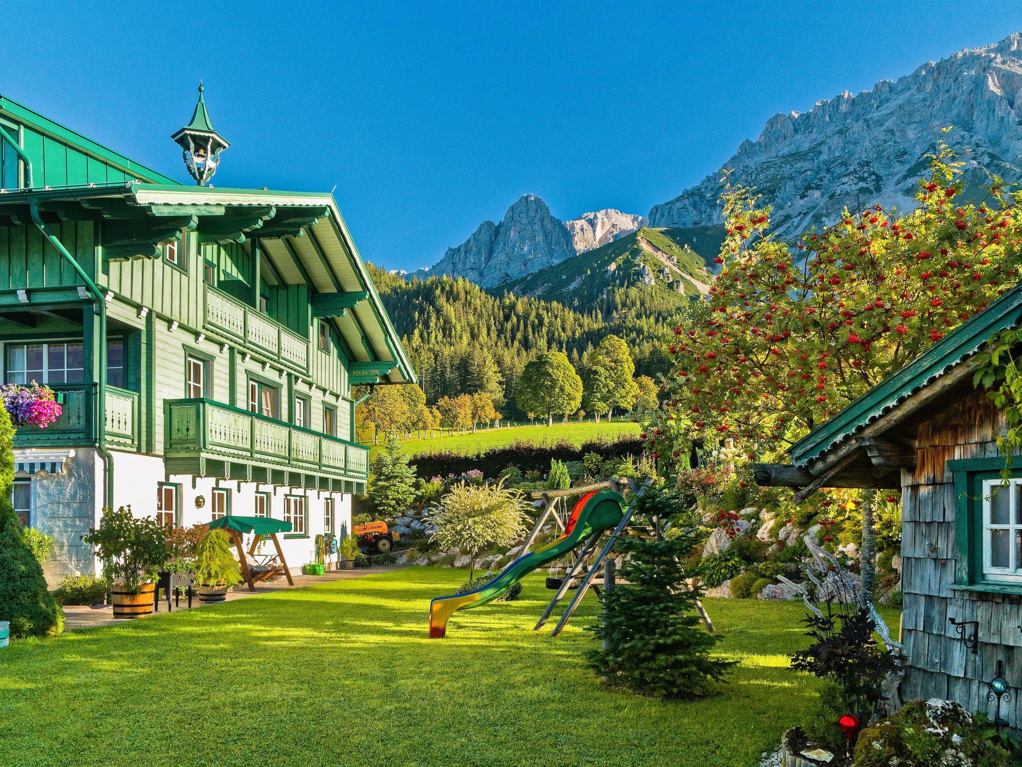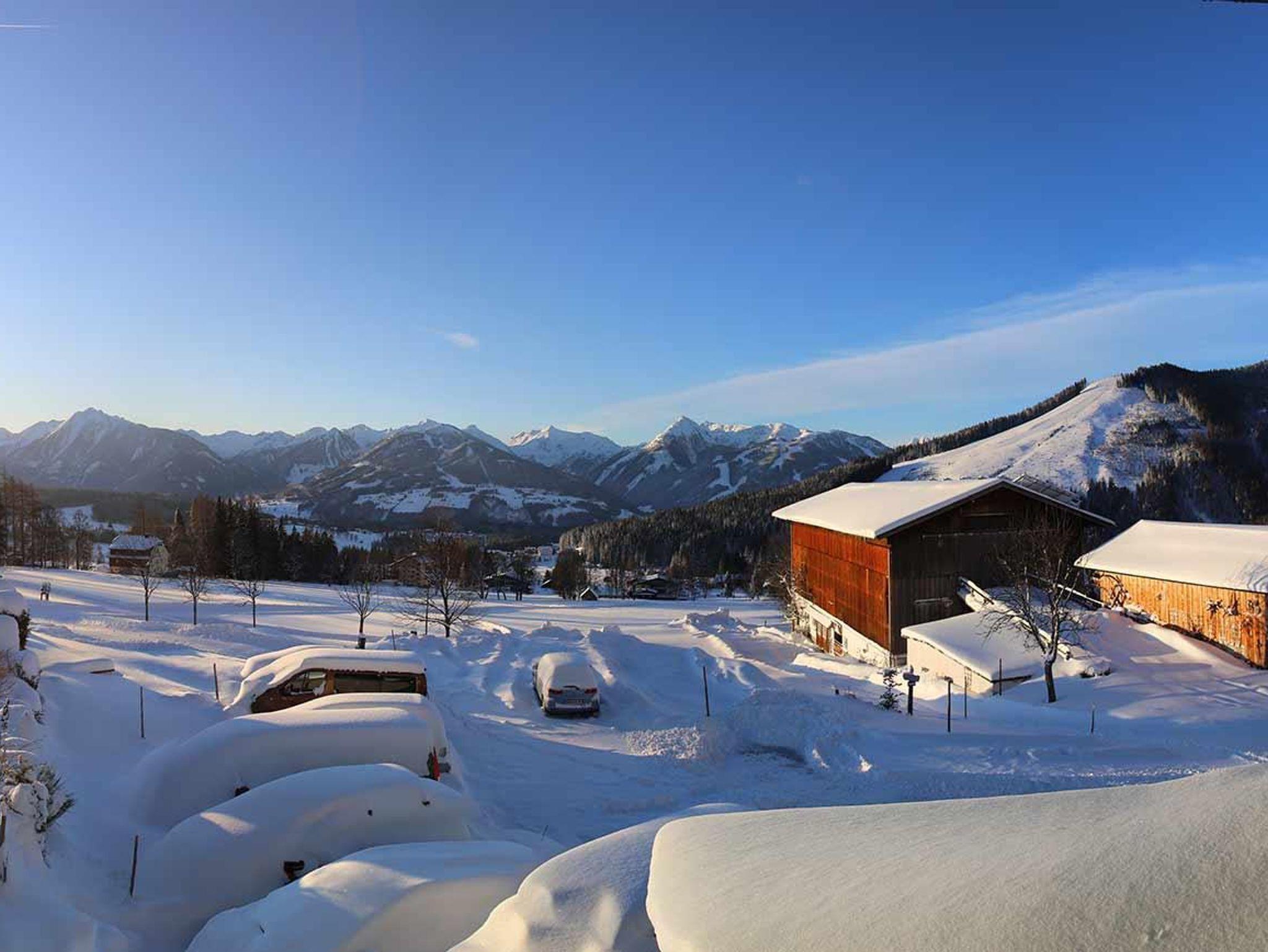 Oberhalb der Hauptstrasse auf einer leichten Anhöhe im Ortsteil Schildlehen, offenbart sich unseren Gästen ein faszinierender Panoramablick über die Bergwelt der Schladminger Tauern oder auf den Ski- und Erlebnisberg Rittisberg. Am Fuße des Dachsteins, umgeben von den eigenen grünen Wiesen bieten wir den perfekten Ausgangpunkt für Wanderungen, Mountainbike- oder Klettersteig- und Skitouren. Sie erreichen direkt vom Haus den Einstieg zur klassischen- oder Skatingloipe, 70km Winterwanderwege oder den Kinderskilift. In nur 10 Gehminuten finden Sie ein Sportgeschäft mit Skiverleih, die örtliche Kinderskischule oder die 3,5 km lange Nachtrodelbahn.