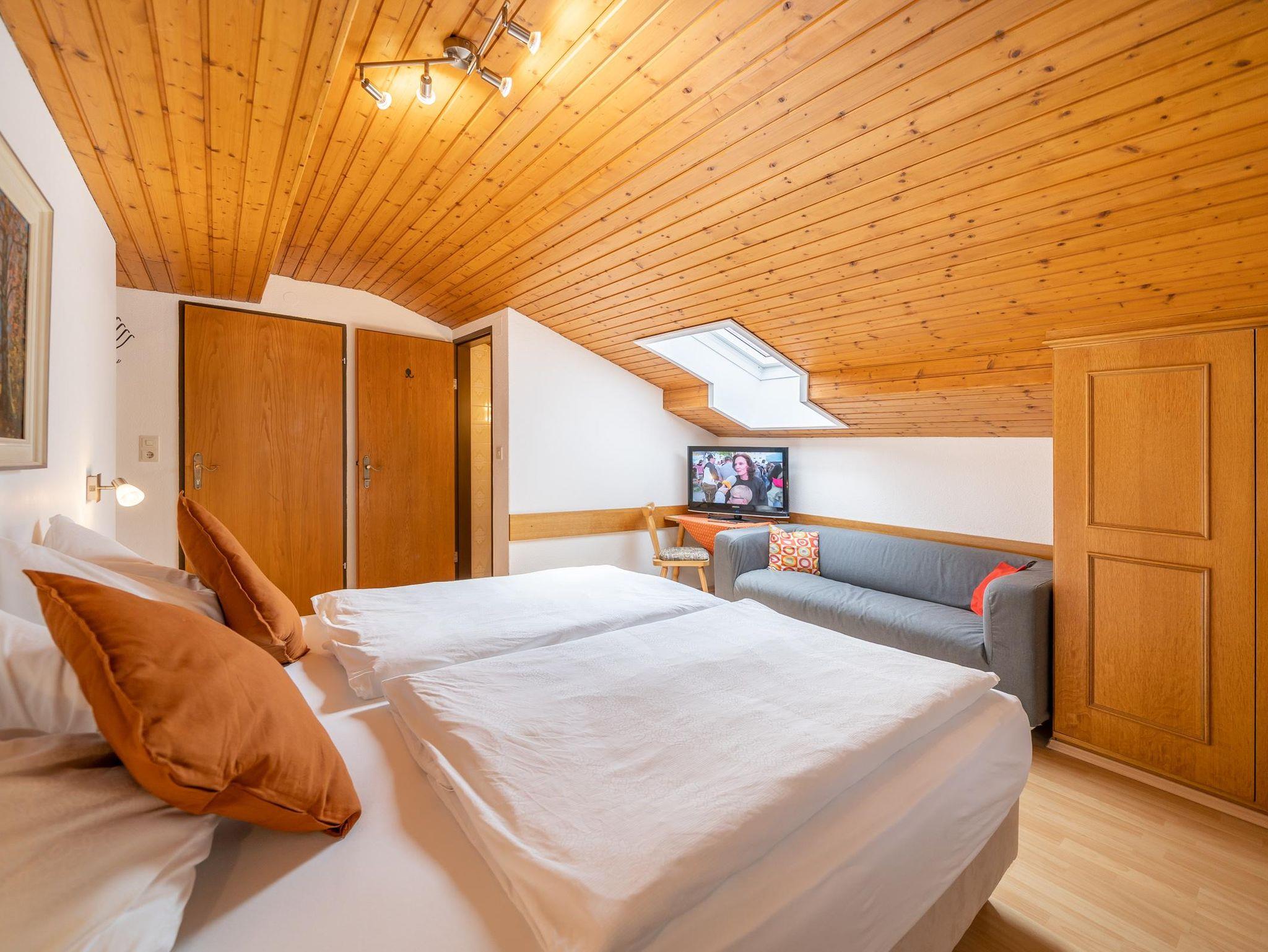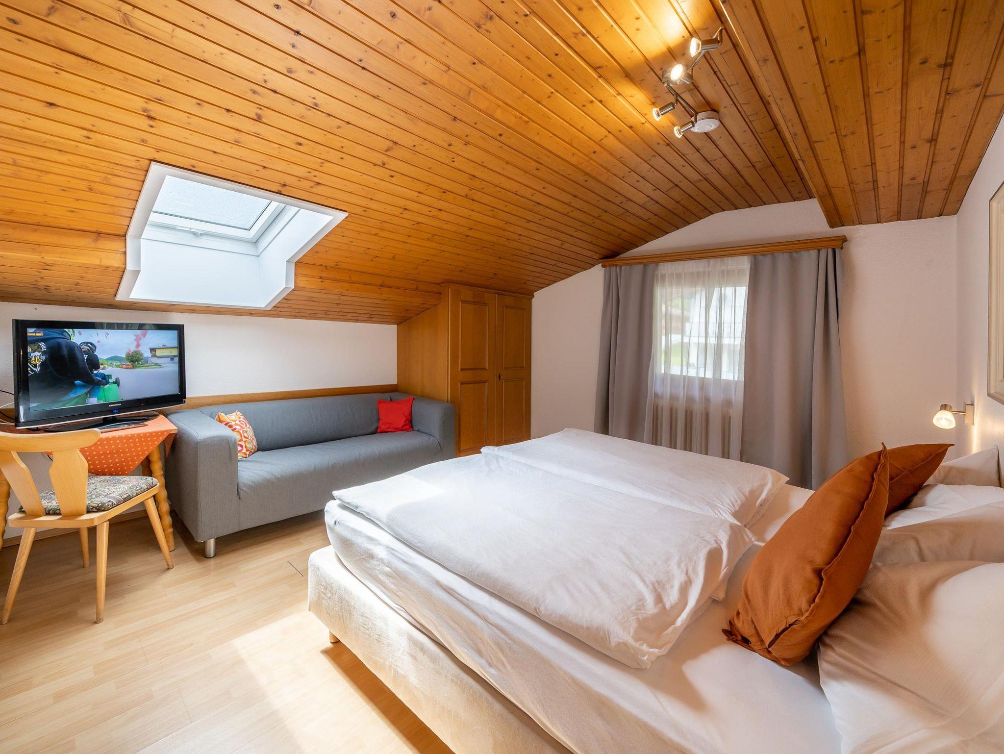 Unsere großzügige Familiensuite bietet viel Platz und Komfort für bis zu vier Personen – perfekt für Familien oder Freunde, die gemeinsam erholsame Tage in den Bergen verbringen möchten.