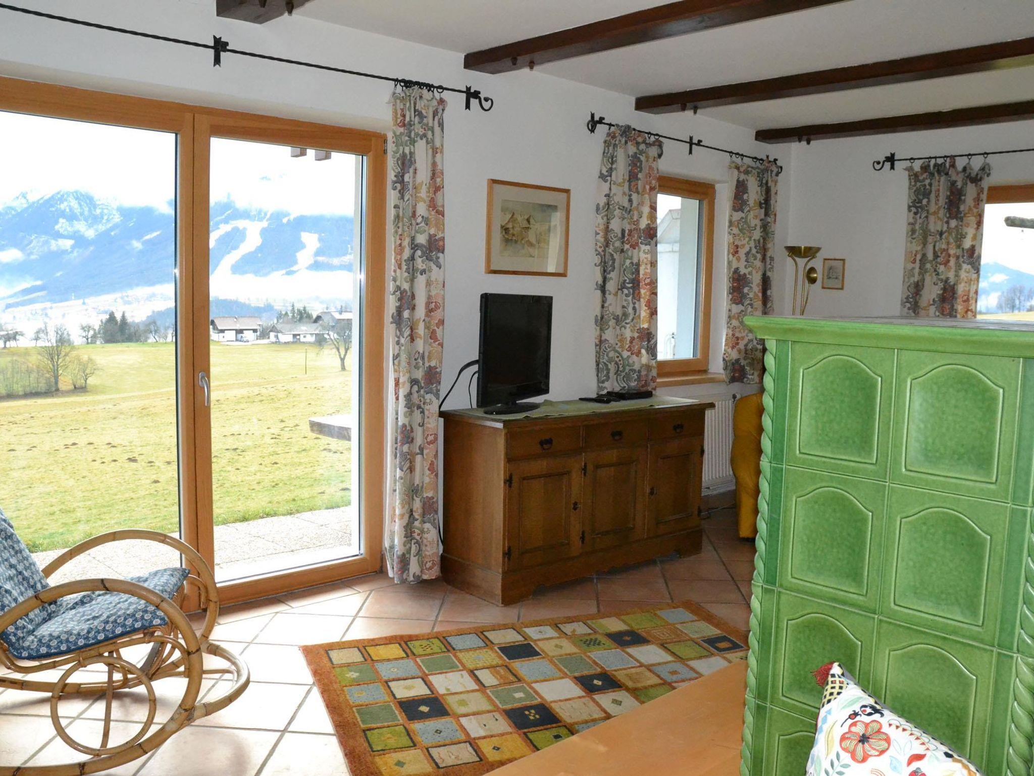 Wir bieten unseren Gästen im Ferienhaus Astrid eine helle, ebenerdige, im alpenländischen Stil eingerichtete Ferienwohnung für 2 bis 6 Personen. Der Kachelofen im großen Wohn- und Esszimmer sorgt für eine angenehme und wohnliche Atmosphäre. Nehmen Sie Platz im Schaukelstuhl oder auf dem gemütlichen Sofa und genießen Ihren Urlaub, die schönste Zeit des Jahres. Dazu gehört eine voll ausgestattete Küche, mit E-Herd, Mikrowelle, Kaffeemaschine und Wasserkocher sowie zwei getrennte Schlafzimmer.Das moderne Badezimmer besteht aus Dusche und großem Waschtisch mit Spiegelfront und bildet eine praktische Verbindung zwischen den Schlafräumen. Das WC befindet sich separat im Eingangsbereich der 85m² großen Wohnung.