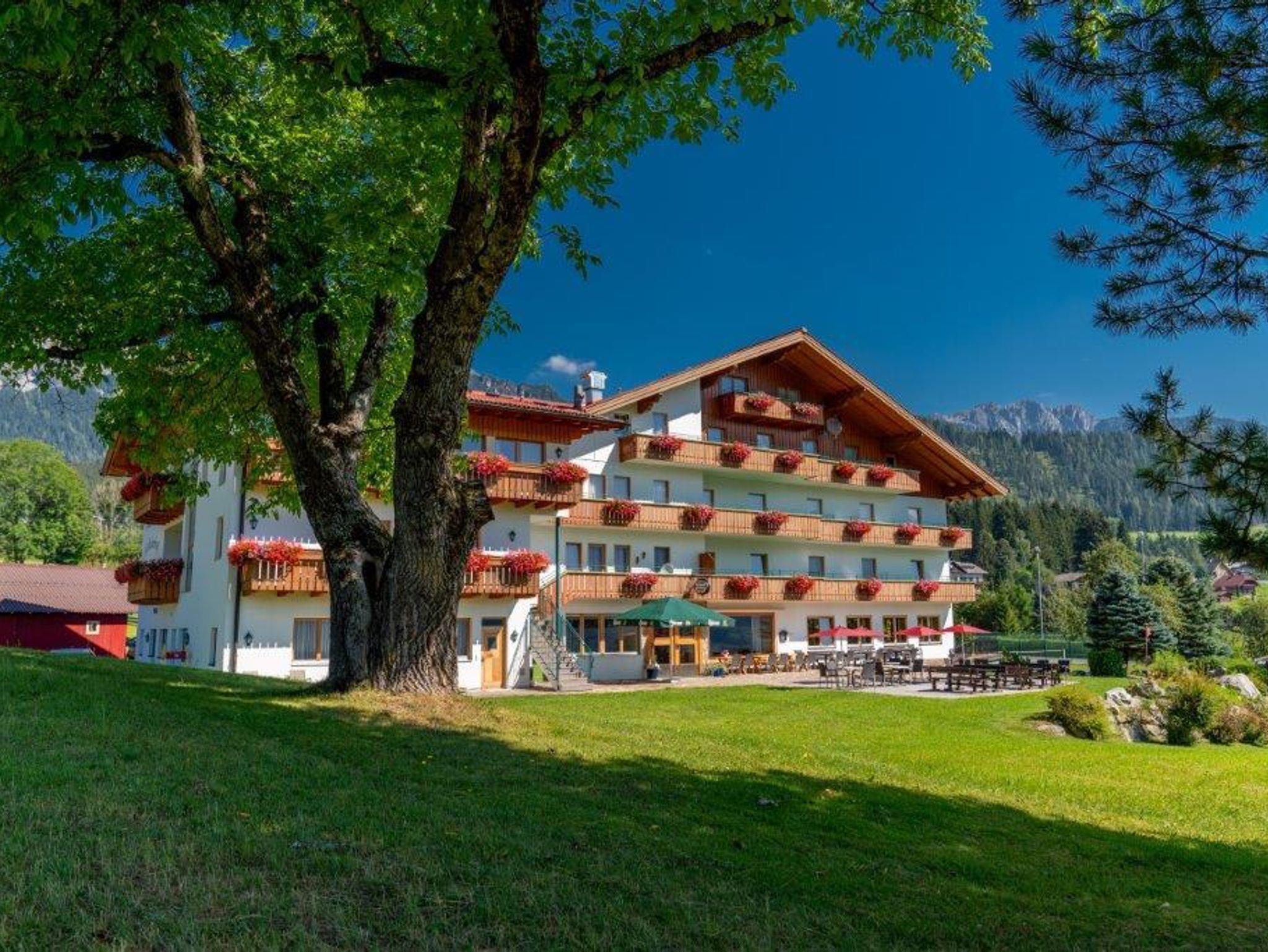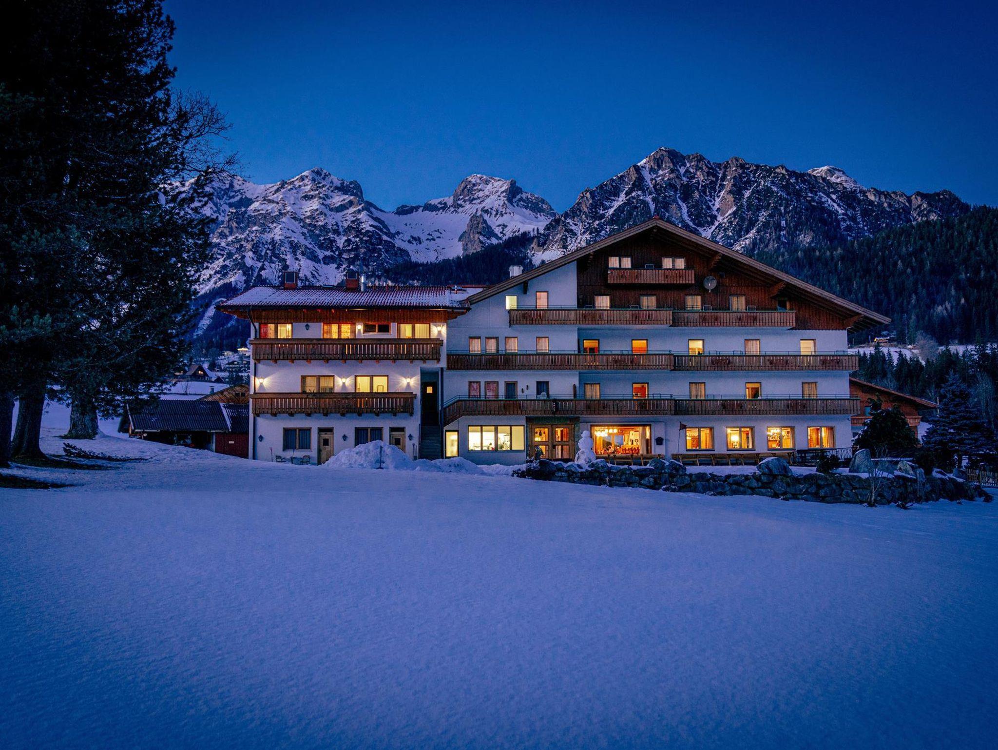 Unser Landhotel Kielhuberhof liegt im südlichen Teil der Ramsau, inmitten der eigenen grünen Wiesen: eine traumhaft ruhige und sonnige Lage am Fuße des Dachsteins mit freiem Panoramablick auf die Planai und die Niederen Tauern. Die vielen Sport- und Freizeitmöglichkeiten wie langlaufen, wandern oder Ski fahren laden zu einem einzigartigen Urlaub in die Ramsau ein! Der Skibus in die familienfreundlichen Skigebiete Ramsau und Ski amadé hält direkt beim Hotel Kielhuberhof. Der Kielhuberhof bietet Ihnen gemütliche Einzel- und Doppelzimmer, ein ebenerdig begehbares, barrierefreies Doppelzimmer mit Zugang über eine eigene Haustüre, geräumige Familienzimmer sowie Appartements und Ferienwohnungen für bis zu 6 Personen. Auch größere Gruppen sind bei uns im Hotel Kielhuberhof gerne willkommen. Alle Zimmer und Ferienwohnungen sind im modernen Landhaus-Stil eingerichtet und verfügen ab der Kategorie 25m² über neue große Wohlfühl-Badezimmer und über einen herrlichen Balkon mit Aussicht auf die umliegende Bergwelt. In den geräumigen Familienzimmern für 2 - 5 Personen finden Sie einen Vorraum mit Garderobe und eine kleine Küchenzeile mit bequemer Essecke. Gerne bieten wir Ihnen auch 1 barrierefreies Zimmer mit einem speziell auf die Bedürfnisse von Rollstuhlfahrern abgestimmten Badezimmer an. Für Ihr leibliches Wohl sorgen wir mit unserem reichhaltigen Frühstücksbuffet mit Produkten heimischer Bauern und dem köstlichen 3- oder 4-Gang Wahlmenü mit vegetarischer Alternative, Salat- und Dessertbuffet. Im Sommer laden wir einmal wöchentlich zu einem gemütlichen Grillabend ein. Das Hotel Kielhuberhof bietet Ihnen eine Freizeithalle mit Tischtennis, Tischfußball und Billard, einen 400 m² großen Natur-Schwimmteich, eine Liegewiese, 2 Tennisplätze und einen Sportplatz für Fußball, Volleyball und Badminton. Nach einem aktiven Tag mit Wandern oder Langlaufen, entspannen Sie im neu gestalteten Wellnessbereich des Landhotels Kielhuberhof. Der Panorama-Wellnessbereich erstreckt sich über 2 Etagen und bietet eine urige Blockholz-Sauna-Hütte. Relaxen Sie auch in der Bio-Sauna, dem Kräuterdampfbad, der Infrarotkabine und im Ruheraum mit Blick auf das Dachstein-Massiv. Auf Anfrage organisieren wir für Sie entspannende Wohlfühl-Massagen. Von der Sonnenterrasse genießen Sie bei einem hausgemachten Apfelstrudel einen herrlichen Ausblick auf die Naturkulisse der Dachstein-Tauern-Region. In der gemütlichen Stube mit offenem Kamin verbringen Sie gediegene Stunden mit einem spannenden Buch oder bei einem Glas guten Österreichischen Weins. Im Sommer lädt Sie die idyllische Umgebung der Ramsau am Dachstein zu gemütlichen Spaziergängen, aktivem Nordic-Walking und Wanderungen auf die urigen Almen der Region ein. Für Kinder bieten Hochseilgärten, Freizeitparks und Naturlehrpfade spannende Erlebnisse. Den Winter in der Ramsau verbringen Sie auf den herrlich präparierten Pisten der Skigebiete Ramsau und Planai, auf den traumhaft gespurten Langlaufloipen, auf den Winterwanderwegen zu Fuß oder im Pferdeschlitten, oder ganz gemütlich in einer der umliegenden Hütten. Familie Tritscher freut sich schon sehr, Sie im Landhotel Kielhuberhof in Ramsau am Dachstein zu begrüßen und zu bewirten!