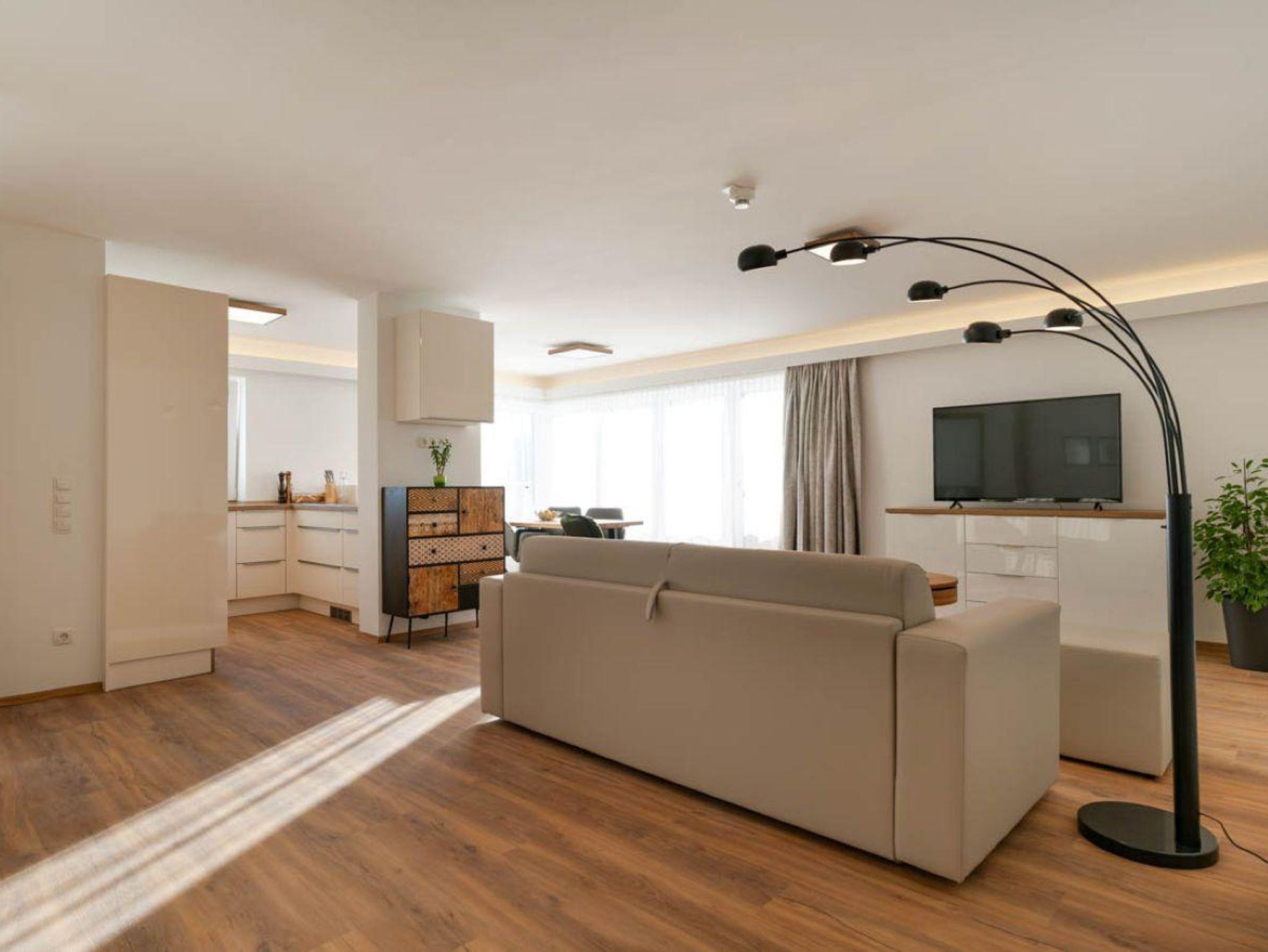 104m² / Wohnzimmer / 2 Schlafzimmer / 2 Badezimmer mit Dusche / 3 WCs / Küche mit Miele-Geräten: Geschirrspüler, Mikrowelle, Backrohr, Herd, Kaffeemaschine / Kabel-TV / W-LAN / Bettwäsche / Handtücher / Balkon 29m²
