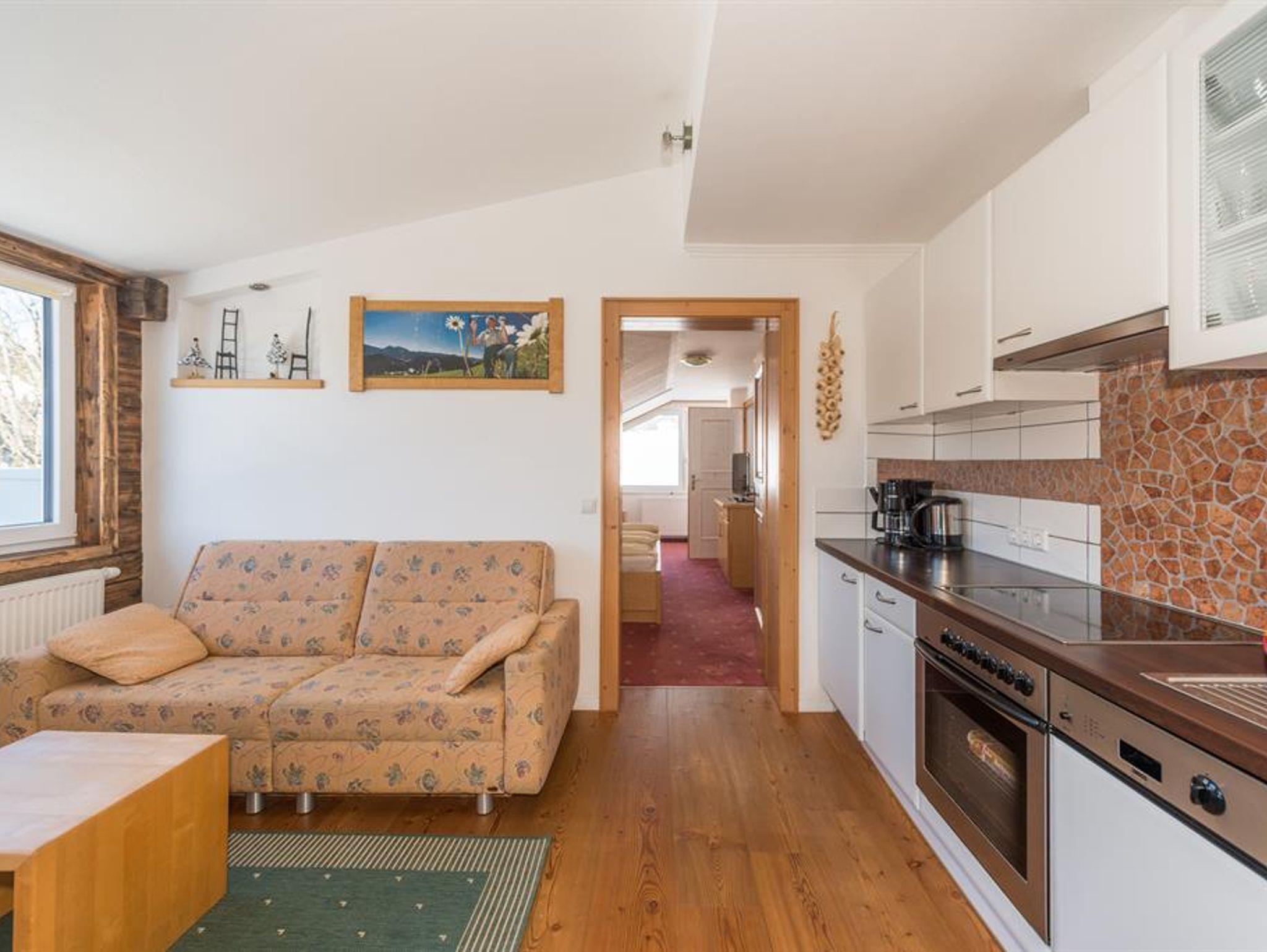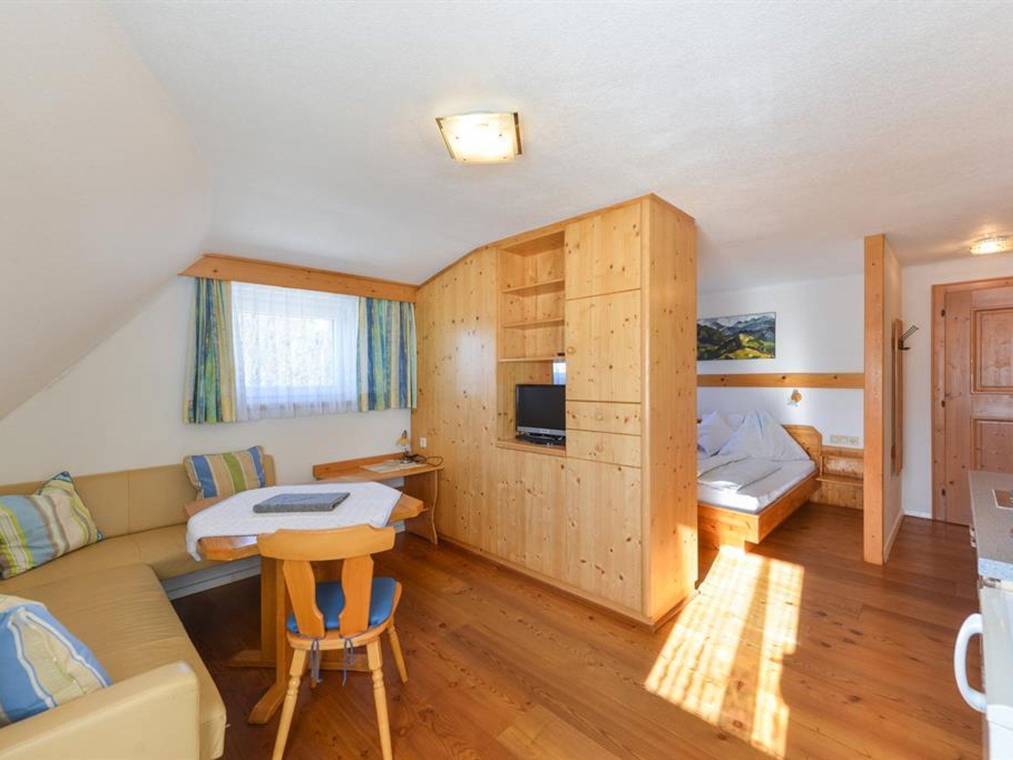 Ein gemütliches Studio Apartment mit gebürsteten Naturholzböden. + Küchenzeile, voll ausgestattet, + Essbereich + komfortable Couchecke mit Fernseher. Die Ferienwohnung hat einen südlich ausgerichteten Balkon und ist so sehr sonnig. Mit 32 m² ist es klein aber fein.