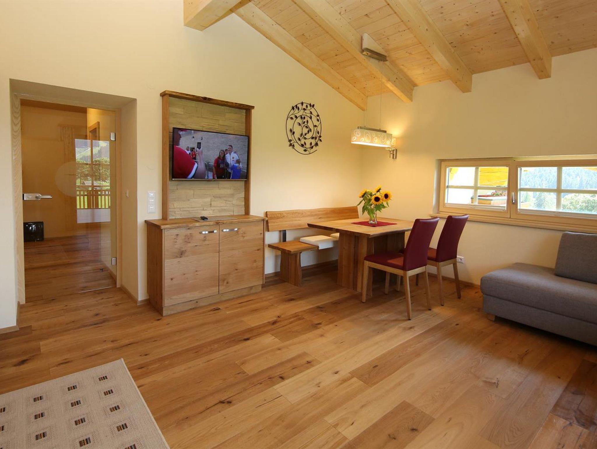 Lassen Sie einen erlebnisreichen Tag in unserer großzügigen Saunalandschaft mit Finnischer Sauna, Wärmekabine, einem Massagestuhl und einem Ruheraum mit Aussicht auf die Umgebung von Ramsau am Dachstein ausklingen, und gönnen Sie Ihrem Körper entspannendes Relaxen.