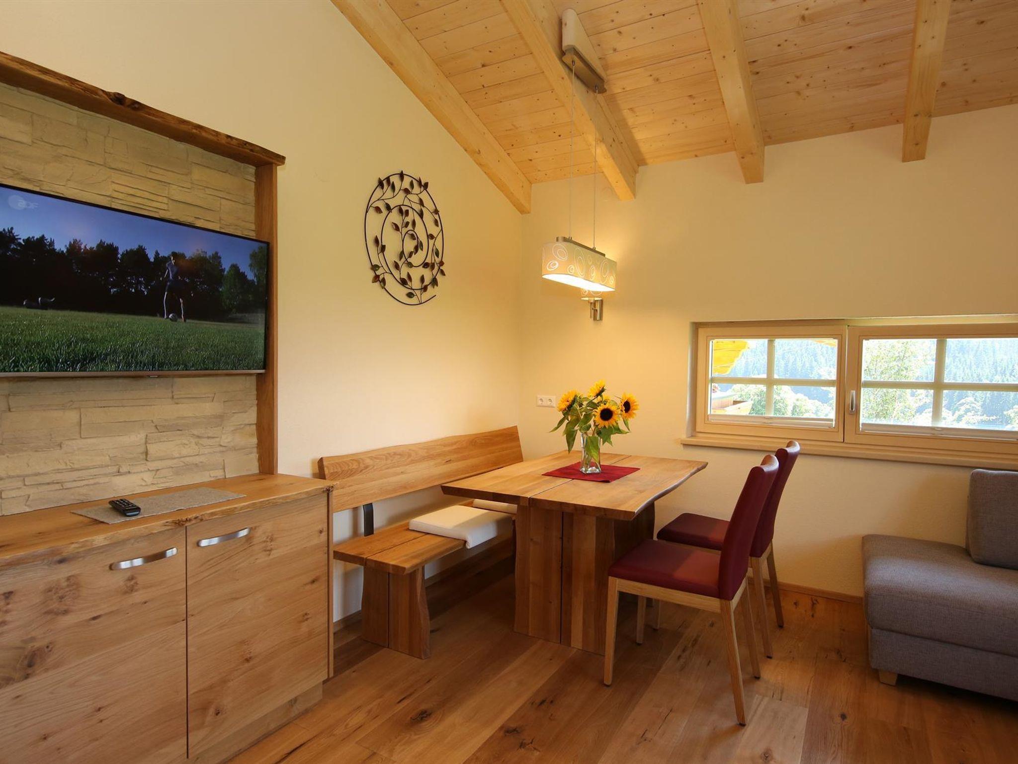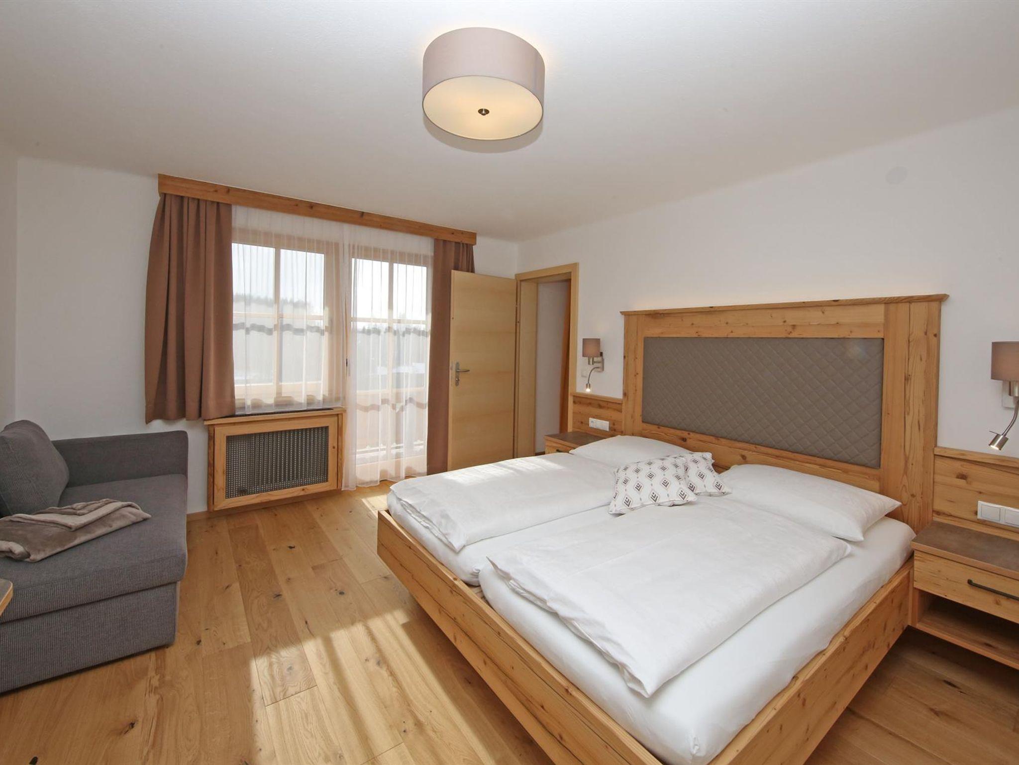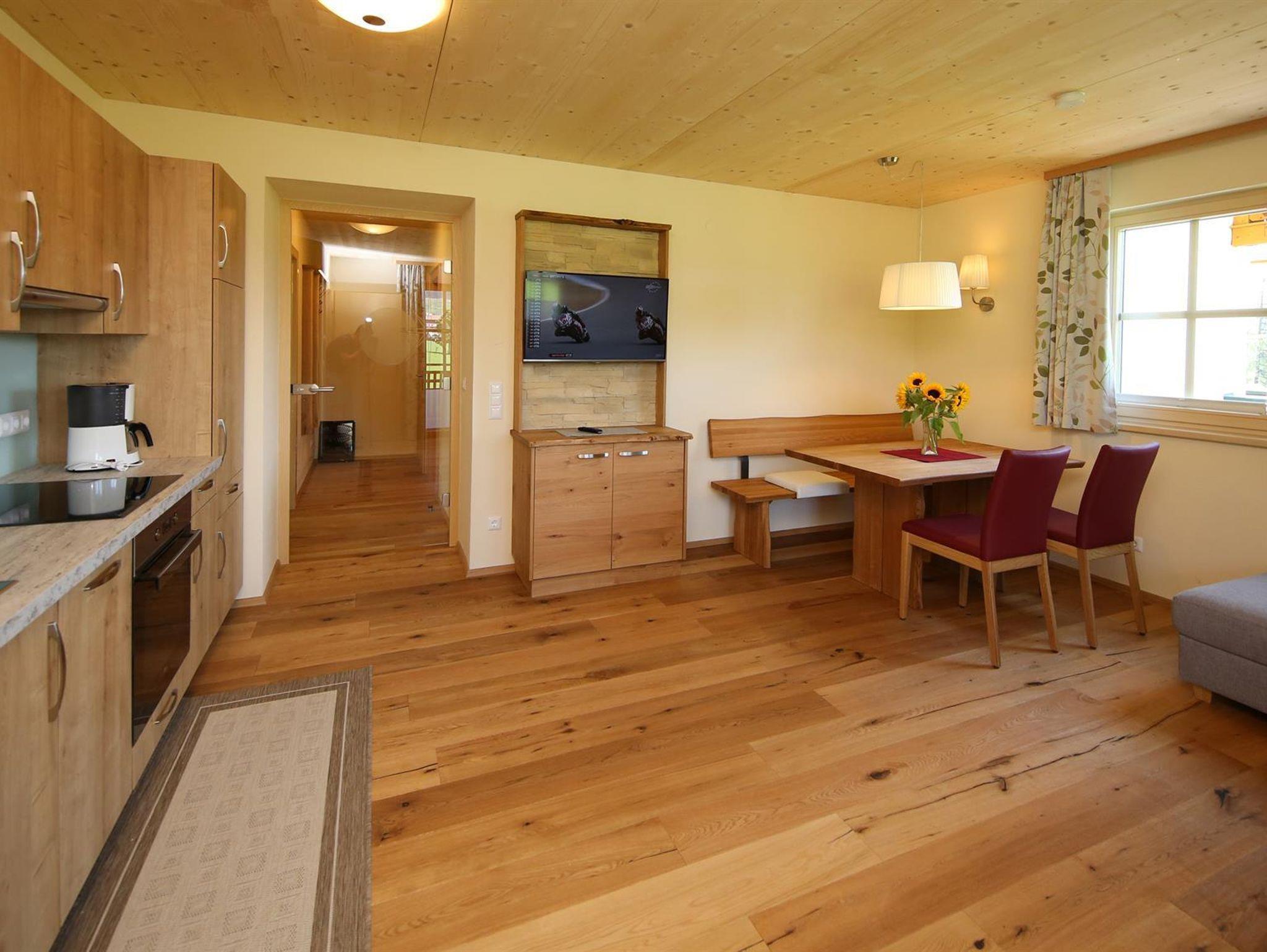 Wir bieten in unserem Haus Alpenperle auch die Möglichkeit, 2 großzügige Ferienwohnungen für 2-4 Personen und eine kleinere für 2-3 Personen zu mieten. Gut durchdacht, von heimischen Handwerksbetrieben mit viel Holz und natürlichen Materiallien ausgestattet, verfügen die beiden großen Wohnungen über je 2 Schlafzimmer, - die kleinere über 1 Schlafzimmer -, ein Bad, ein geräumiges Wohnzimmer mit einer voll ausgestatteten Küche (Geschirrspüler, Induktionsherd, Backrohr), eine Ess- und Couchecke, sowie einen schönen, bei den großen nach Westen und bei der kleinen nach Süden ausgerichteten Balkon, der neben einem herrlichen Ausblick in die Natur auch Sonne bis in die Abendstunden garantiert.