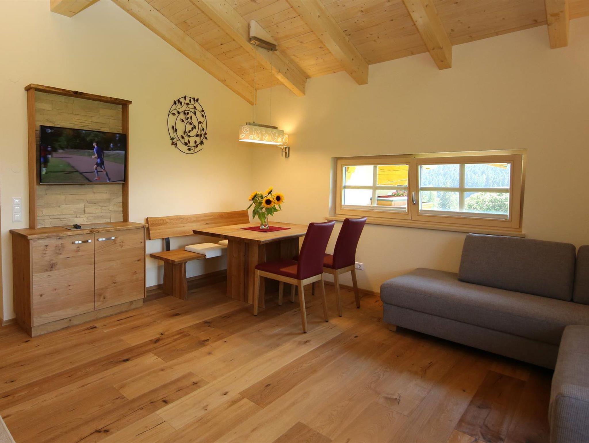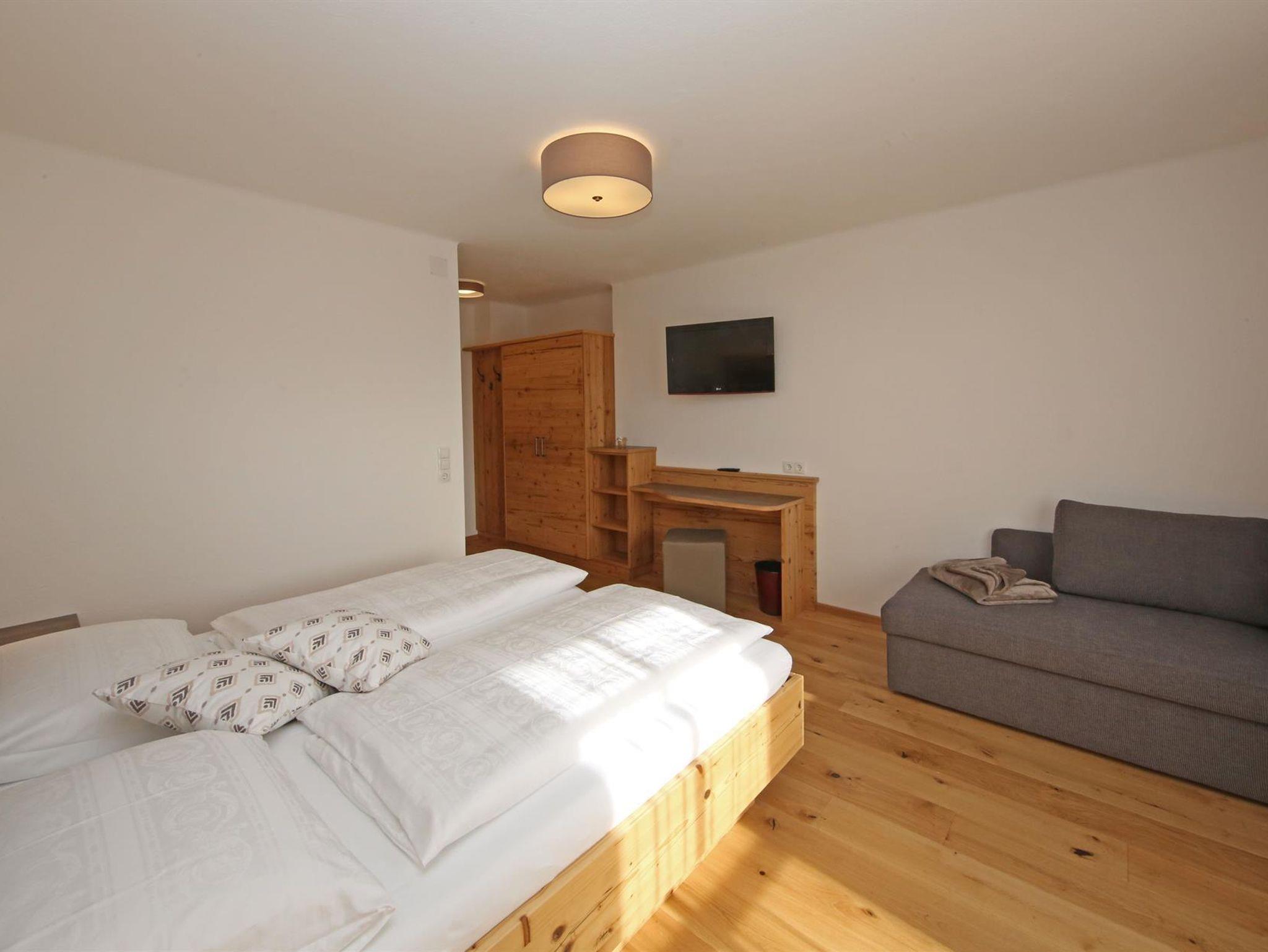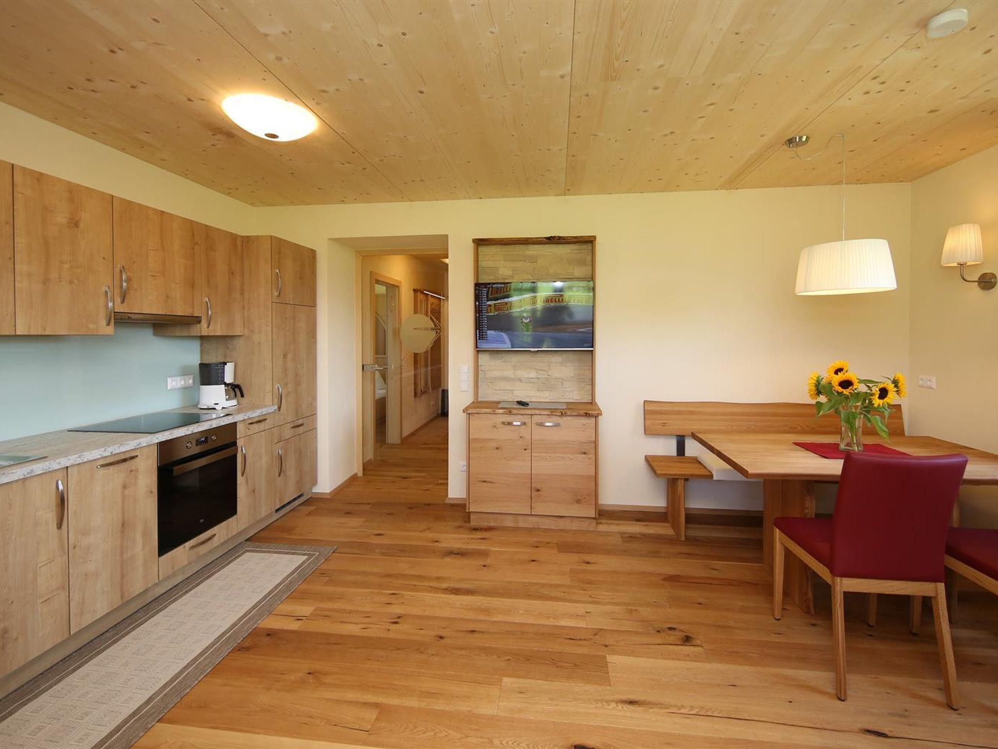 Wir bieten in unserem Haus Alpenperle auch die Möglichkeit, 2 großzügige Ferienwohnungen für 2-4 Personen und eine kleinere für 2-3 Personen zu mieten. Gut durchdacht, von heimischen Handwerksbetrieben mit viel Holz und natürlichen Materiallien ausgestattet, verfügen die beiden großen Wohnungen über je 2 Schlafzimmer, - die kleinere über 1 Schlafzimmer -, ein Bad, ein geräumiges Wohnzimmer mit einer voll ausgestatteten Küche (Geschirrspüler, Induktionsherd, Backrohr), eine Ess- und Couchecke, sowie einen schönen, bei den großen nach Westen und bei der kleinen nach Süden ausgerichteten Balkon, der neben einem herrlichen Ausblick in die Natur auch Sonne bis in die Abendstunden garantiert.