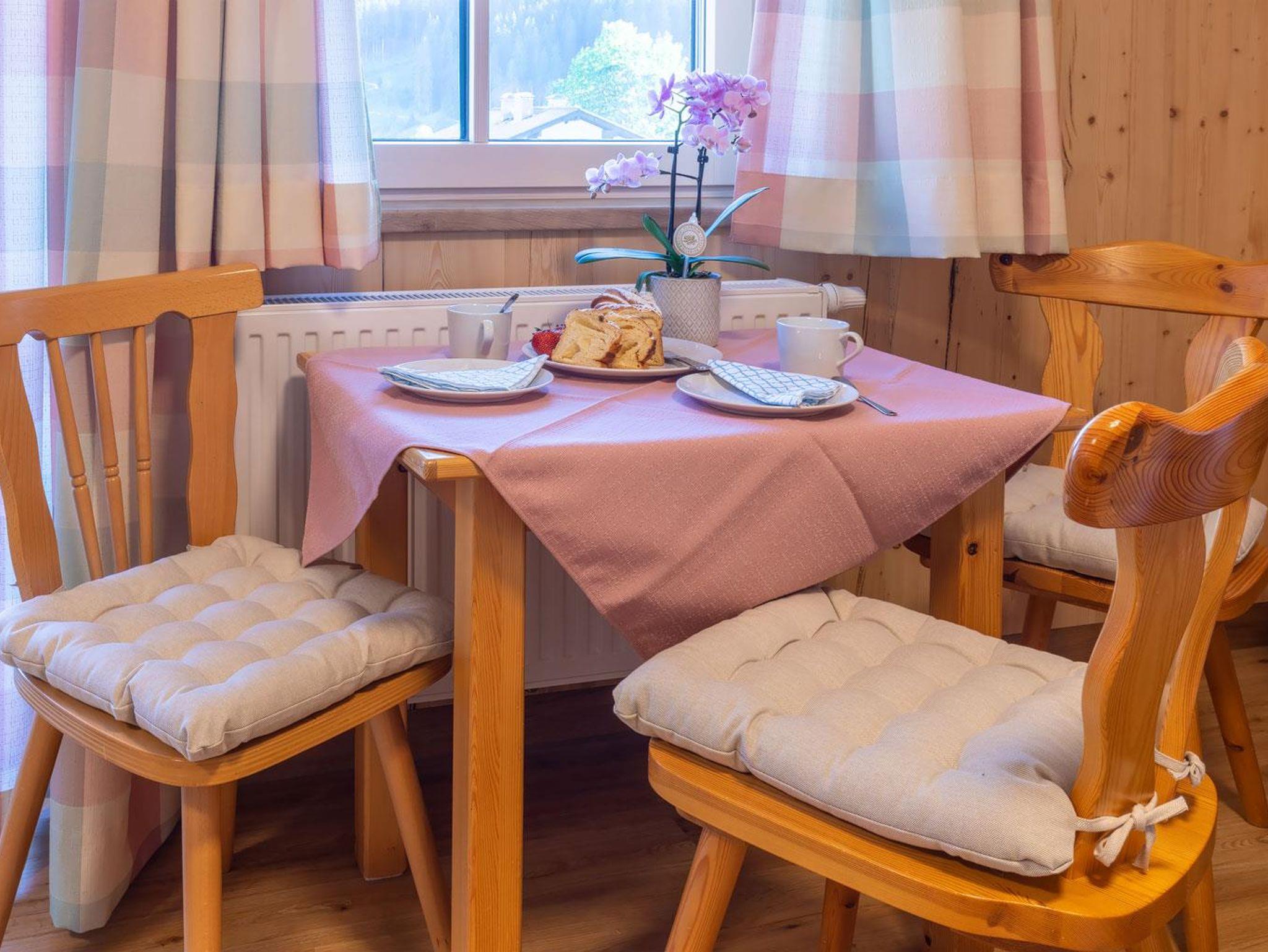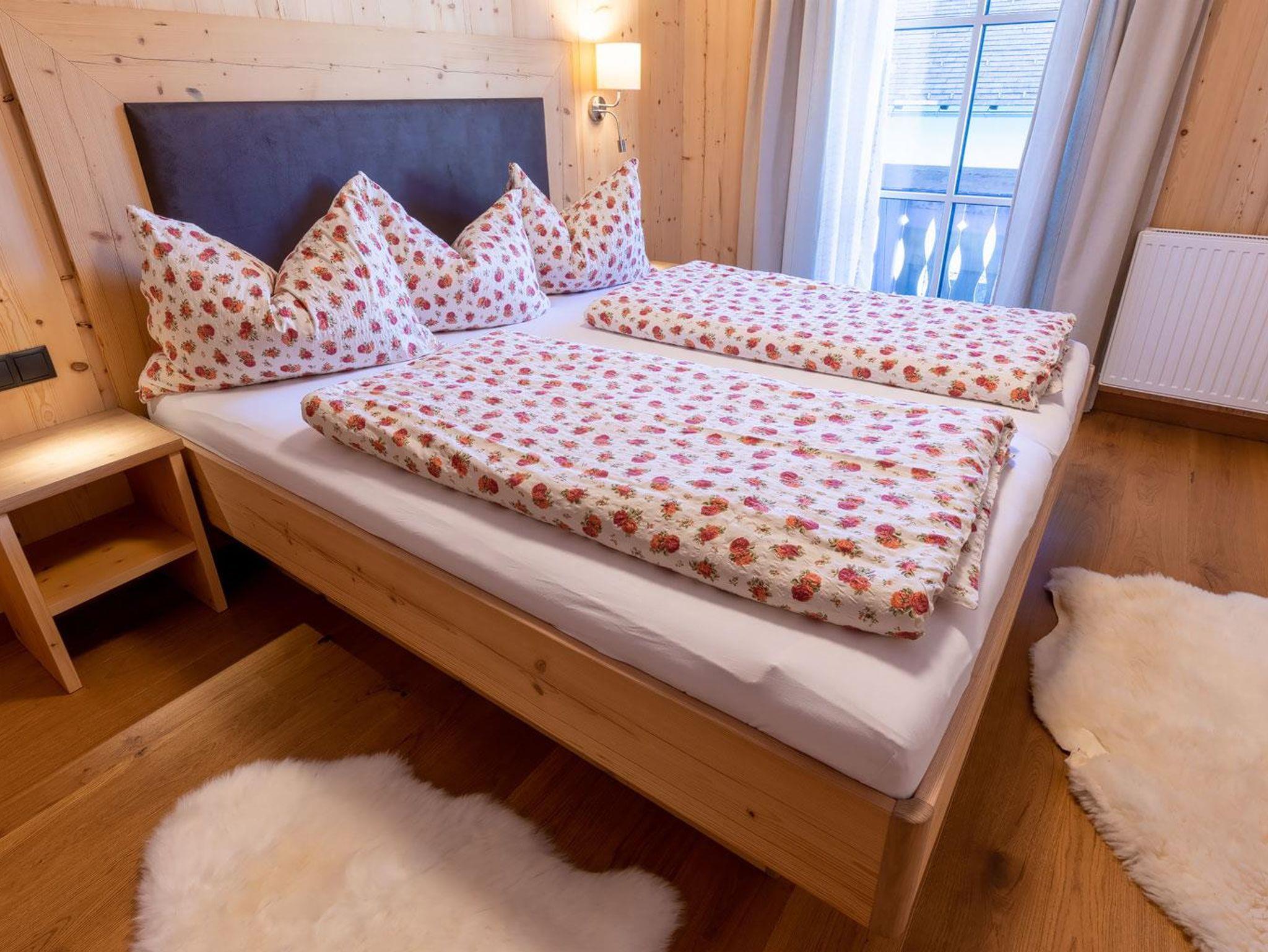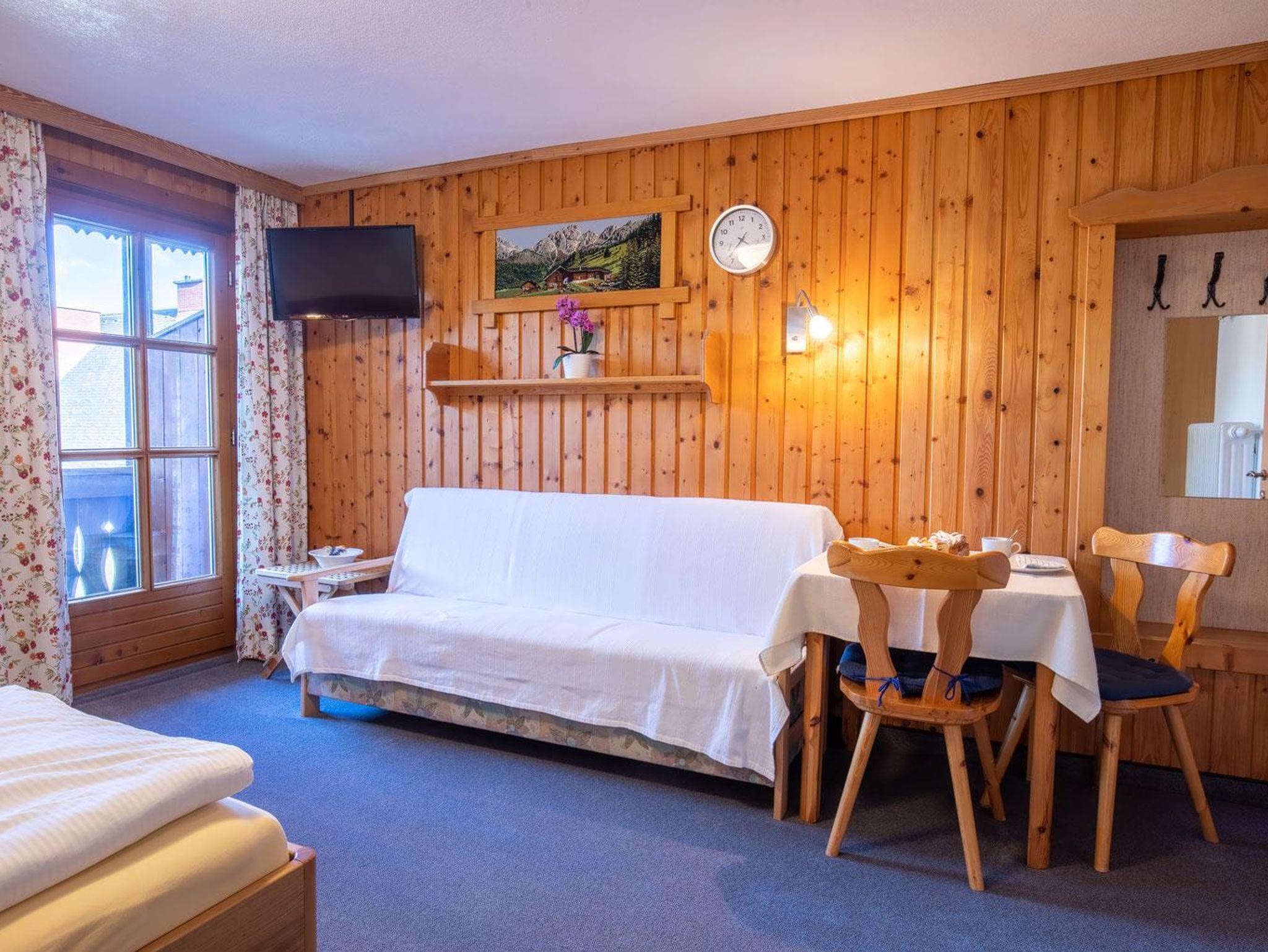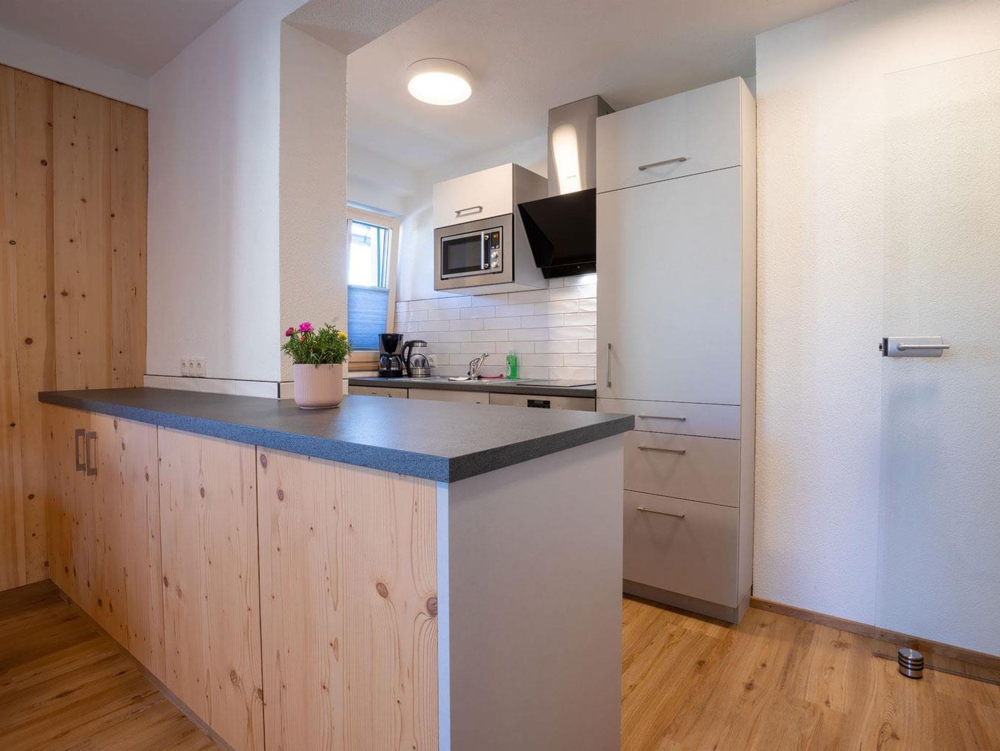 Unser Appartement III Edelweiß befindet sich im 1. OG und ist Richtung Süden/Osten ausgerichtet. Das Appartement ist nach der Renovierung 2021 eine sonnige und gemütliche Oase zum Ausspannen. Viel Holz und eine liebevolle Einrichtung laden zum Entspannen und genießen ein. Ein Doppelzimmer mit Holzboden und Holzmöbel, ein großzügiges Bad mit Dusche, separatem WC, geräumigem Vorraum runden das Highlight - die Wohnküche Richtung Süden mit Balkon (Süden und Osten) ab. Hier sind eine voll ausgestattete Küche mit Esstisch sowie ein gemütliches Sofa mit Fernsehecke untergebracht. Der helle, freundliche Raum und im Sommer der gemütliche Balkon laden zum Genießen ein.