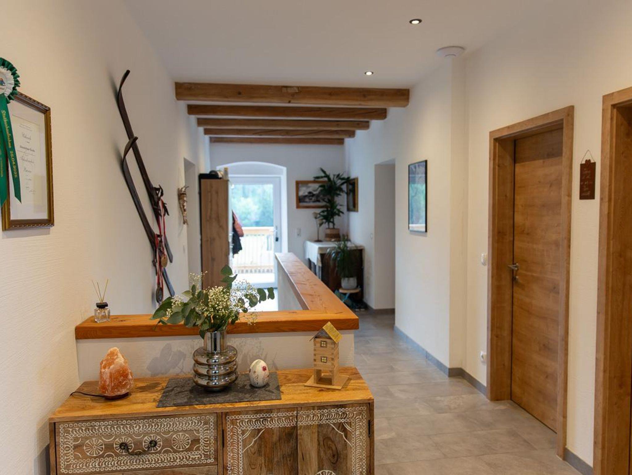 Über den gemeinsam genutzten Stiegenaufgang erreichen Sie die modern eingerichtete Wohneinheit. Diese besticht duch den gemütlich-alpinen Stil mit vielen Holz-Elementen.