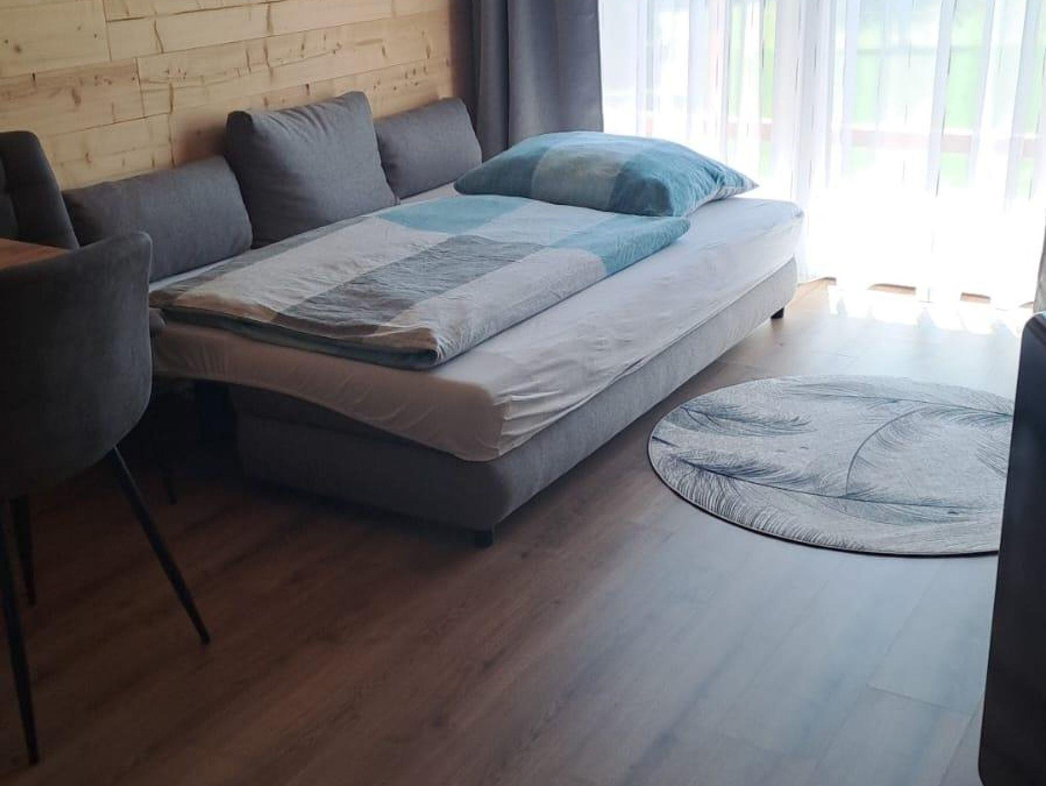 Das Appartement verfügt über eine Wohnküche, ausgestattet mit den wichtigsten Kochutensilien ein separates Schlafzimmer sowie ein großzügiges Badezimmer mit Dusche und WC.