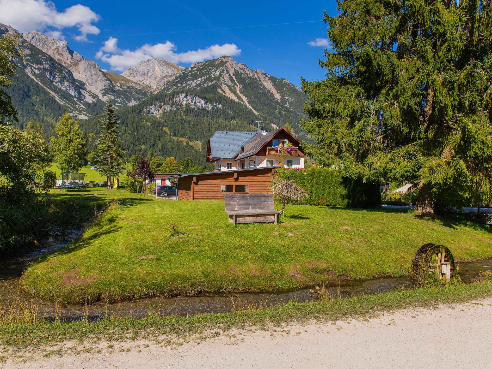 Im Sommer lädt der großzügige Garten am idyllischen Bach zum Entspannen ein, während zahlreiche Aktivitäten wie Wanderungen oder Spaziergänge direkt vom Haus aus beginnen können. Die ruhige und naturnahe Lage wird von einem atemberaubenden Panorama auf das Dachsteinmassiv gekrönt und macht das Mühlrad Appartements zu einem besonderen Rückzugsort für Ihren Urlaub – zu jeder Jahreszeit!