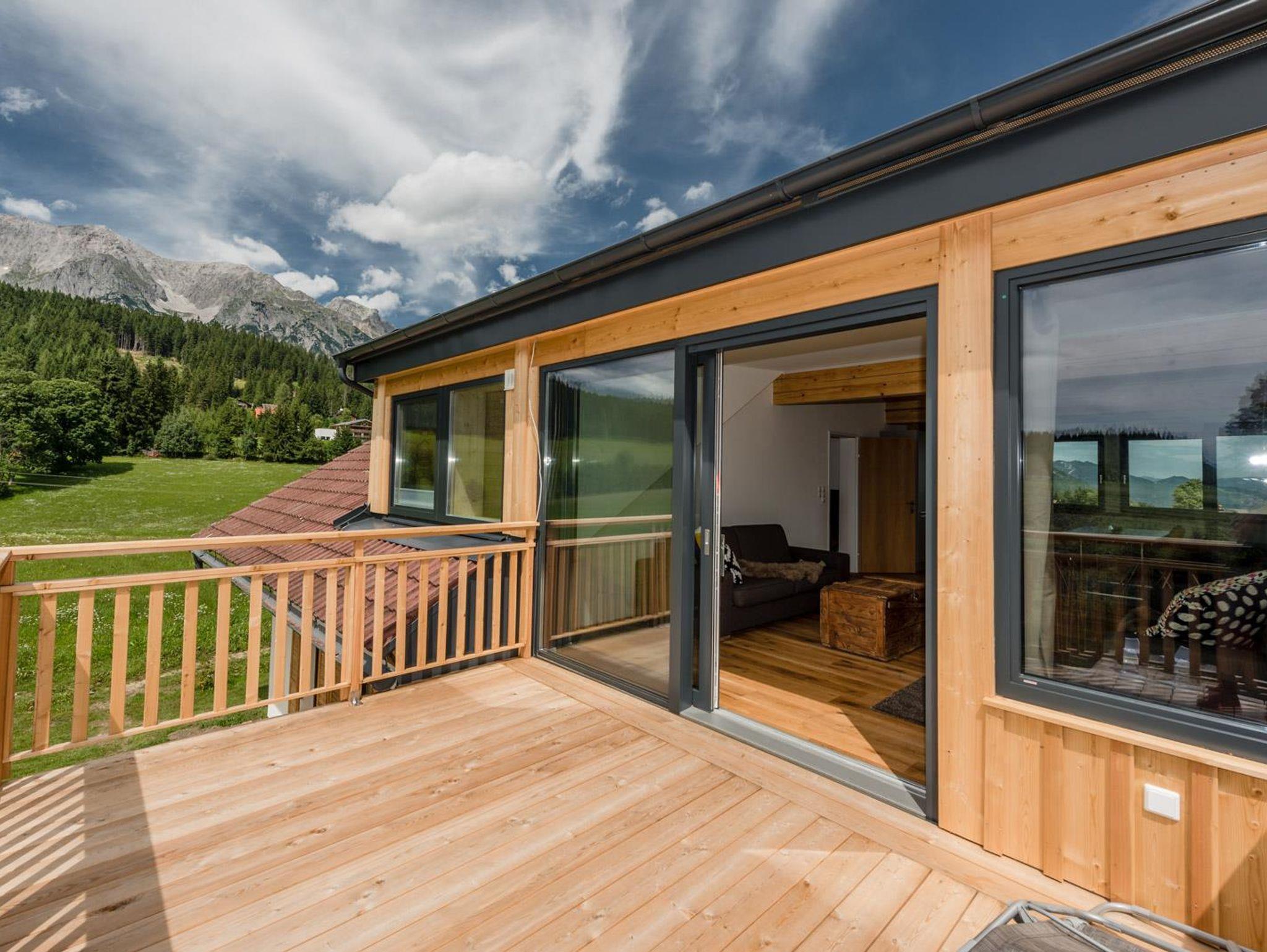 Zum Haus gehört ein großer Garten mit wunderbarer Aussicht, sowohl in die Schladminger Tauern, als auch nördlich ins Dachstein Gebirge. In der Anfahrt gibt es jeweils 2 sichere Parkplätze mit Carport.