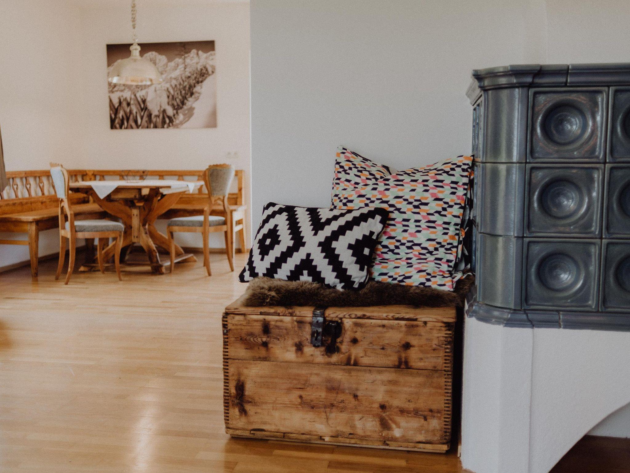 Der Stil ergibt sich aus der Geschichte des Hauses, eine gelungene Mischung aus Moderne und steirischem Bauernstand, mit hohen Räumen, großen Fenstern. Einzelne Kästen und Truhen sind aus dem 19. Jahrhundert und prägen den stimmungsvollen Charakter.