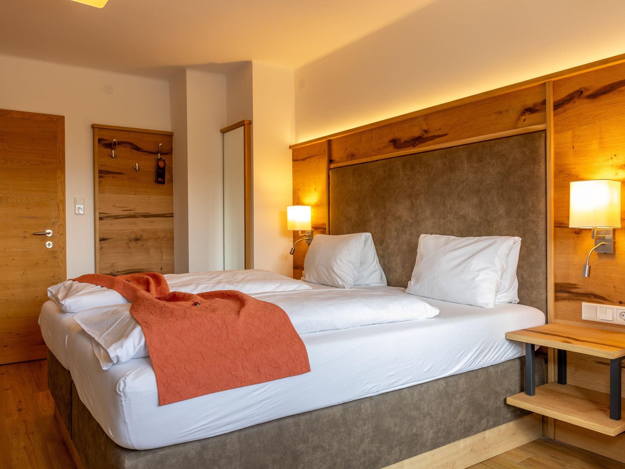 In unserem Hotel bieten wir Ihnen modern eingerichtete Doppel-, Dreibettzimmer und Ferienwohnungen bzw. Appartements. Alle Zimmer verfügen über geräumige Badezimmer, einem eigenen Balkon mit Bergblick, kostenloses WLAN, Flachbild -TV, Zimmersafe, Radio und einen gemütlichem Sitzbereich.