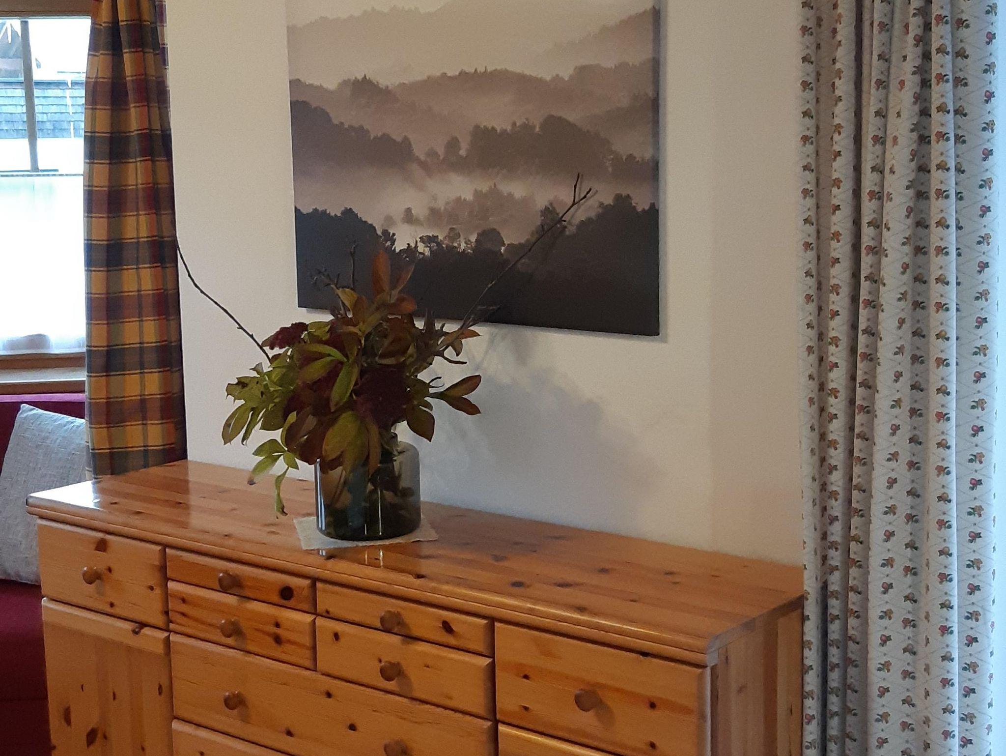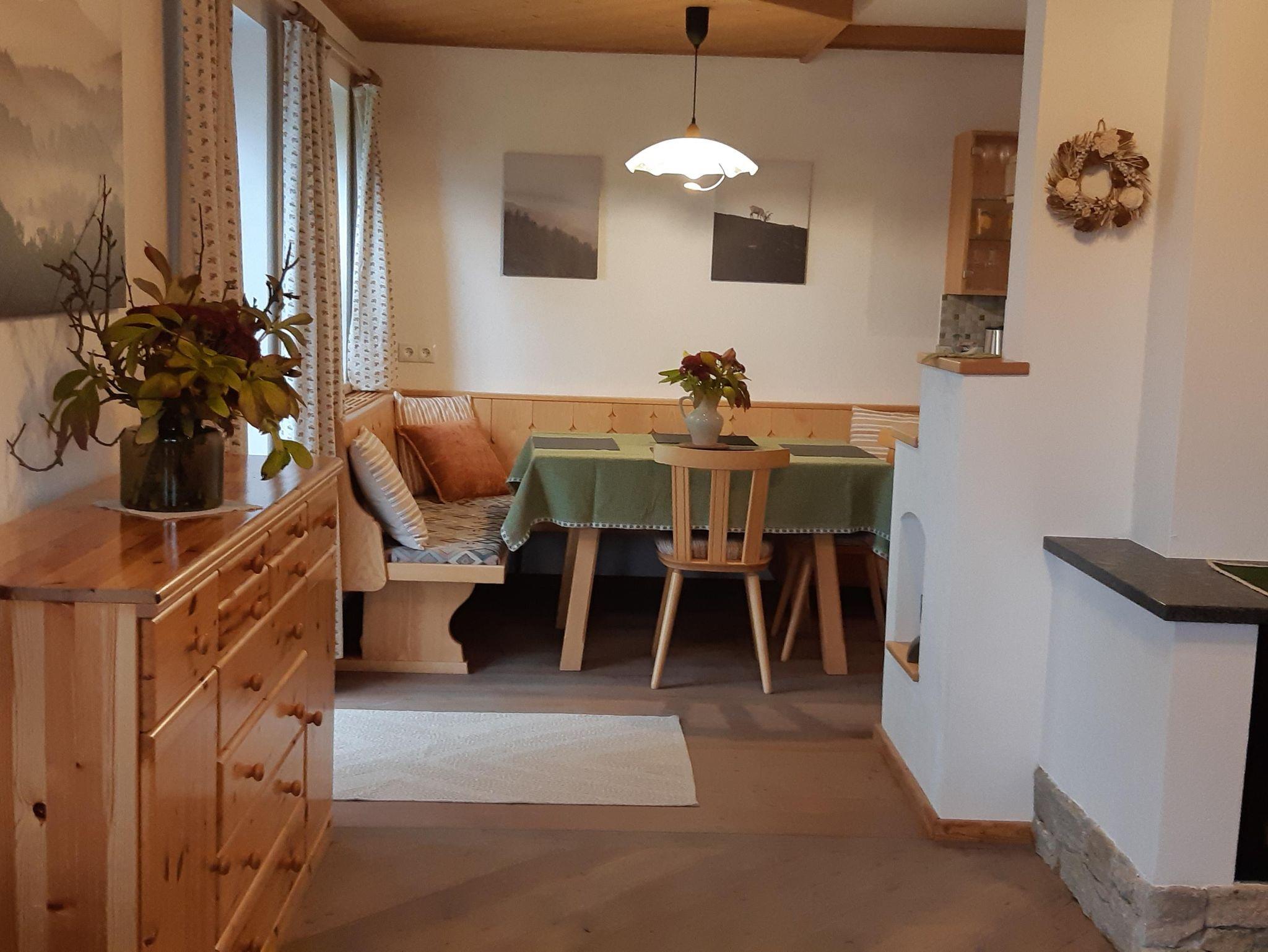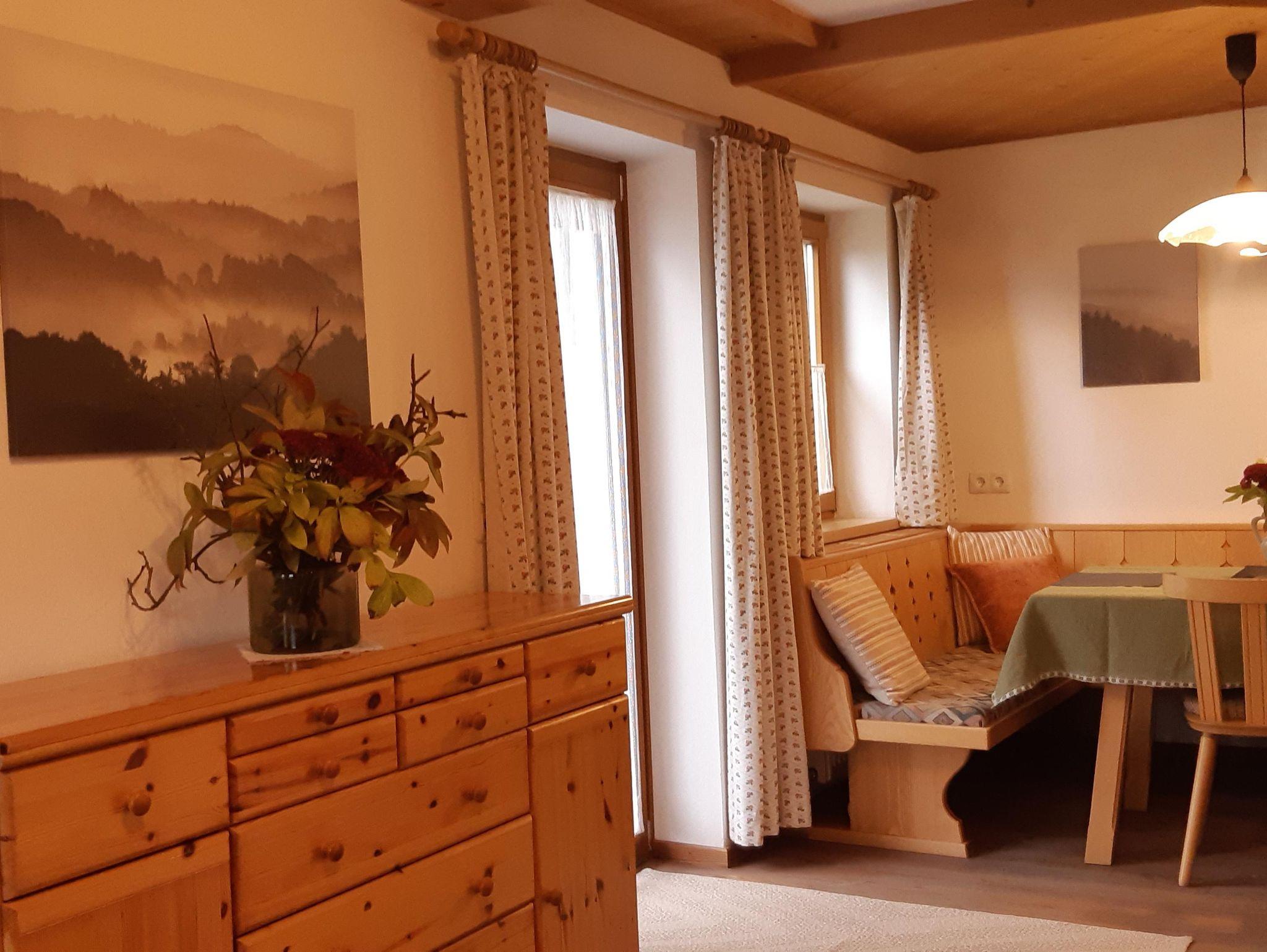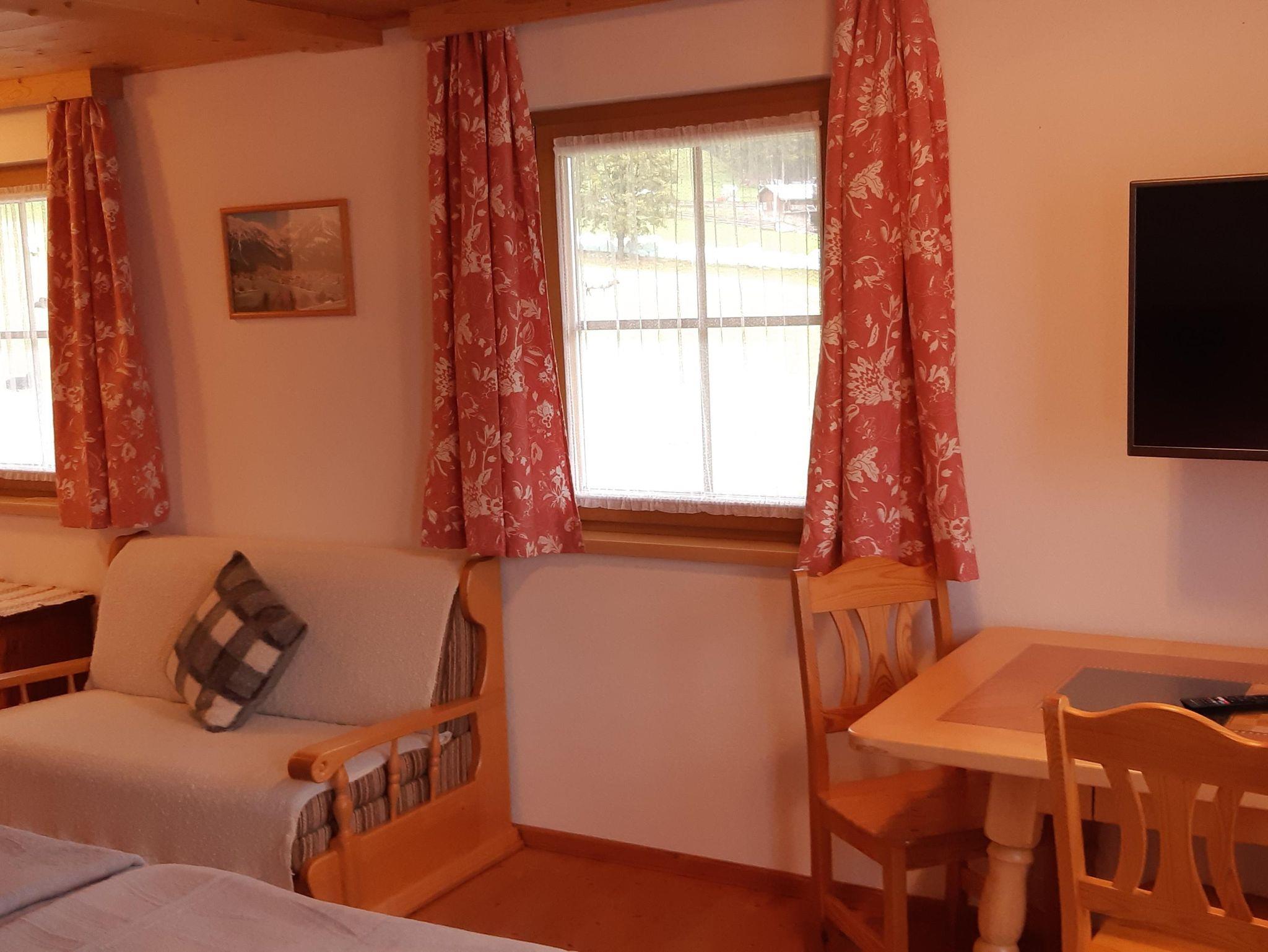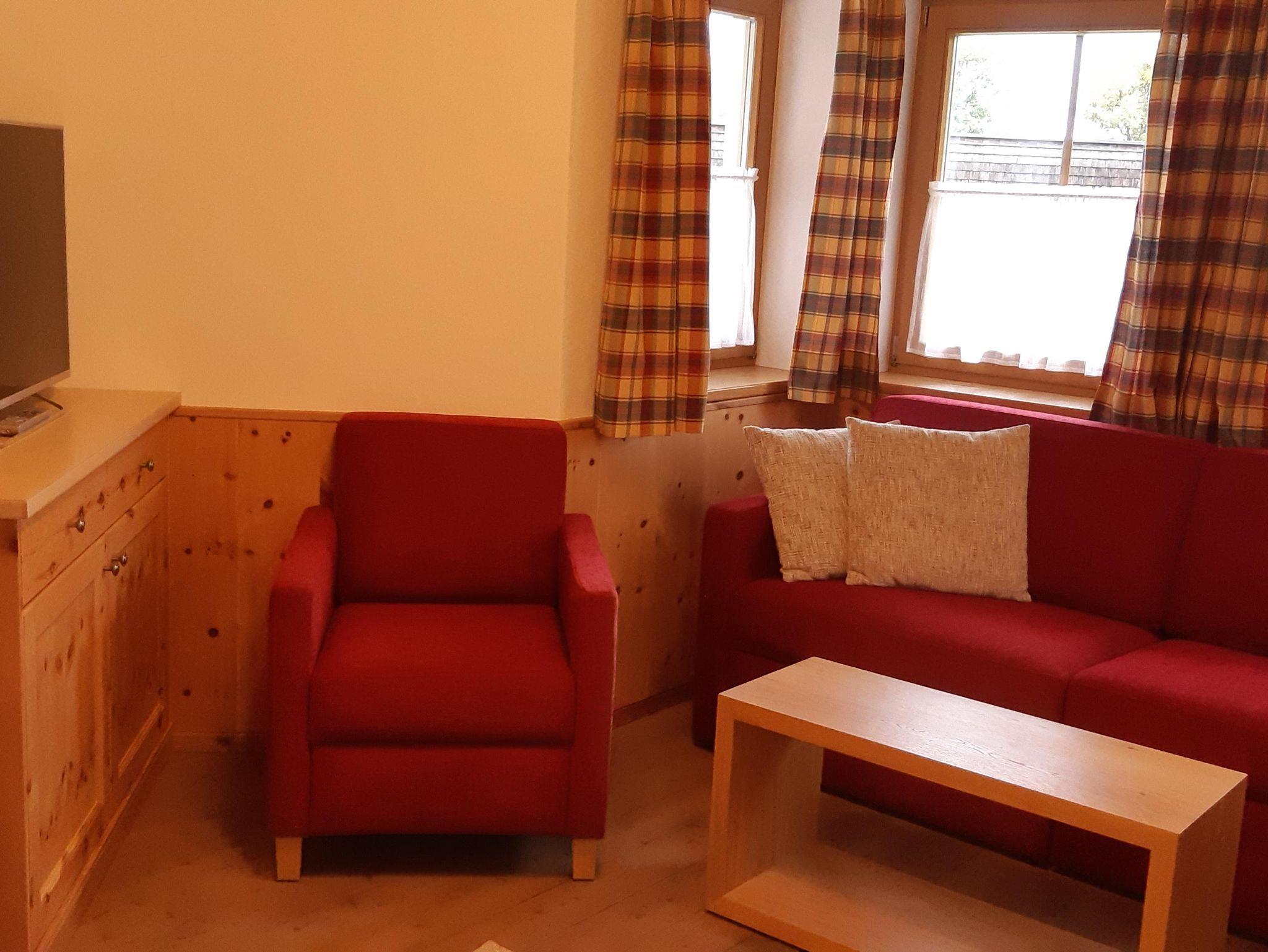 Das Wohnzimmer Zirbenvollholz, verfügt über eine sehr gemütliche Couchgruppe (ausziehbar) sowie TV Gerät-Sat, W-Lan.