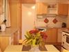 Die Küche mit Essbereich verfügt über Geschirrspüler, Kühlschrank, Elektroherd mit Backrohr, Mikrowellenherd, Kaffemaschinen