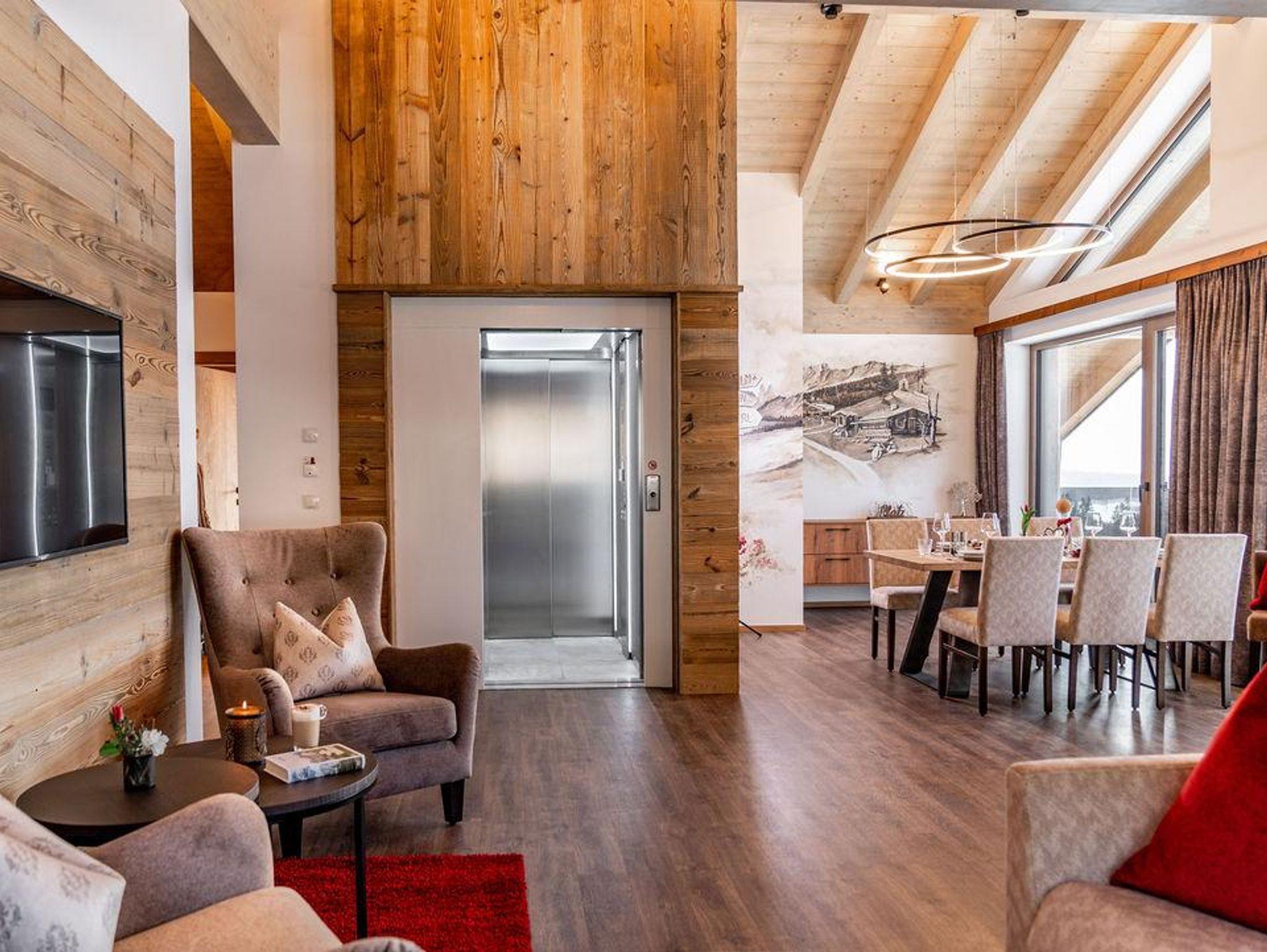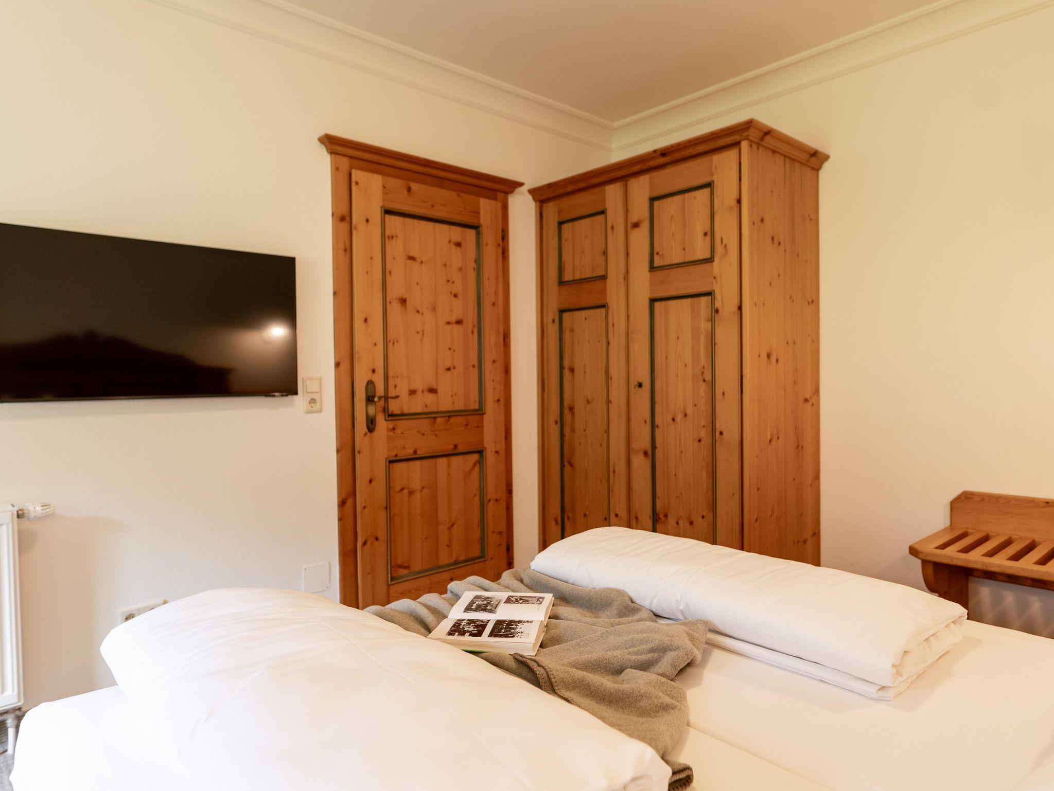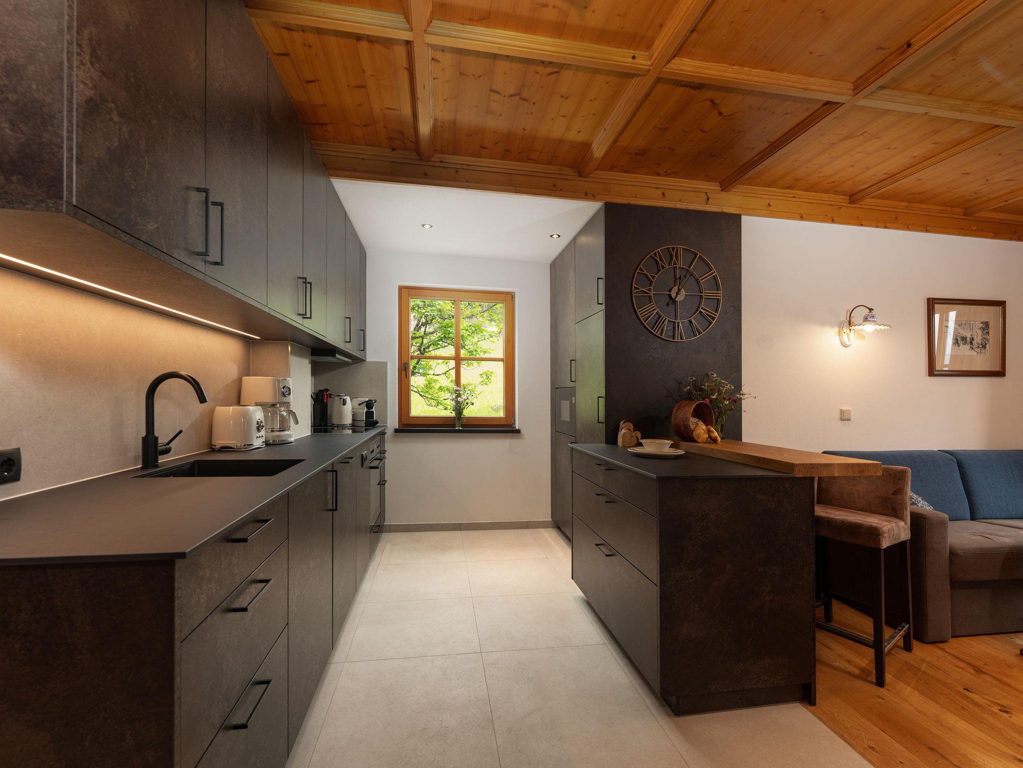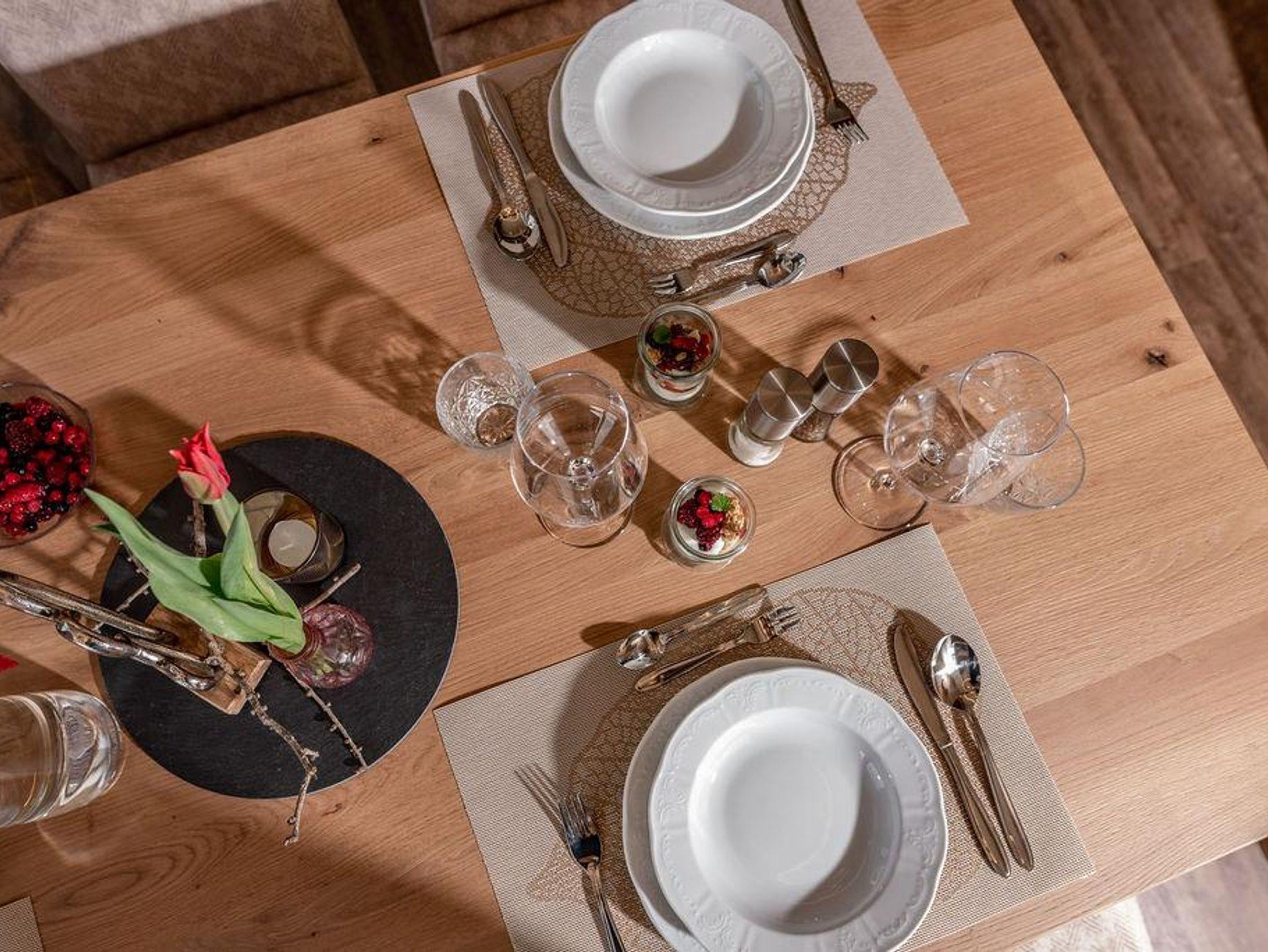 Das Appartement ist ausgestattet mit 2 Schlafzimmer, 1 Wohnzimmer mit Kachelofen, TV, Geschirrspüler mit Küche, Mikrowelle, E-Herd, Kühlschrank, 2 Bad/Dusche, 2 WC, Vorraum, Balkon und eigener privater Sauna