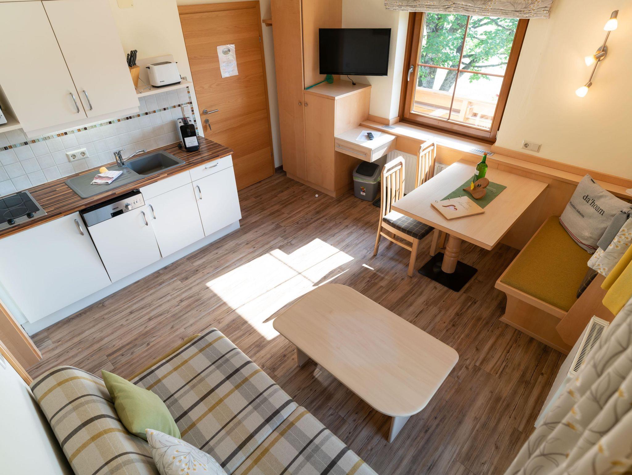 Die neu renovierten Ferienwohnungen befinden sich im ersten und zweiten Stock unseres Hauses Alpenecho. Sie bestehen aus einem Schlafzimmer, einem Wohnzimmer, einer durch eine Schiebetür abgetrennte Küche oder auch mit integriertem Küchenblock, mit Herd und Geschirrspüler, einem Badezimmer mit WC. Die komplett ausgestattete Wohnküche mit Esstisch bietet viel Platz für die ganze Familie. Die garantiert frische Bergluft auf ca.1150m lässt sich auf den zwei Balkonen auf der Nord- und Südseite unseres Hauses genießen.