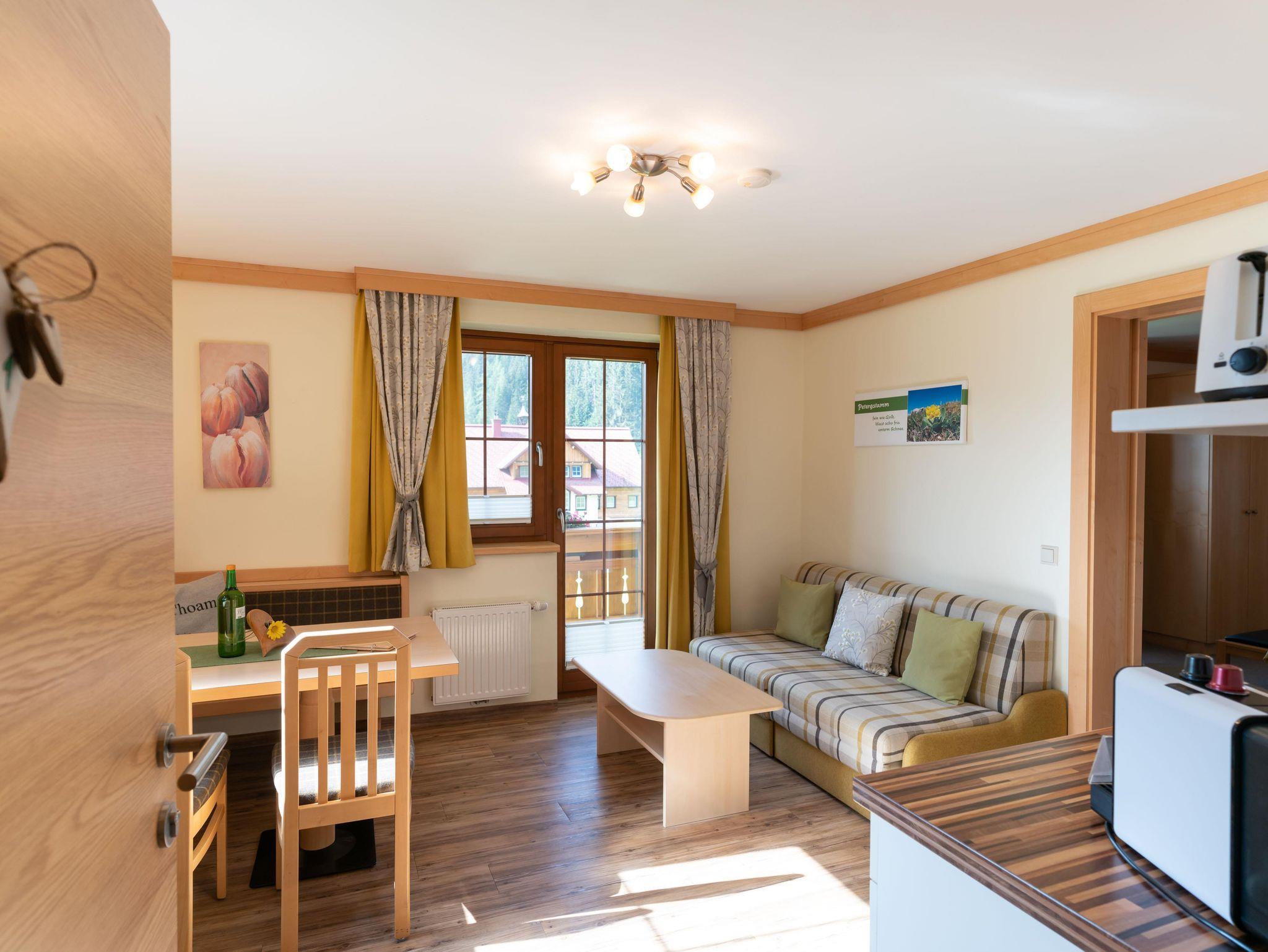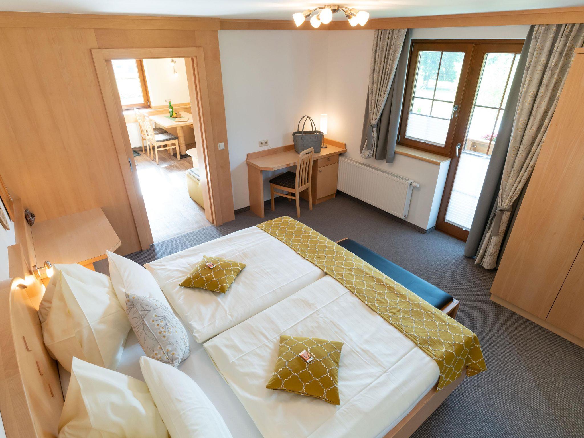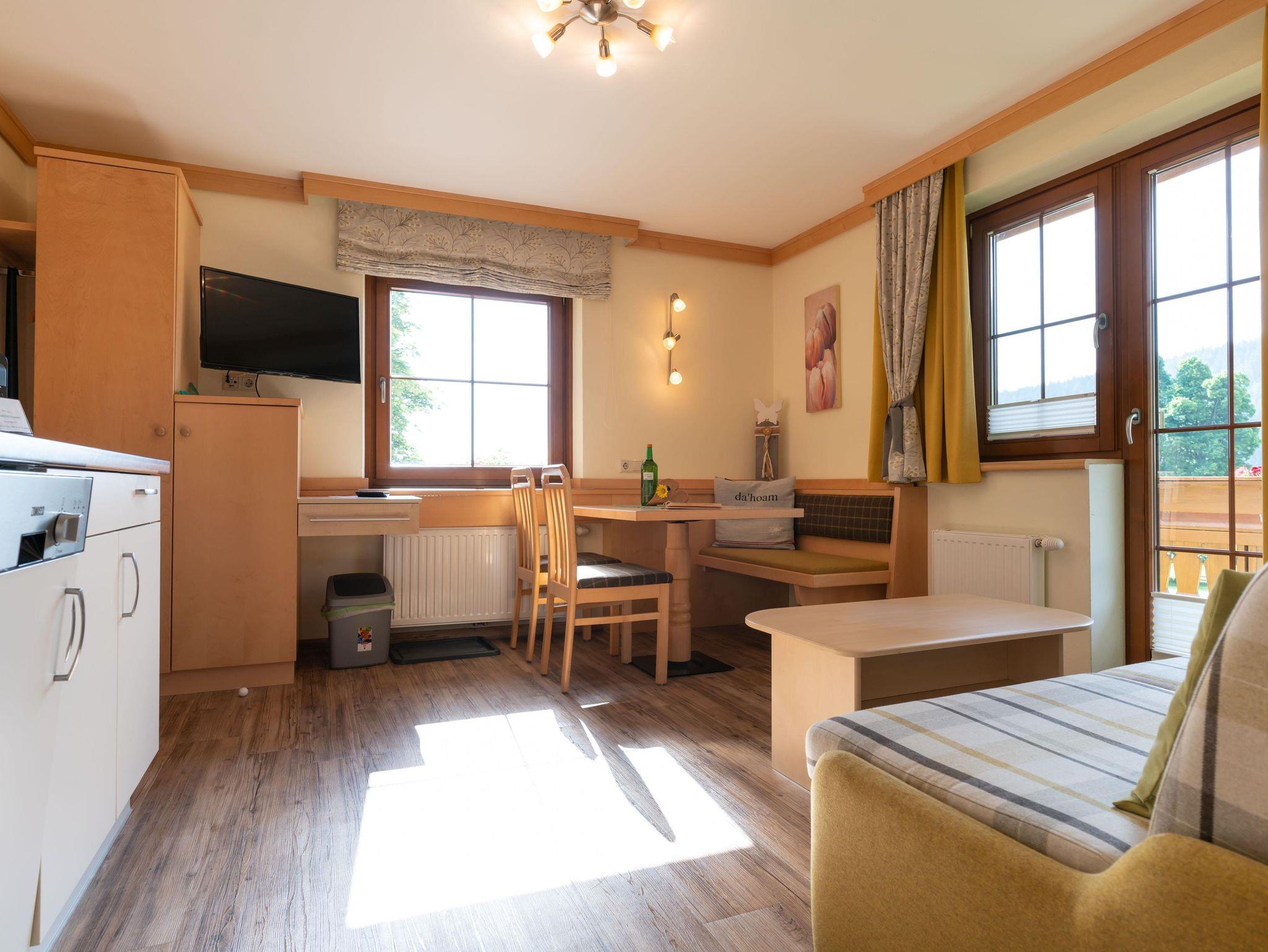 Diese Ferienwohnung wurde im Frühjahr 2016 komplett neu errichtet. Sie besteht aus einem Wohnzimmer mit Couch und Sitzecke, einem Küchenblock, zwei Schlafzimmer, zwei Badezimmer. Die Wohnung ist sehr geräumig und Richtung Süden ausgerichtet.Auf dem Balkon können Sie den Blick ins grüne genießen. Hell und im alpenländlichen Stil eingerichtet verfügt die Wohnung über allen Komfort den man sich im Urlaub wünscht. Die Zimmer sind durch einen Vorraum voneinander getrennt, somit ist die Wohnung auch sehr gut für Freunde oder Eltern mit Großeltern geeignet.