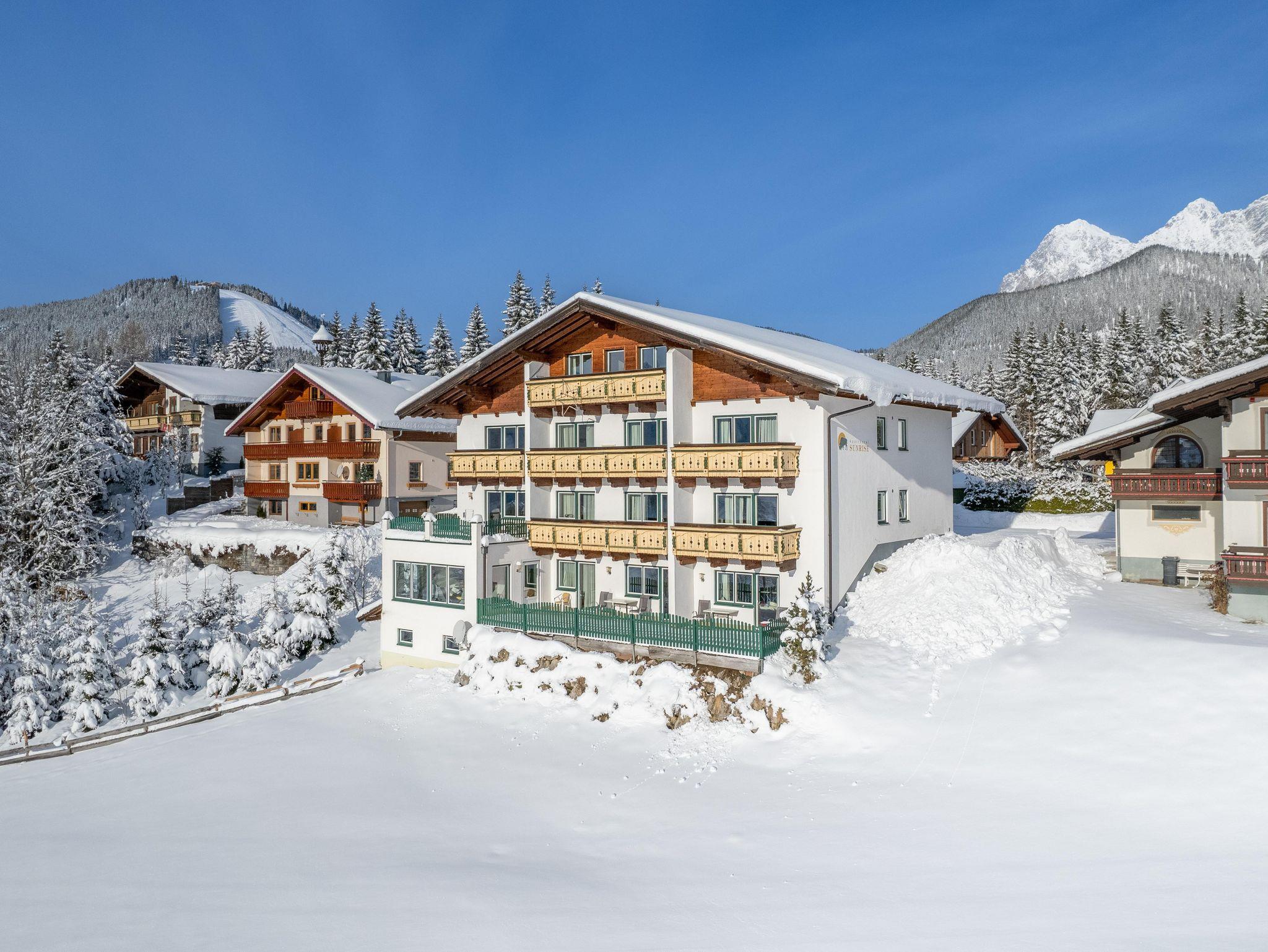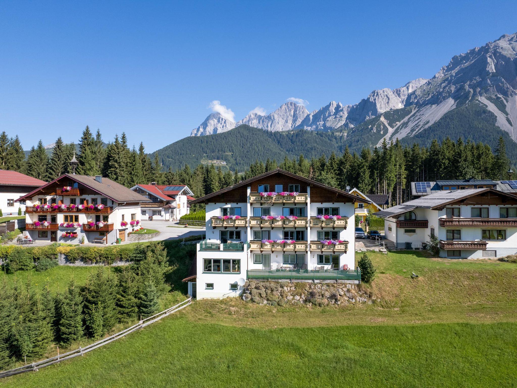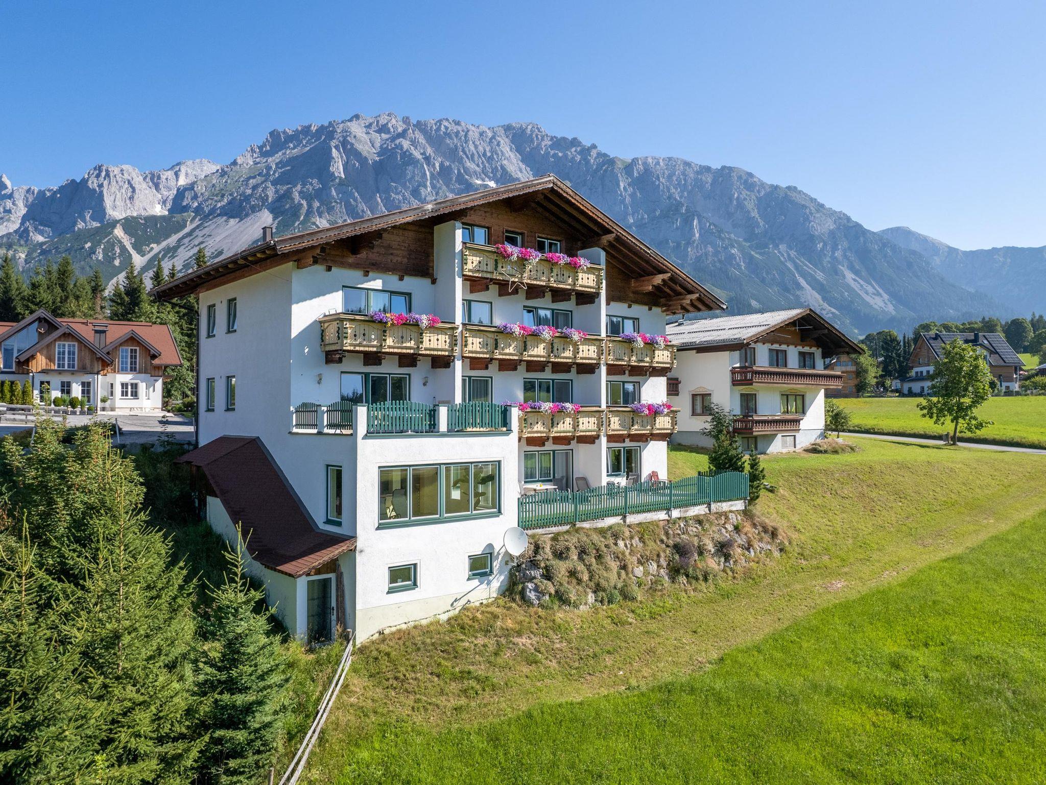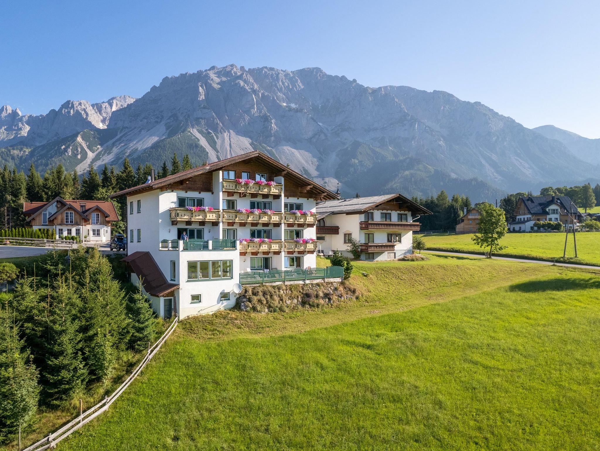 Unser Aparthotel befindet sich in sonniger Südlage am Fuße des Dachsteins. Genießen Sie die Vorzüge unserer exklusiv und modern eingerichteten Ferienwohnungen mit Südbalkon, großzügigem Wohnraum, Sat-TV, Telefon, Internet und einer vollausgestatteten Küche.
